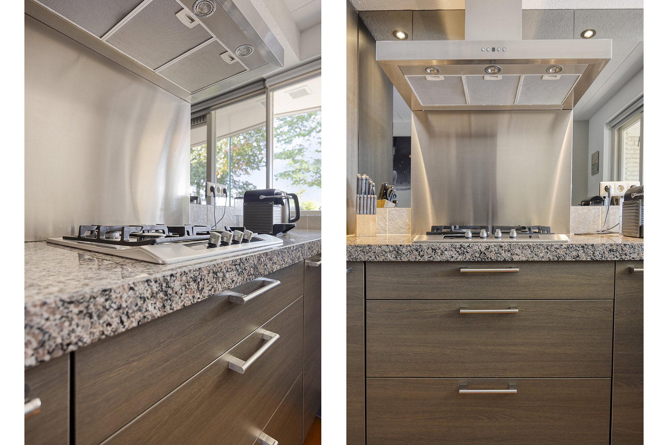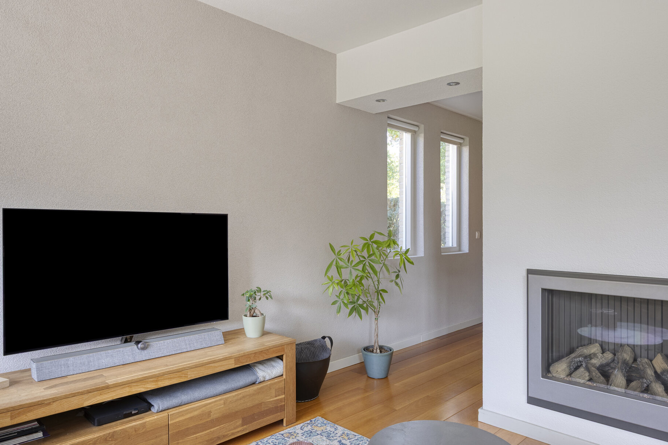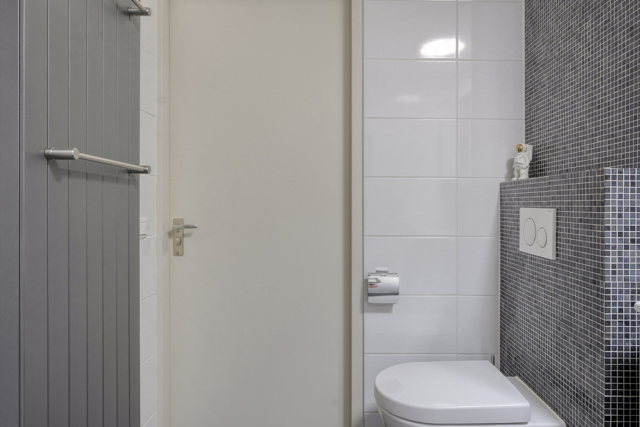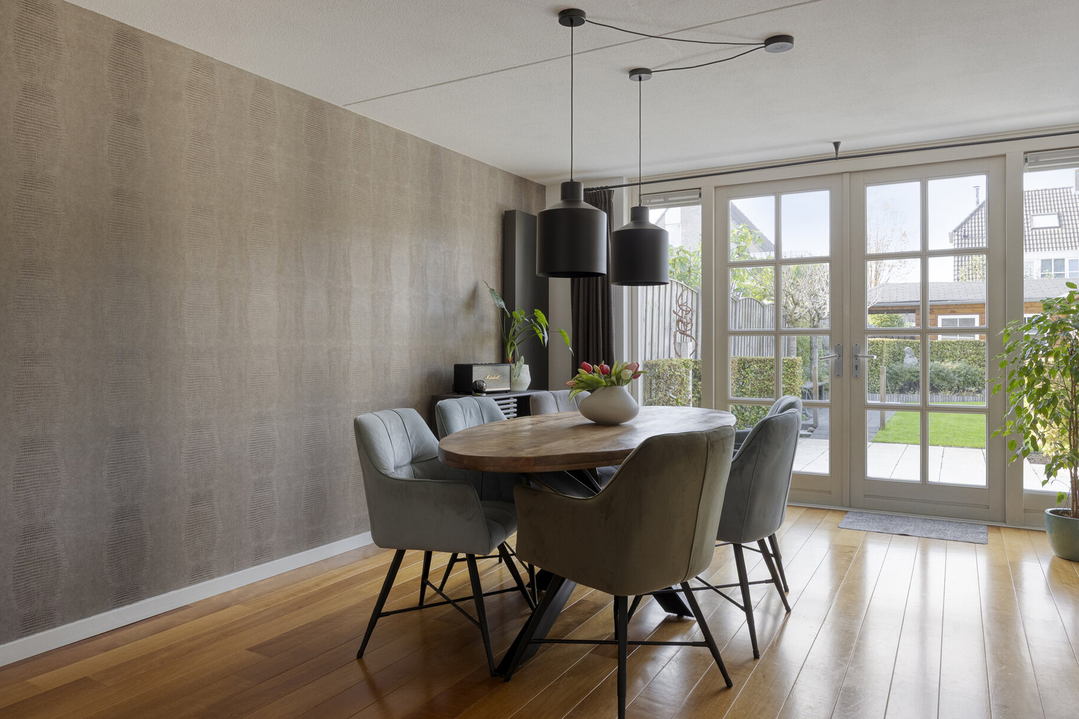 Entree/hal met vernieuwde meterkast (2022), toilet, trapopgang en toegang tot de bijkeuken met wasmachine- en drogeraansluiting. Vanuit de hal toegang tot de lichte woonkamer met robijnhouten lamelparketvloer, sfeervolle gashaard en openslaande tuindeuren naar de achtertuin. Aan de voorzijde bevindt zich de keuken, voorzien van 4-pits gaskookplaat, vaatwasser, koelkast en combi-oven/magnetron. Aangrenzend bevindt zich een praktische kantoor- of speelruimte.