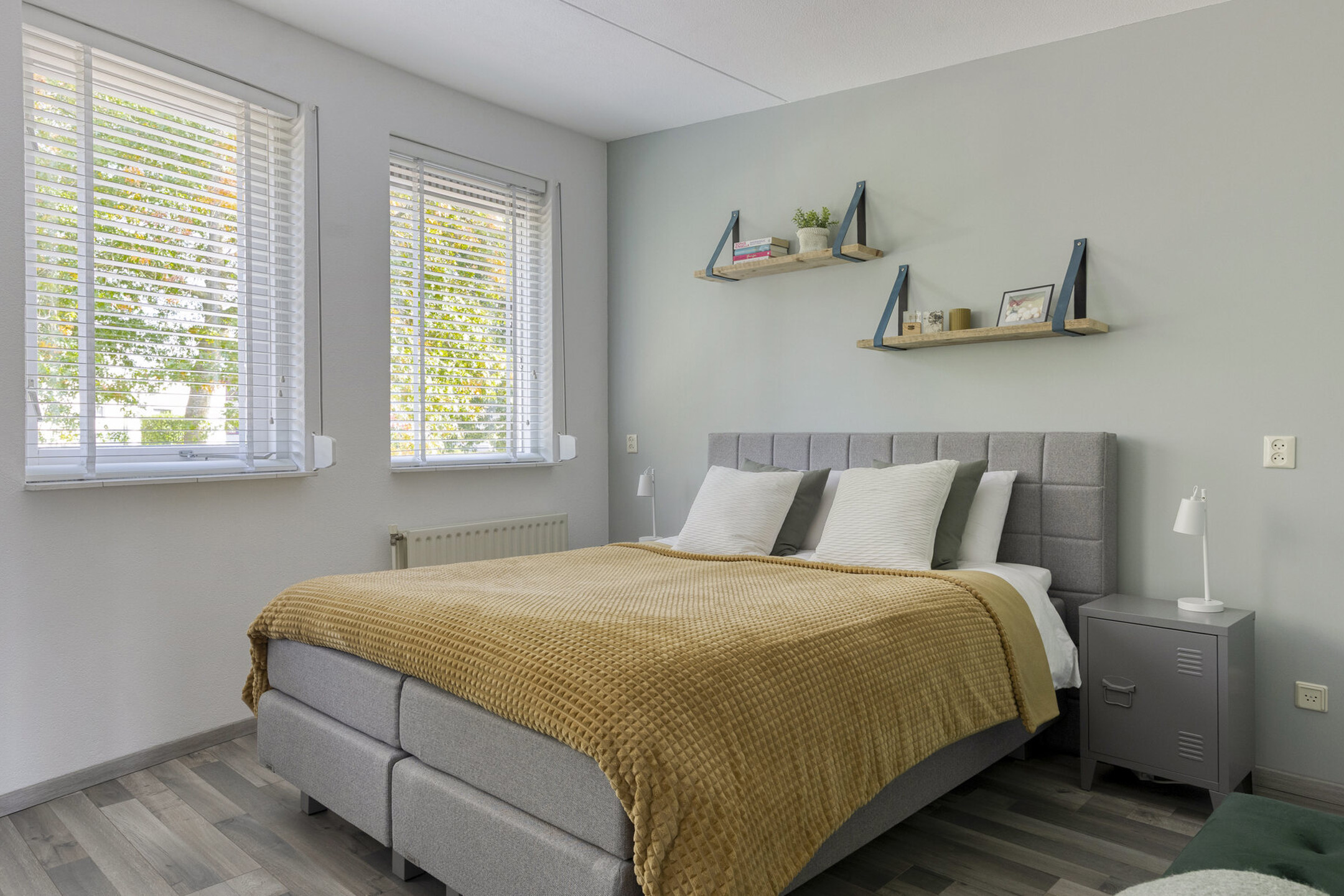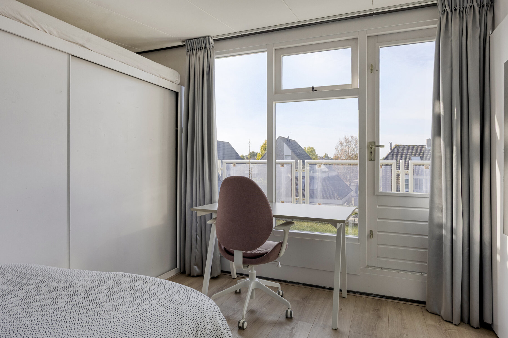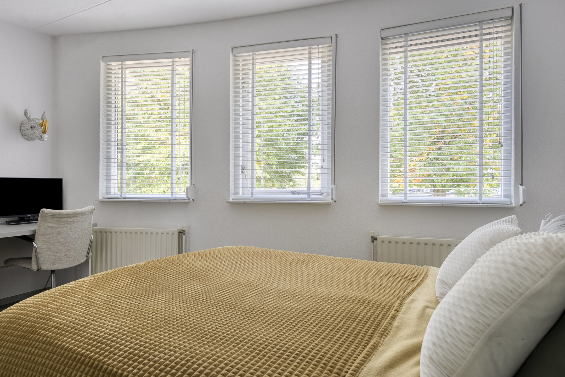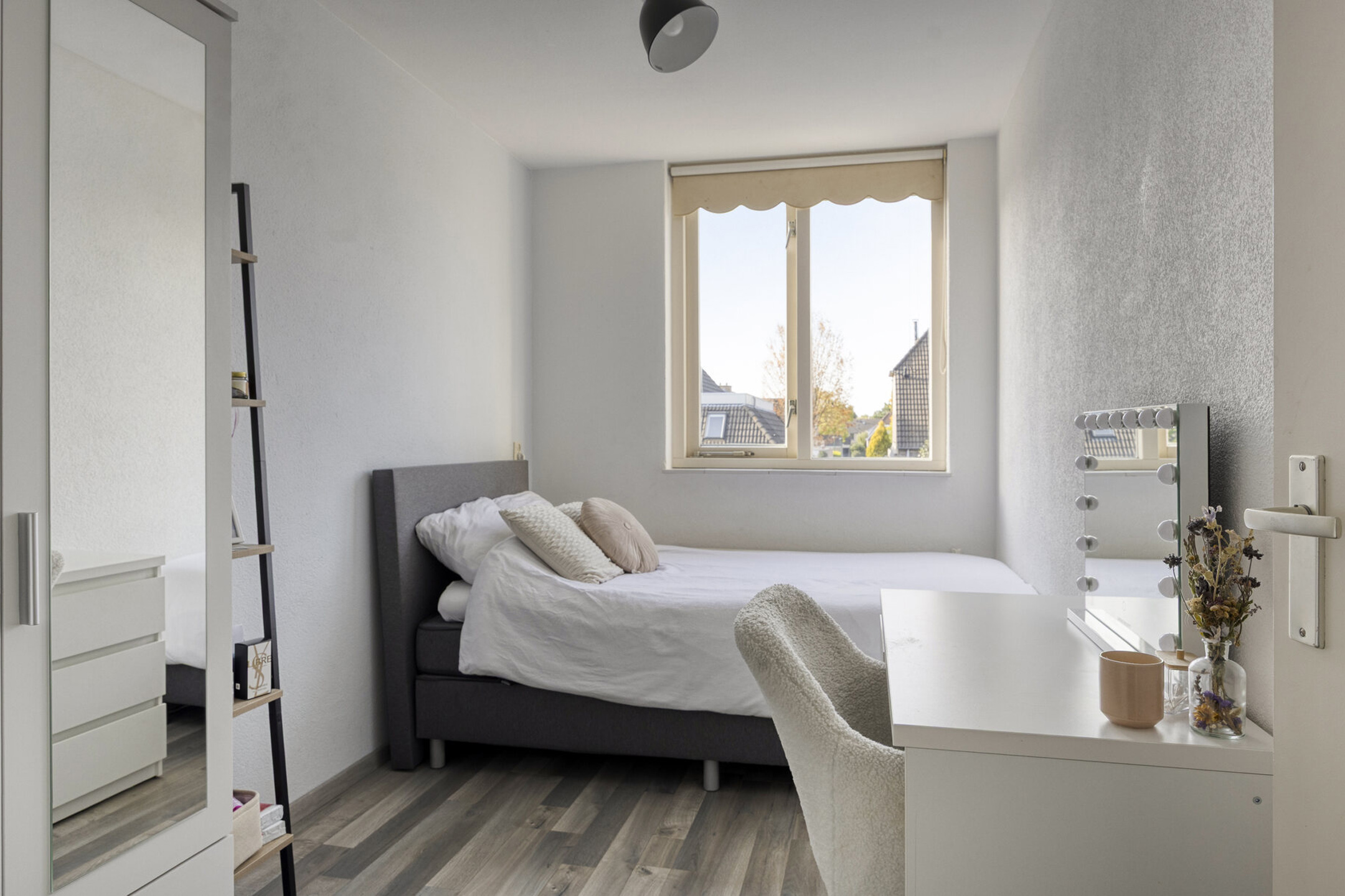 Overloop met toegang tot drie slaapkamers en de badkamer. De hoofdslaapkamer ligt aan de voorzijde en beschikt over veel lichtinval en rolluiken. Aan de achterzijde bevinden zich nog twee slaapkamers. De badkamer (2017) is compleet uitgevoerd met inloopdouche, toilet en dubbel wastafelmeubel. Alle kamers zijn voorzien van laminaatvloeren en wanden/plafonds met fijne korrel op de hoofdslaapkamer zijn enkele wanden voorzien van strak stucwerk.