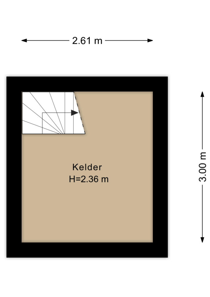 Aangrenzend bevindt zich de kelder en een praktische bijkeuken met wasmachine- en drogeraansluiting.