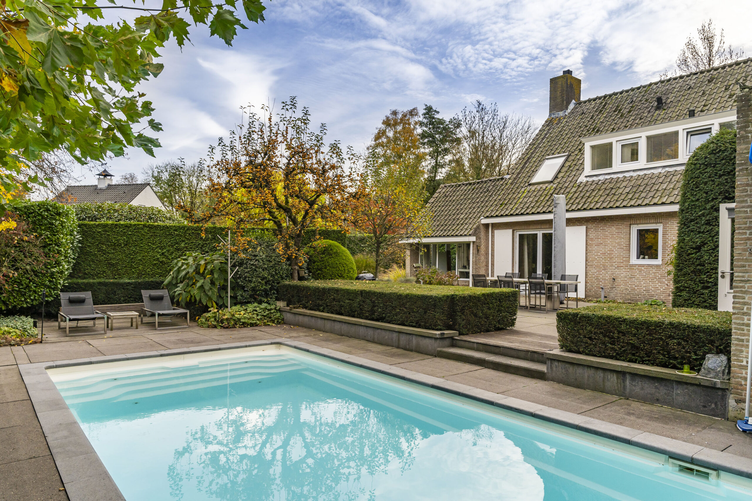 De woning beschikt over een sfeervolle woonkamer, moderne keuken met Miele-apparatuur, vier slaapkamers, een verzorgde tuin met zwembad, sauna en diverse terrassen. Daarnaast is de woning energiezuinig uitgevoerd met onder meer zonnepanelen en een energielabel A.
