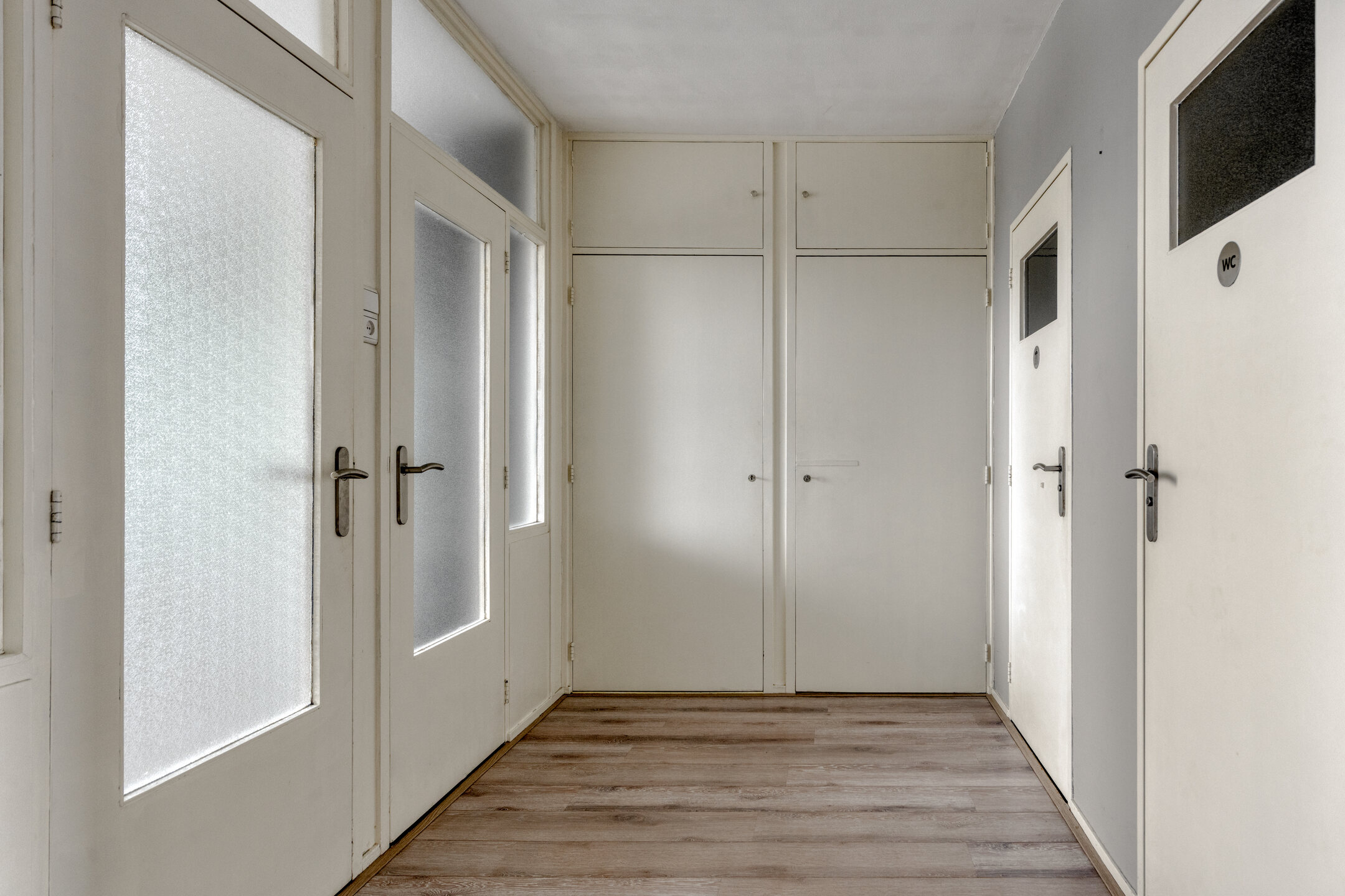 Via de centrale entree met brievenbussen en intercom bereikt u het appartementencomplex. Middels de lift of het trappenhuis bereikt u de vierde verdieping waar het appartement aan het begin van de lange zijde is gelegen.