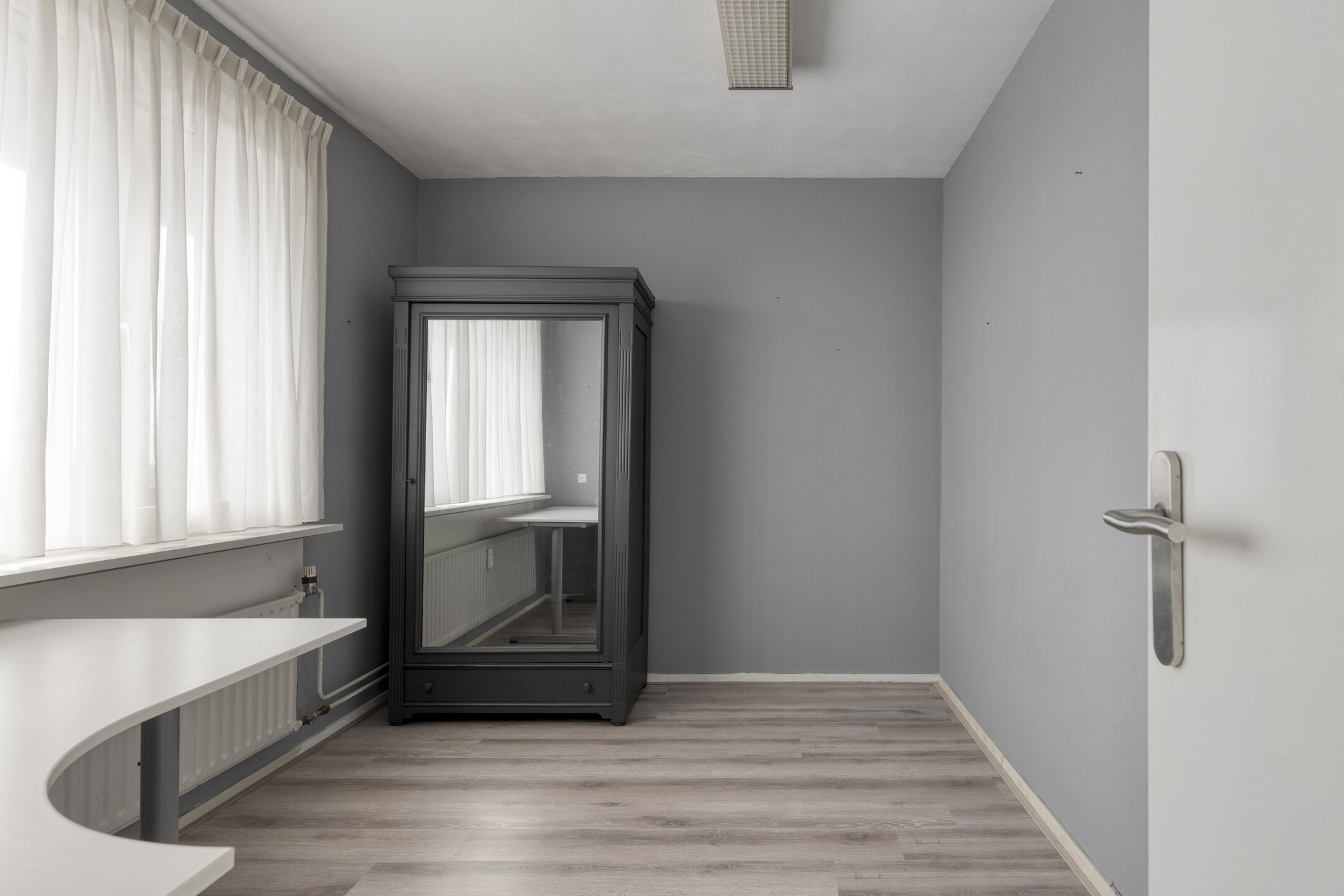In de hal bevinden zich de meterkast (voorzien van 5 groepen en 1 aardlekschakelaar) en twee vaste kasten.