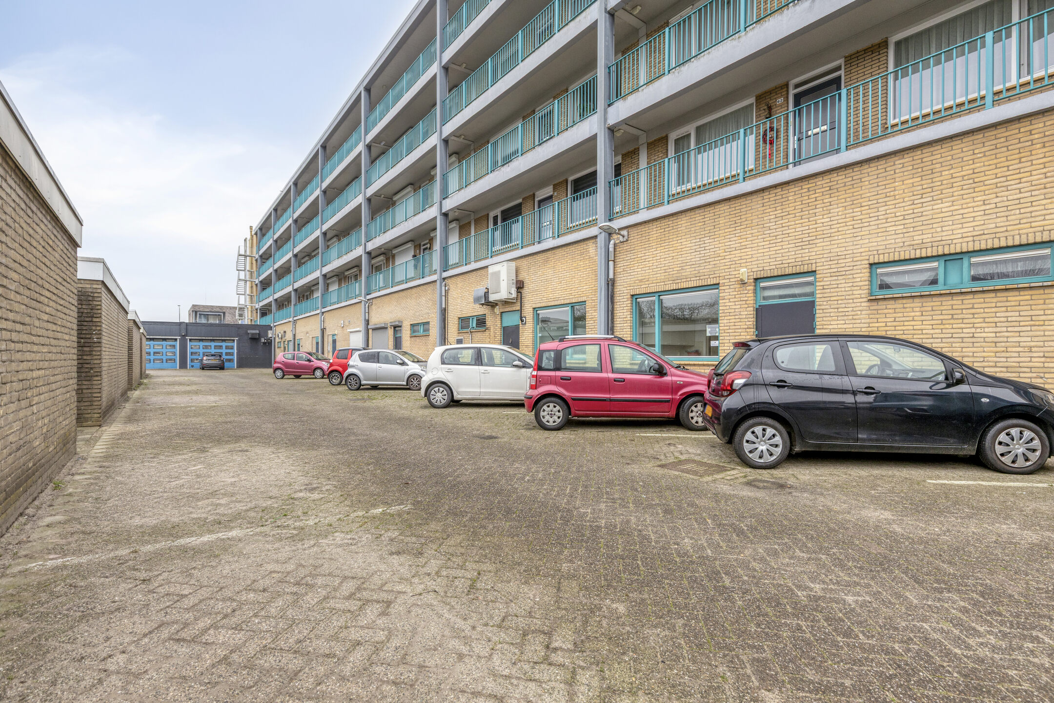 Via een slagboom bereikt u de achterzijde van het complex, waar de parkeerplaatsen zijn gelegen. Deze plaatsen zijn niet toegewezen of gereserveerd.