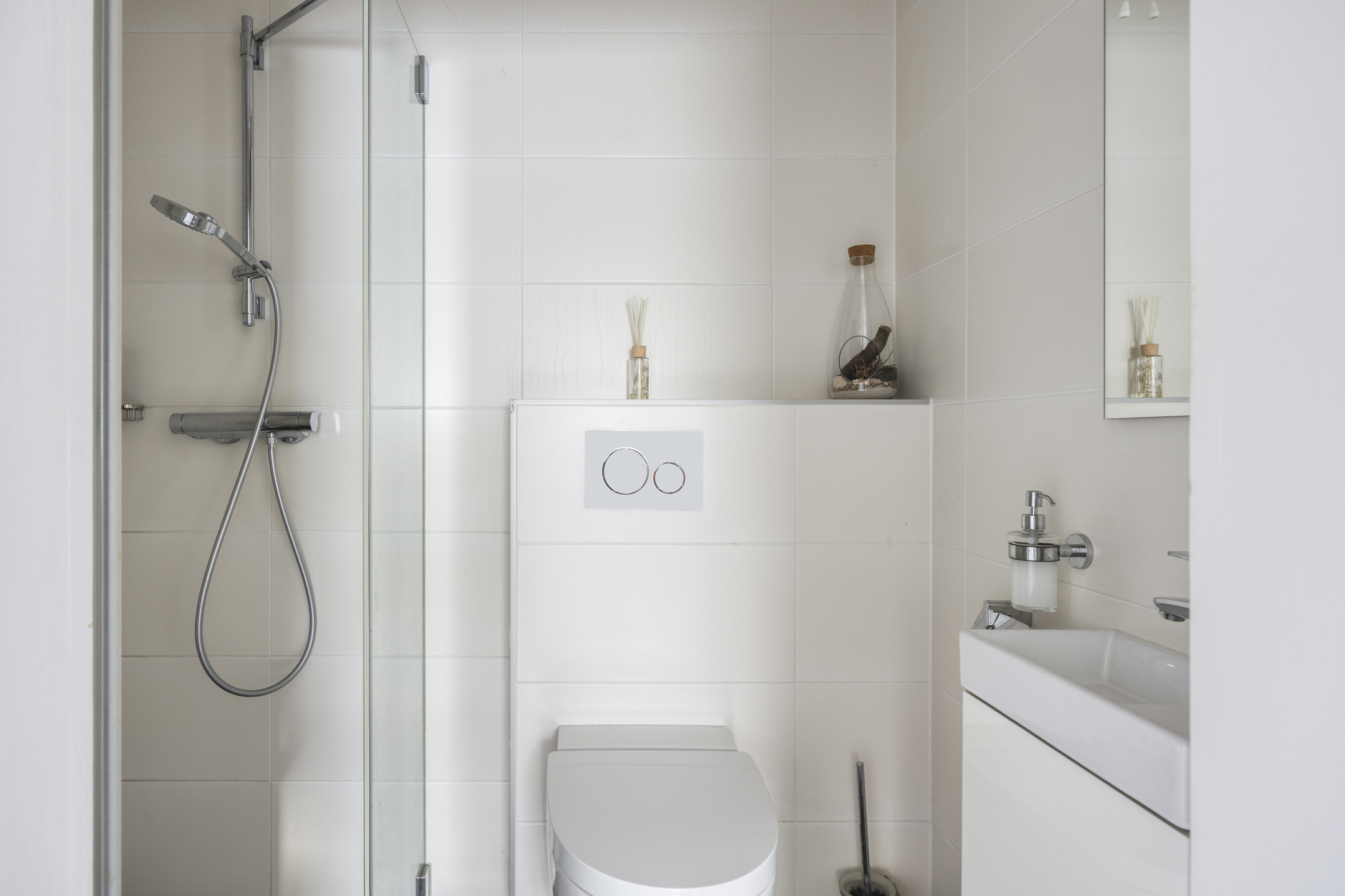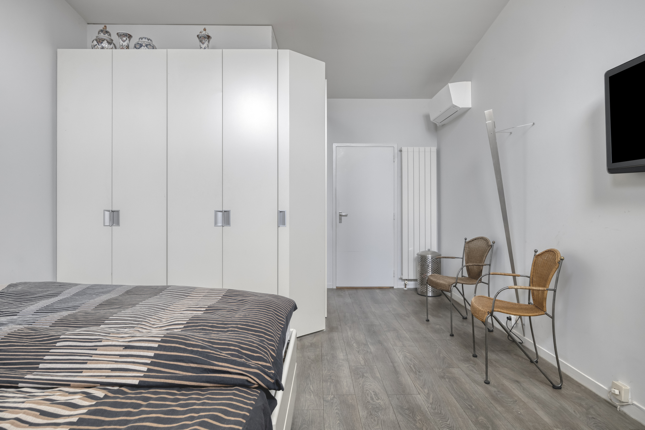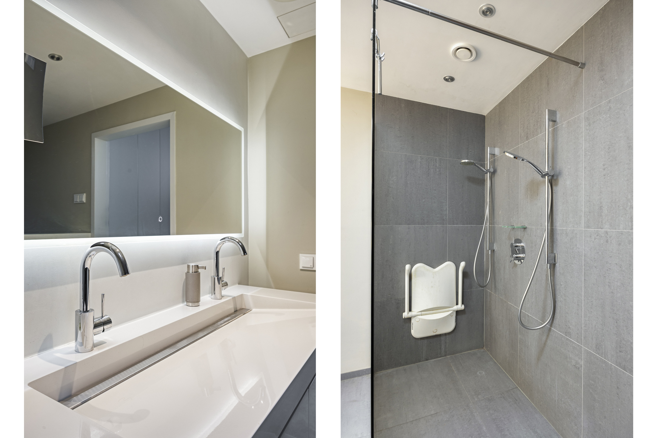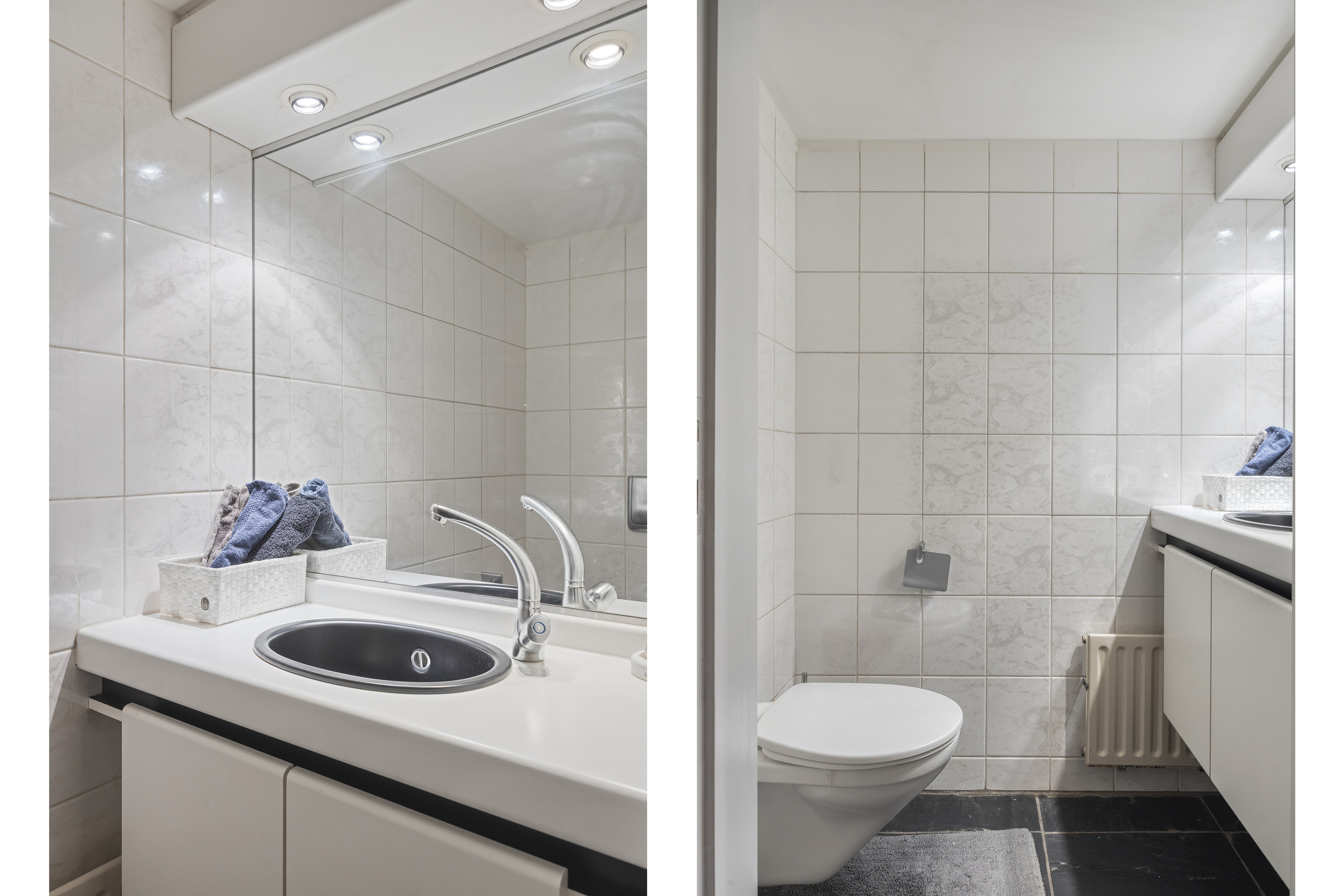 Centraal in de woning bevindt zich de master bedroom, een comfortabele en rustige ruimte voorzien van airconditioning en een ruime inloopkast. De aangrenzende badkamer is modern en compleet uitgevoerd met een wastafelmeubel, ligbad, inloopdouche en toilet. Vloerverwarming zorgt hier voor extra comfort.