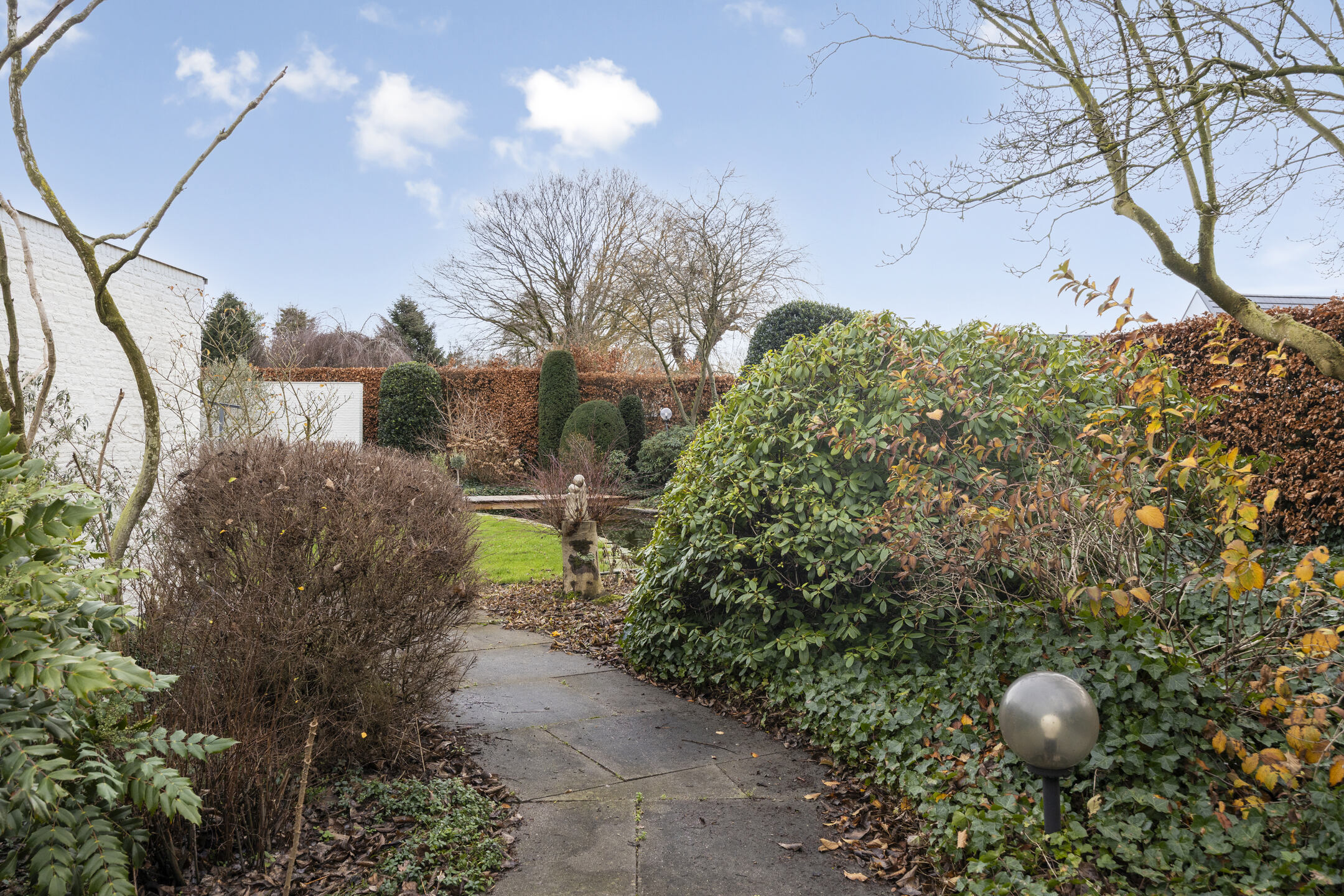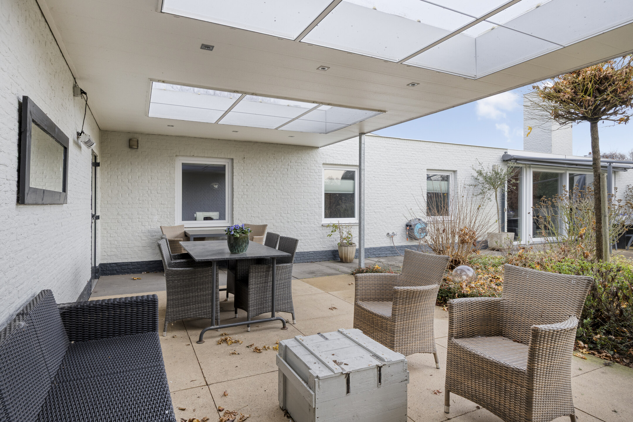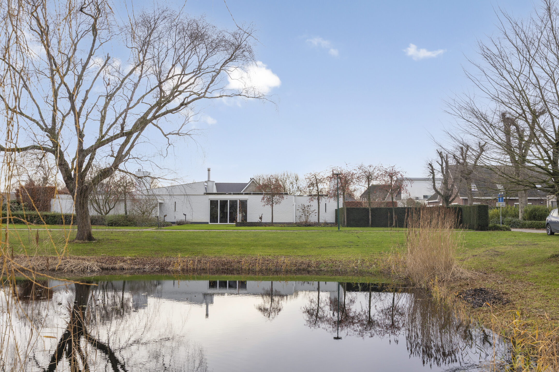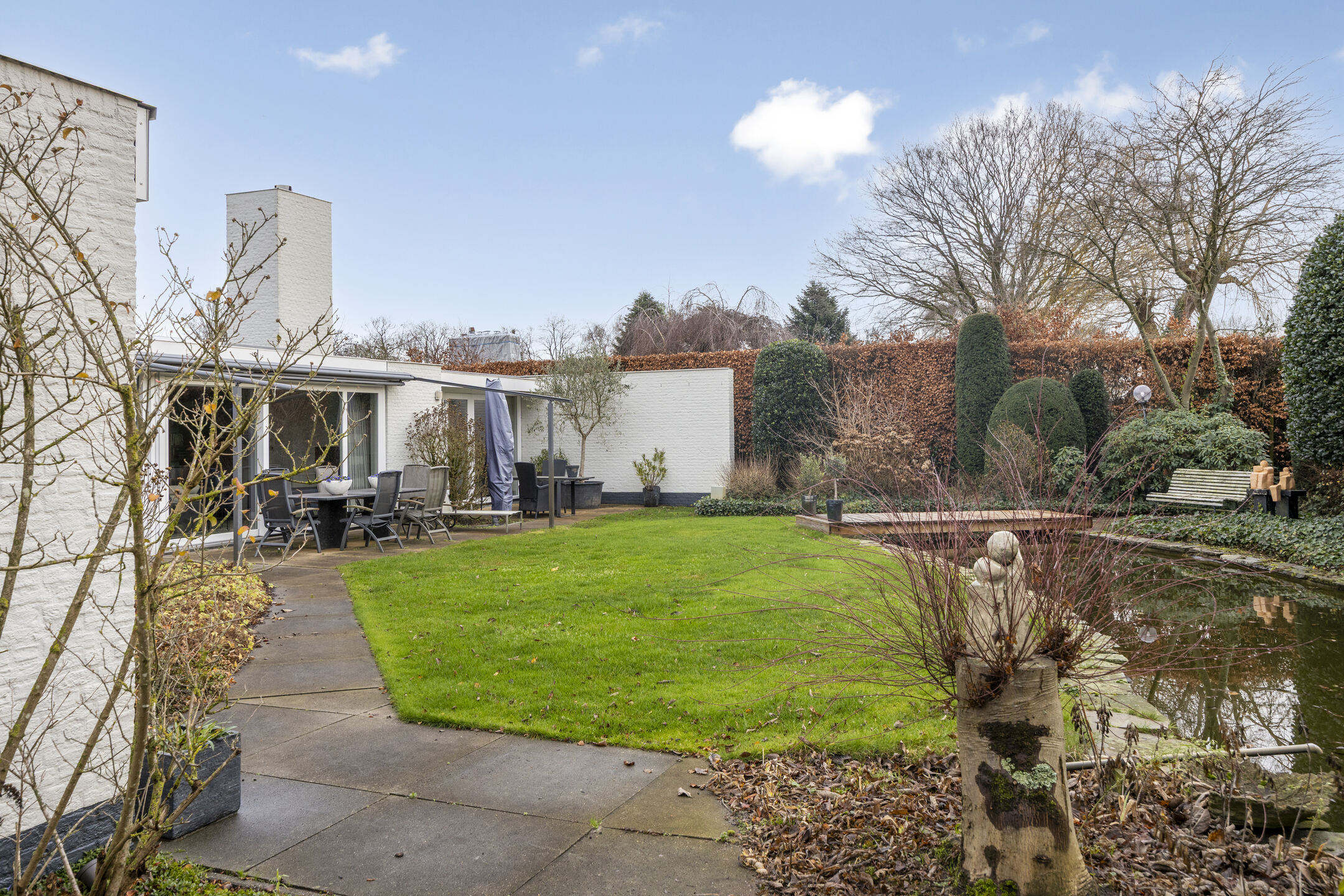 De achtertuin is een oase van rust en privacy. De tuin is zonnig gelegen en fraai ingericht met een combinatie van bestrating en gazon. De sfeervolle veranda nodigt uit tot lange zomeravonden, terwijl de vijver een extra gevoel van kalmte toevoegt. Een plek waar u in alle rust kunt genieten van het buitenleven.