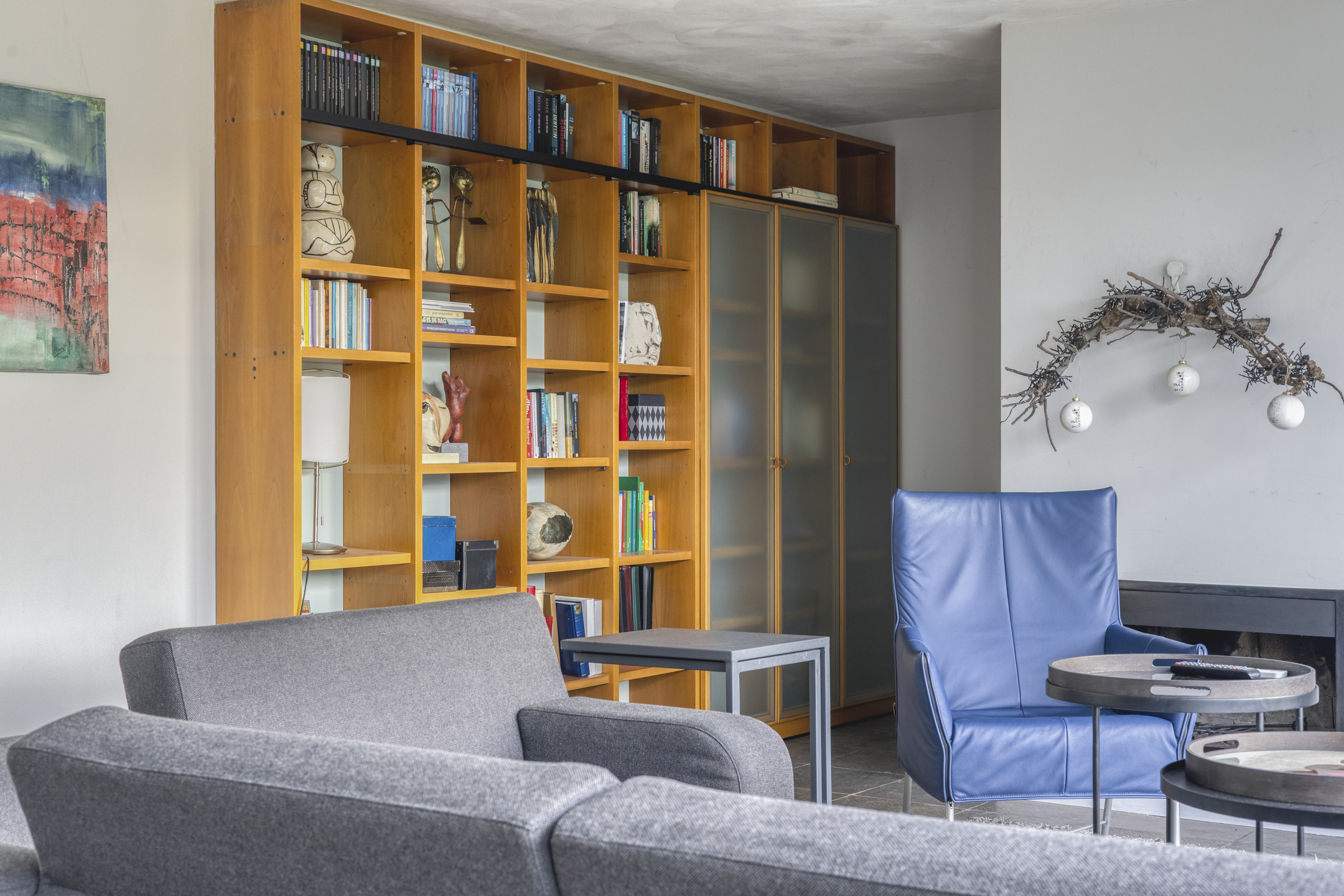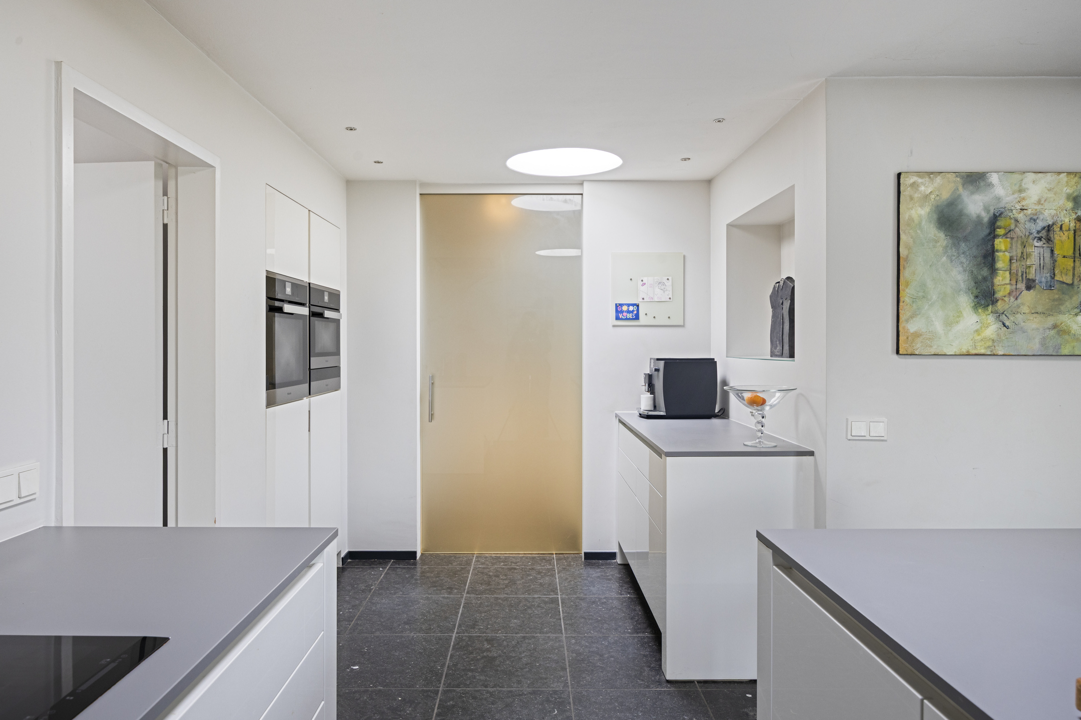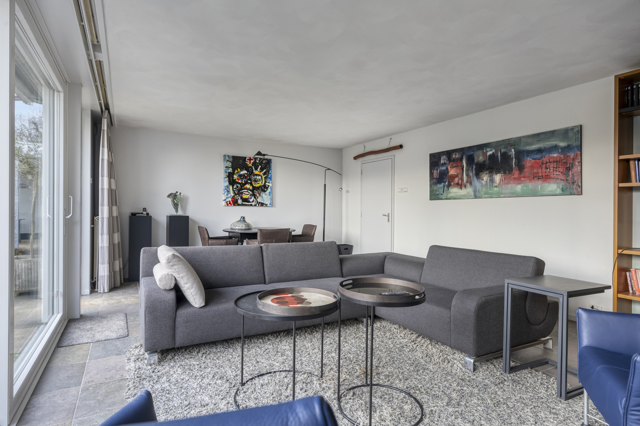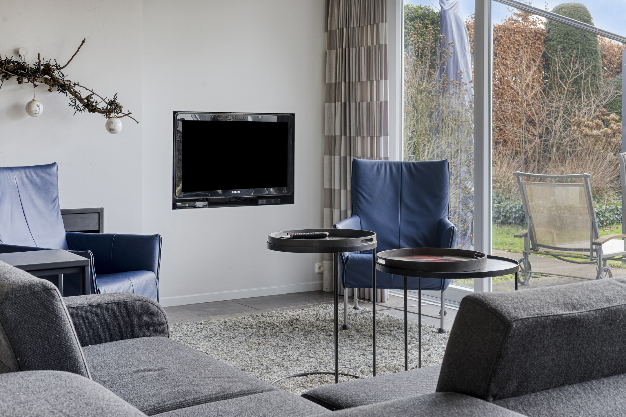 De royale zit-/tuinkamer vormt het hart van de woning. Dankzij een grote schuifpui geniet u hier van een prachtig uitzicht over de tuin en een overvloed aan daglicht. De openhaard draagt bij aan de warme, sfeervolle uitstraling en maakt dit tot een heerlijke plek om te ontspannen.