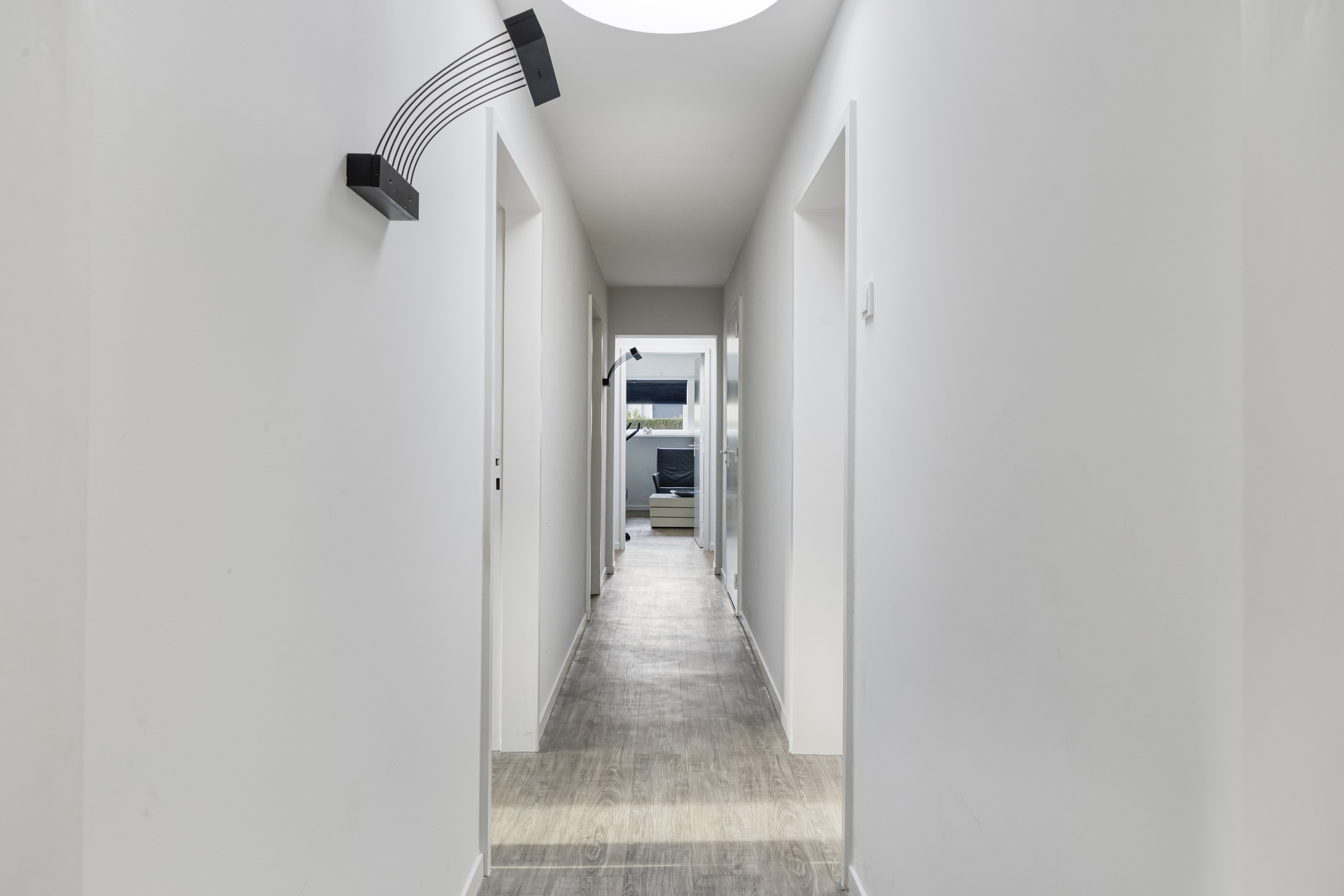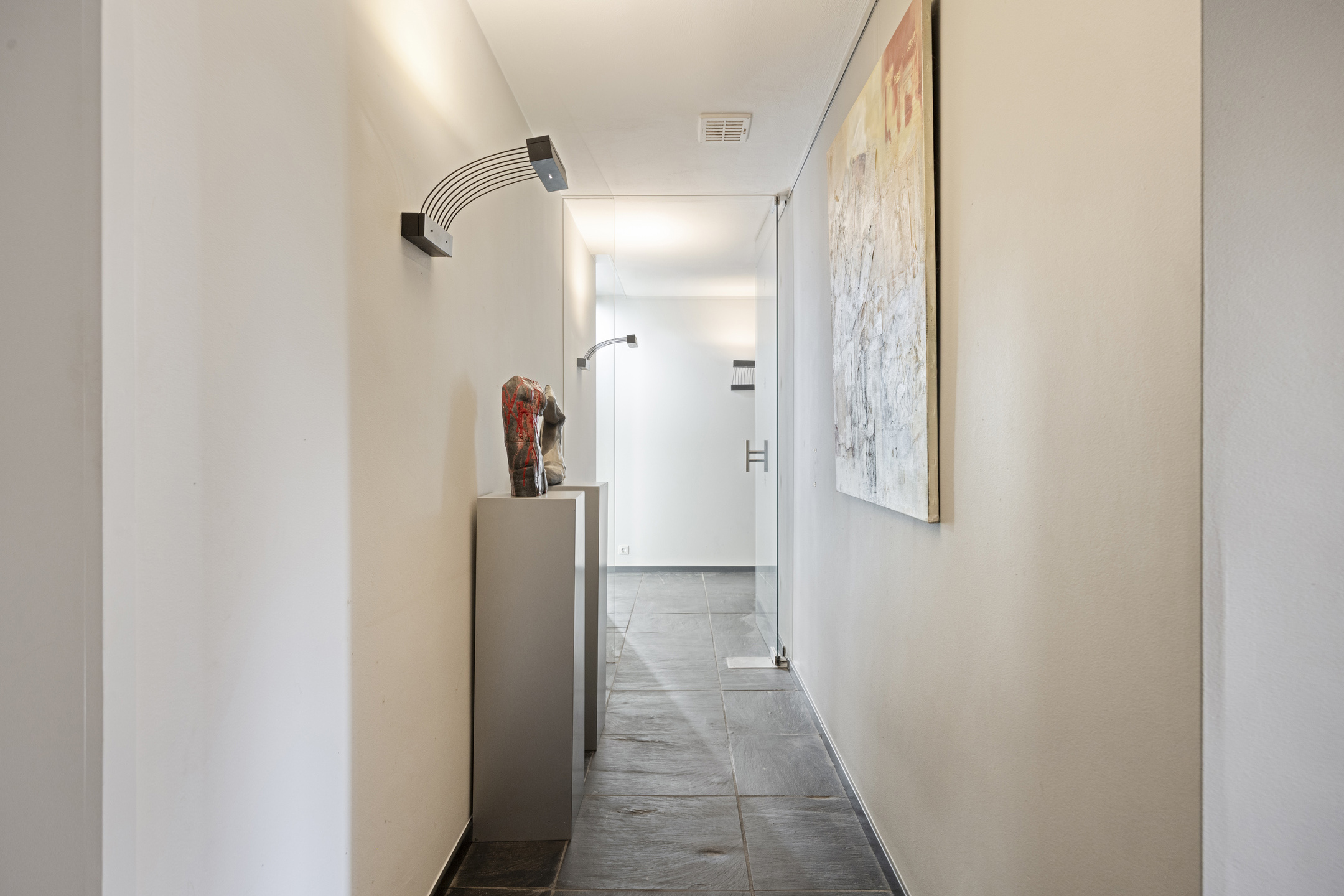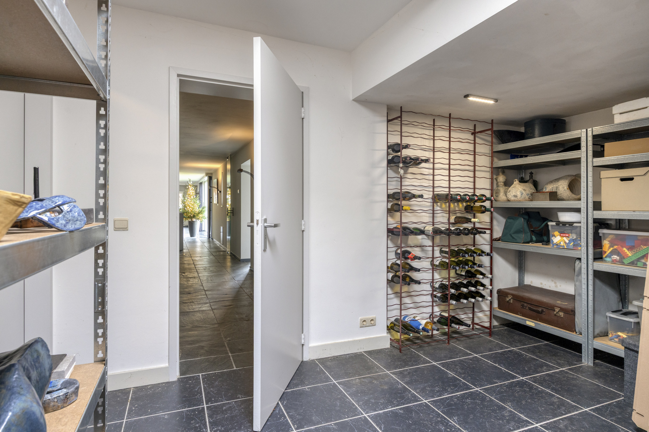 Bij aankomst voelt u direct de rustige en verzorgde uitstraling van de woning. De ruime entree verwelkomt u met een prettige lichtinval en vormt het centrale punt van waaruit vrijwel alle vertrekken bereikbaar zijn. In de hal bevinden zich een garderobe nis en een toilet. Aansluitend bereikt u de inpandige berging met daarachter de wijnopslag, een mooi extra detail voor de liefhebber.
