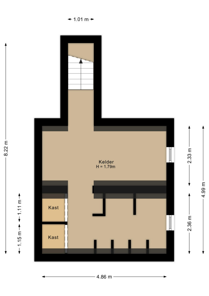 De kelder onder de woning straalt karakter uit met gewelfde plafonds en boerenplavuizen, ideaal als wijnkelder of voorraadruimte.