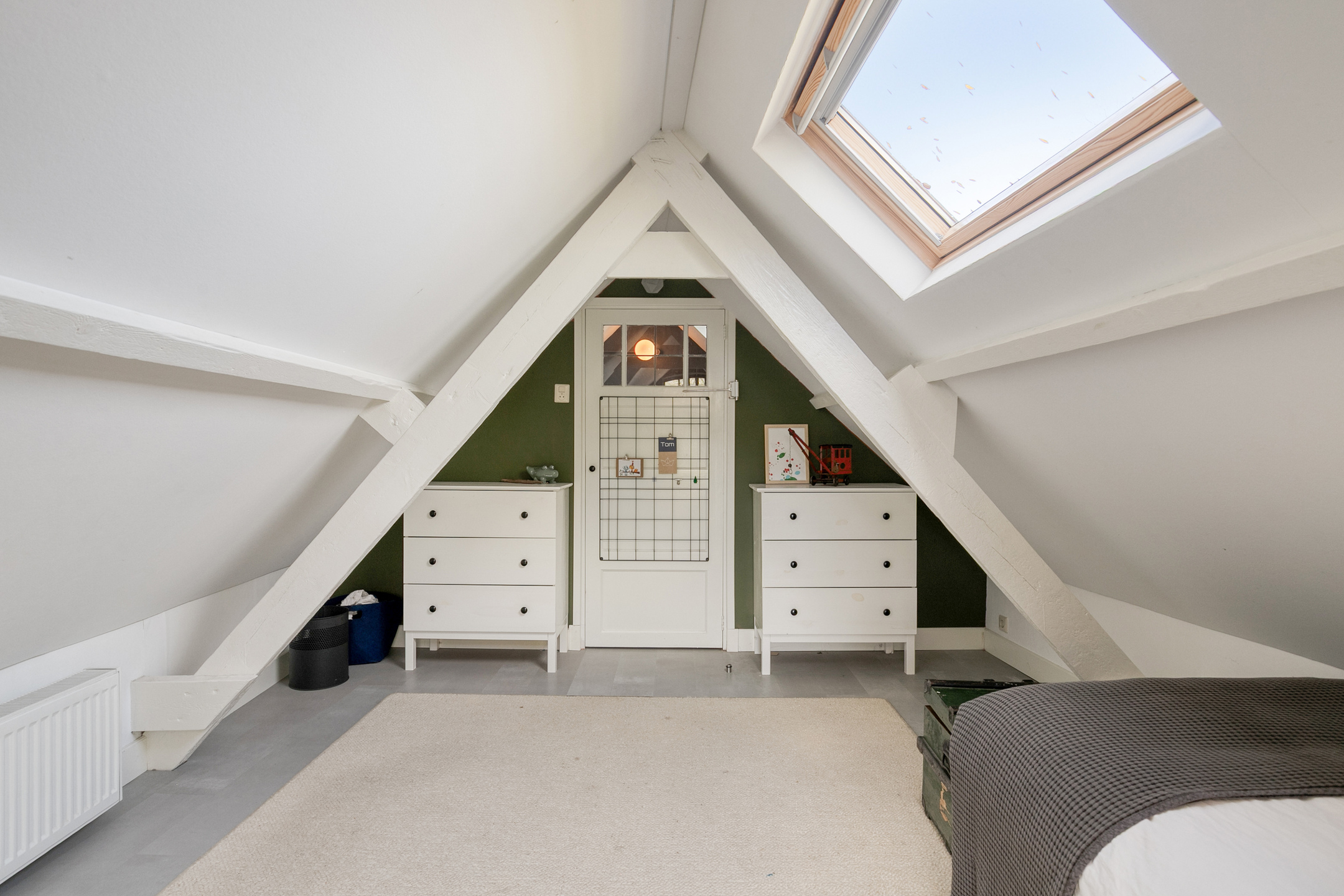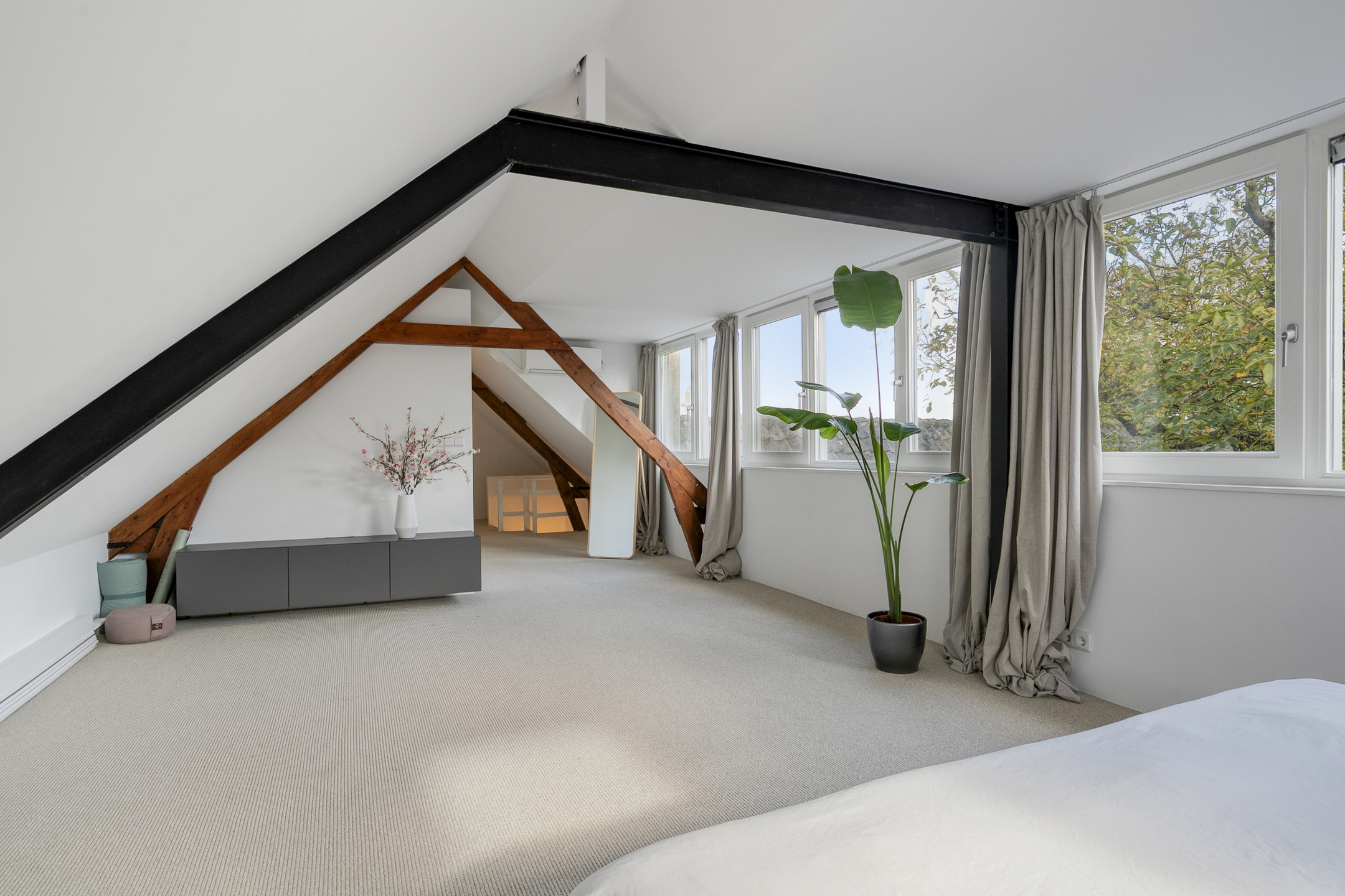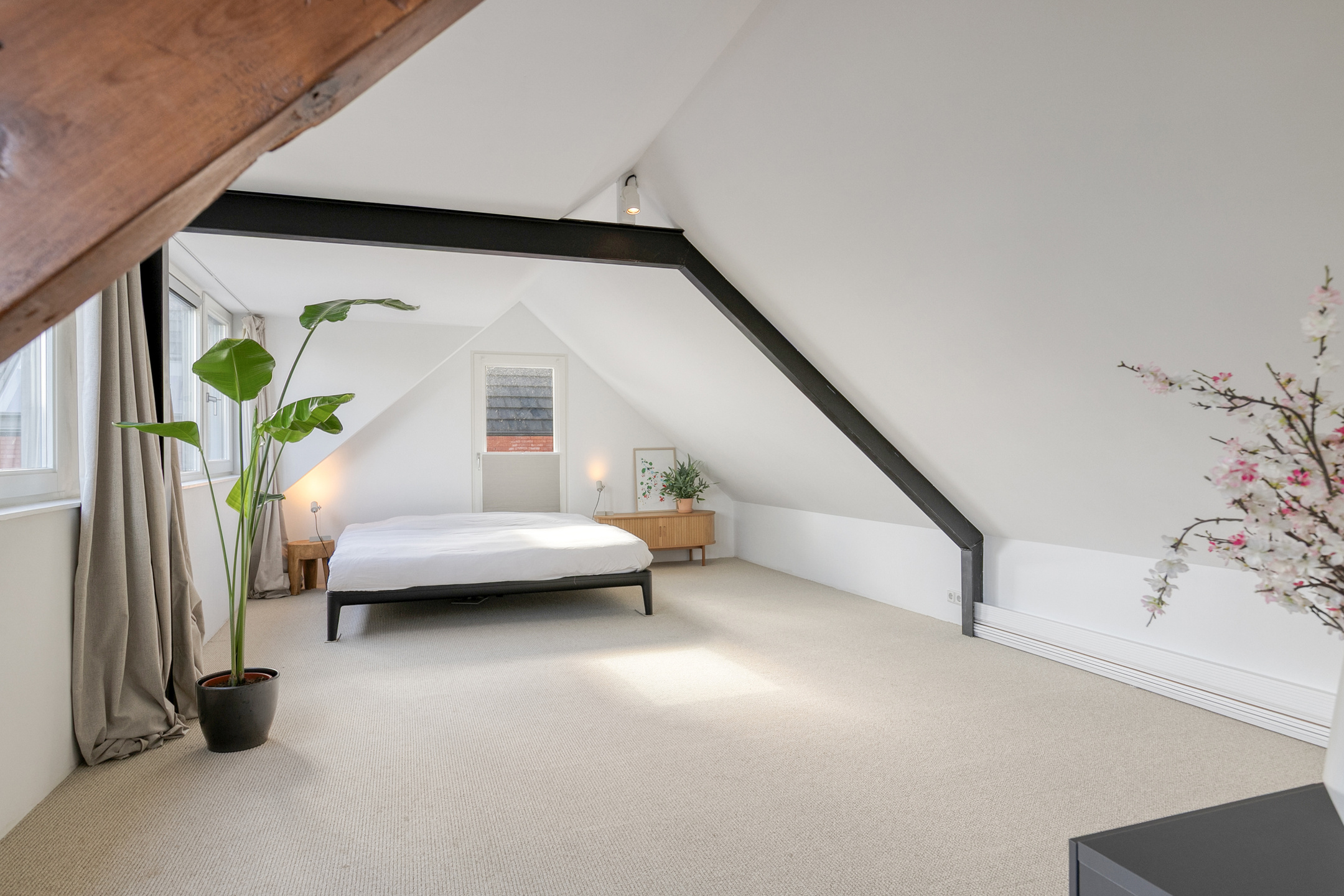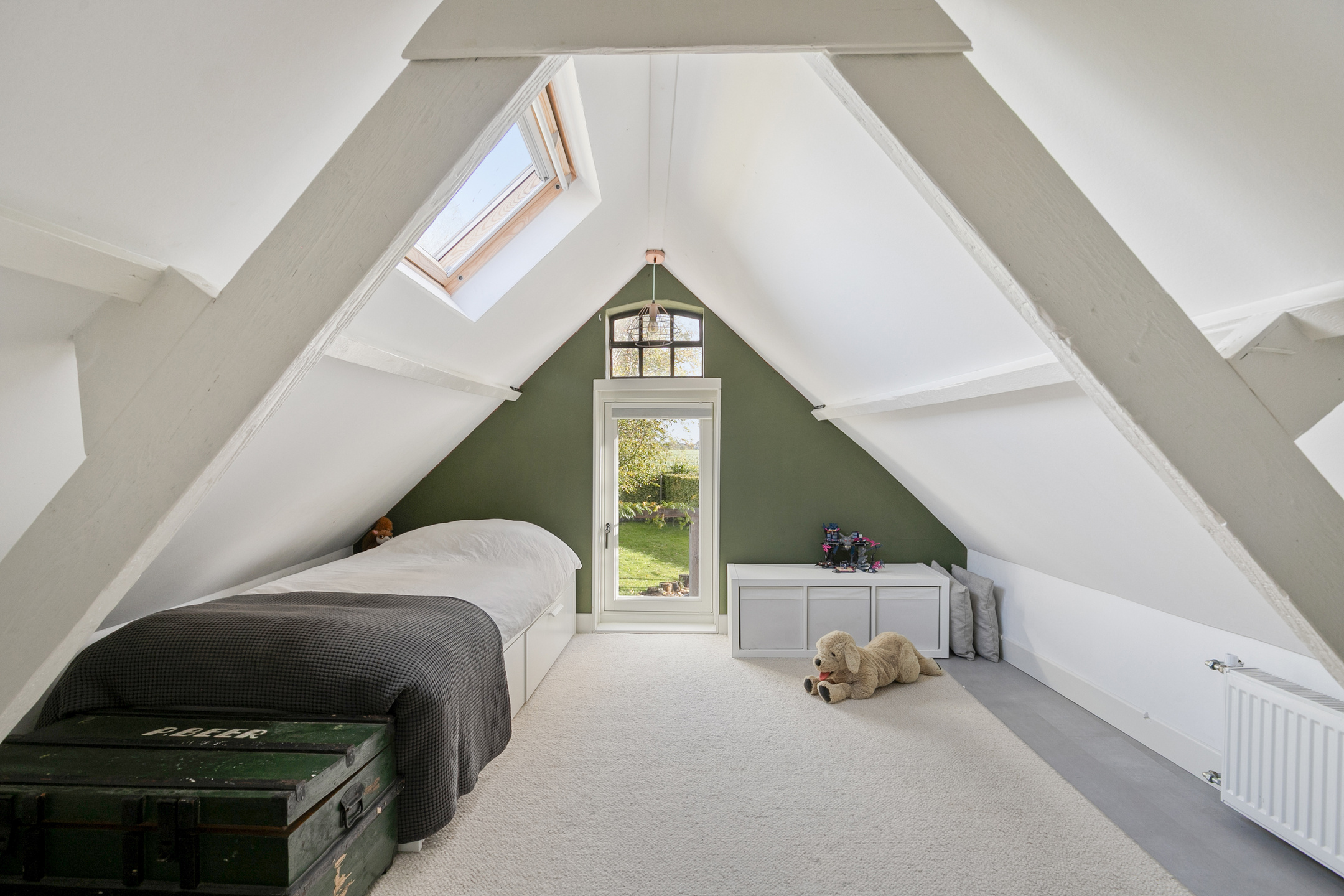 De verdieping van de hoofdbouw is volledig gemoderniseerd. De master bedroom met dakkapel heeft uitzicht op de tuin en het achterliggende groen. Hier vind je bovendien een tweede badkamer met douche, wastafelmeubel en toilet, én een handige walk-in-closet. Op de verdieping in de aanbouw is de vijfde slaapkamer gesitueerd.