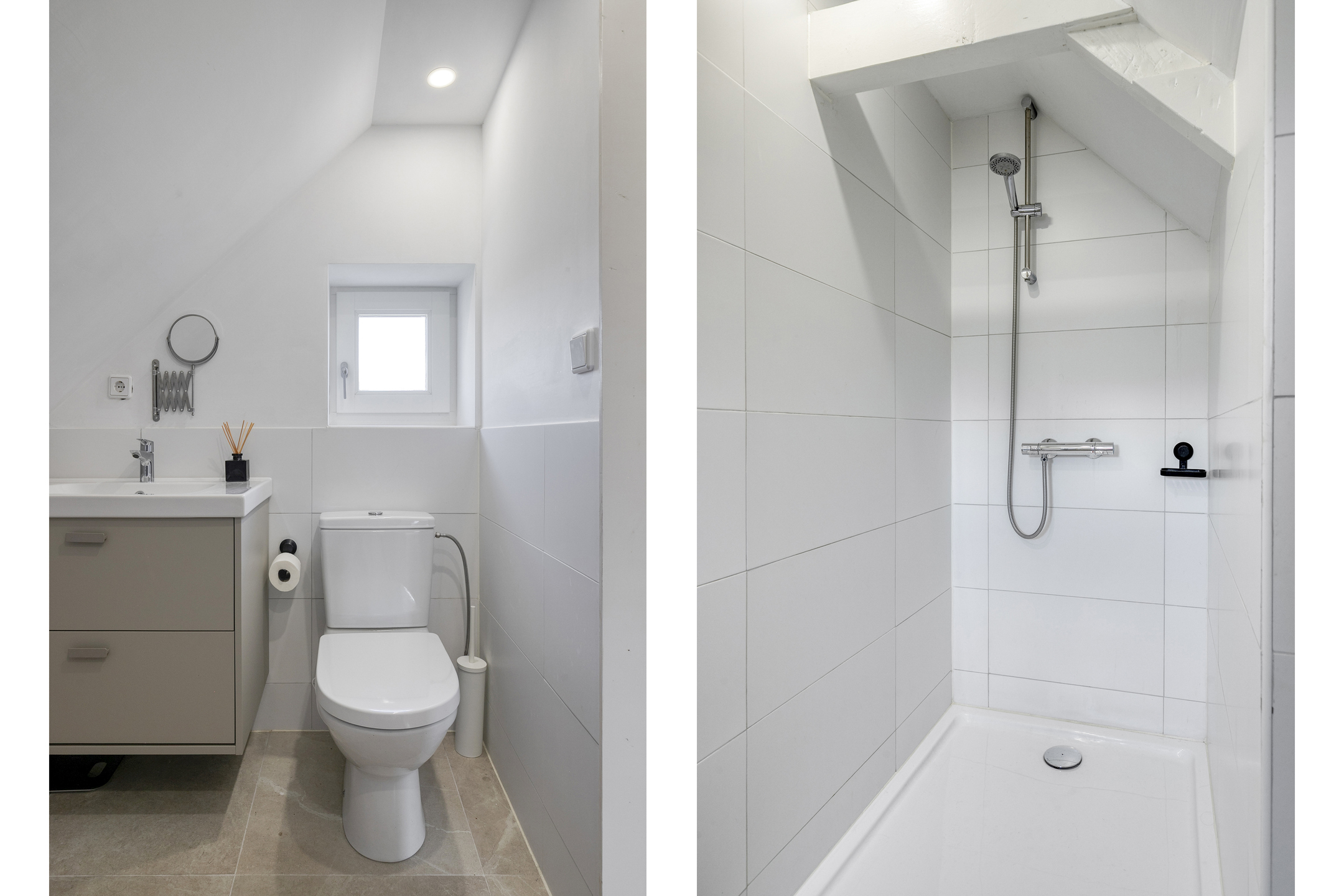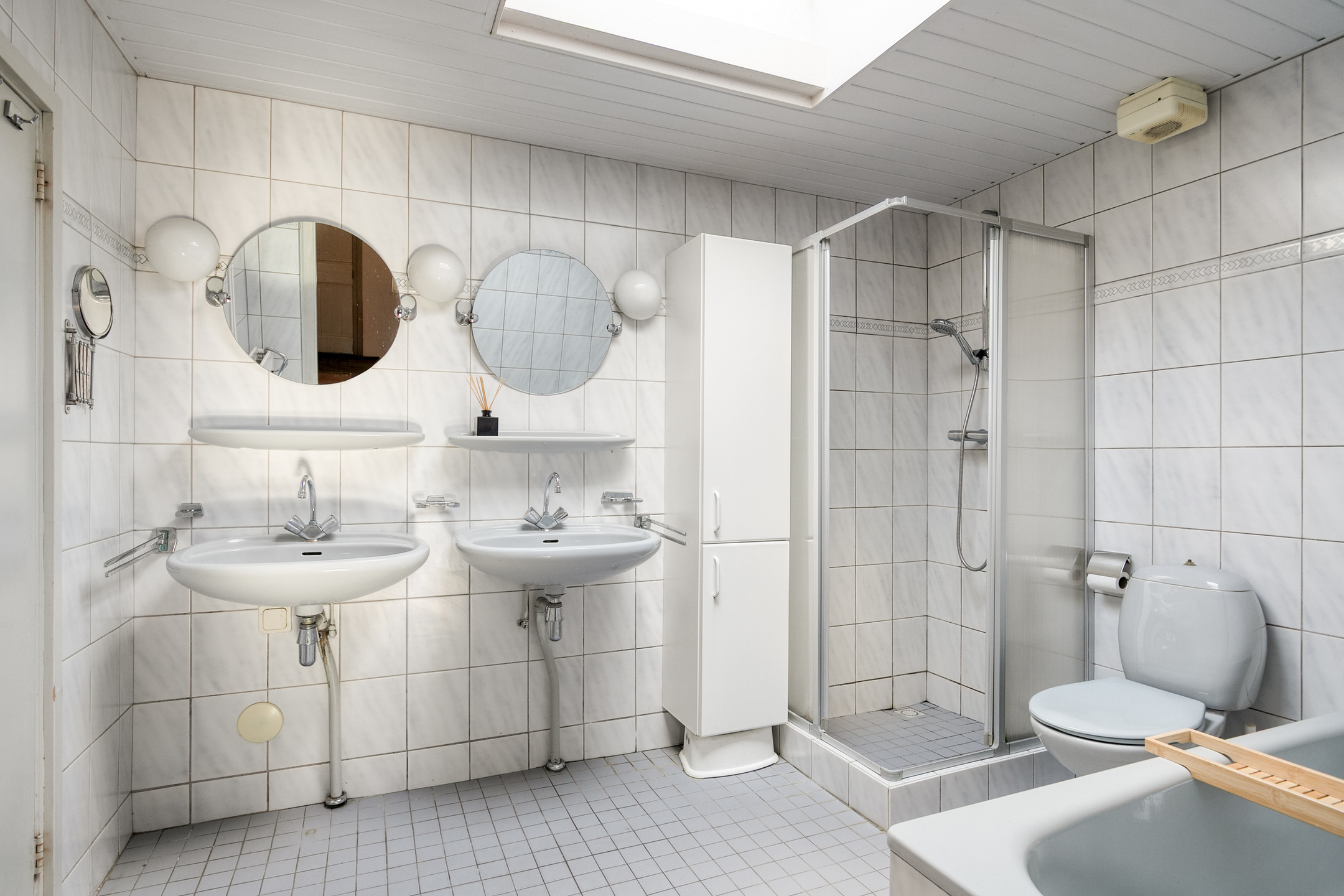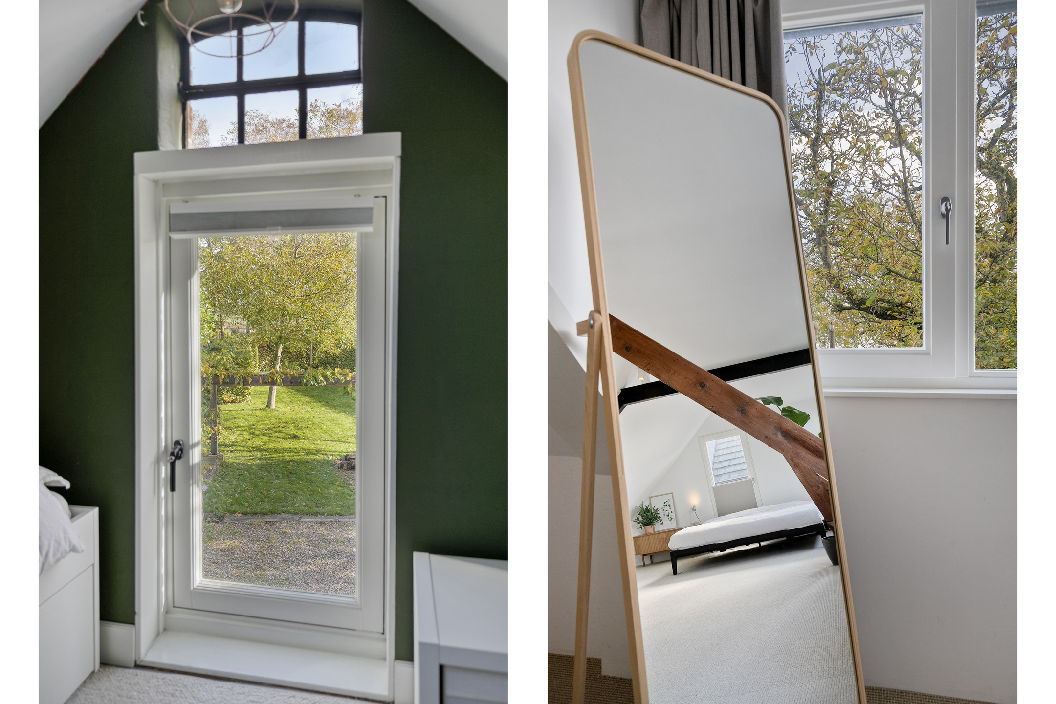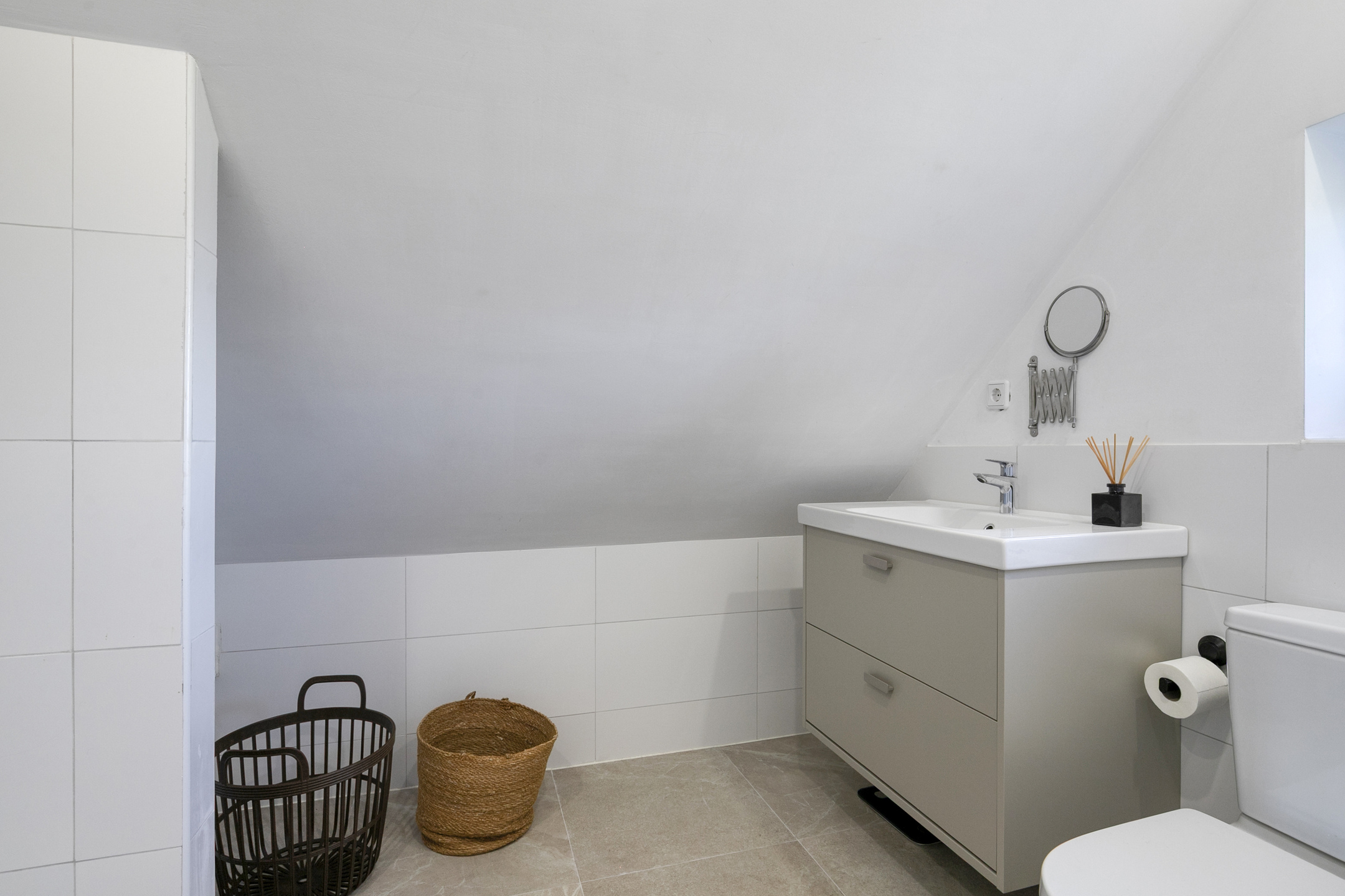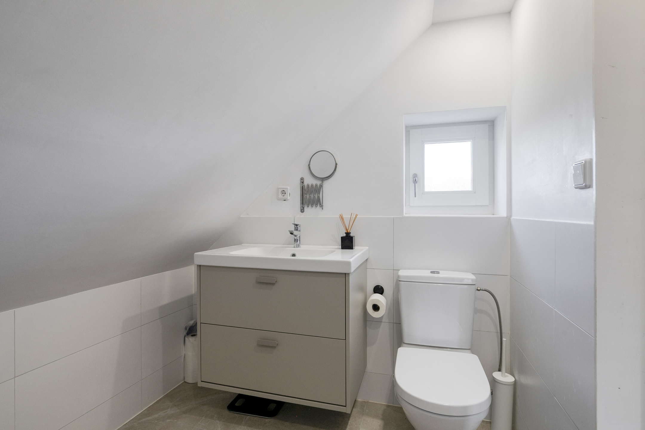 De verdieping van de hoofdbouw is volledig gemoderniseerd. De master bedroom met dakkapel heeft uitzicht op de tuin en het achterliggende groen. Hier vind je bovendien een tweede badkamer met douche, wastafelmeubel en toilet, én een handige walk-in-closet. Op de verdieping in de aanbouw is de vijfde slaapkamer gesitueerd.