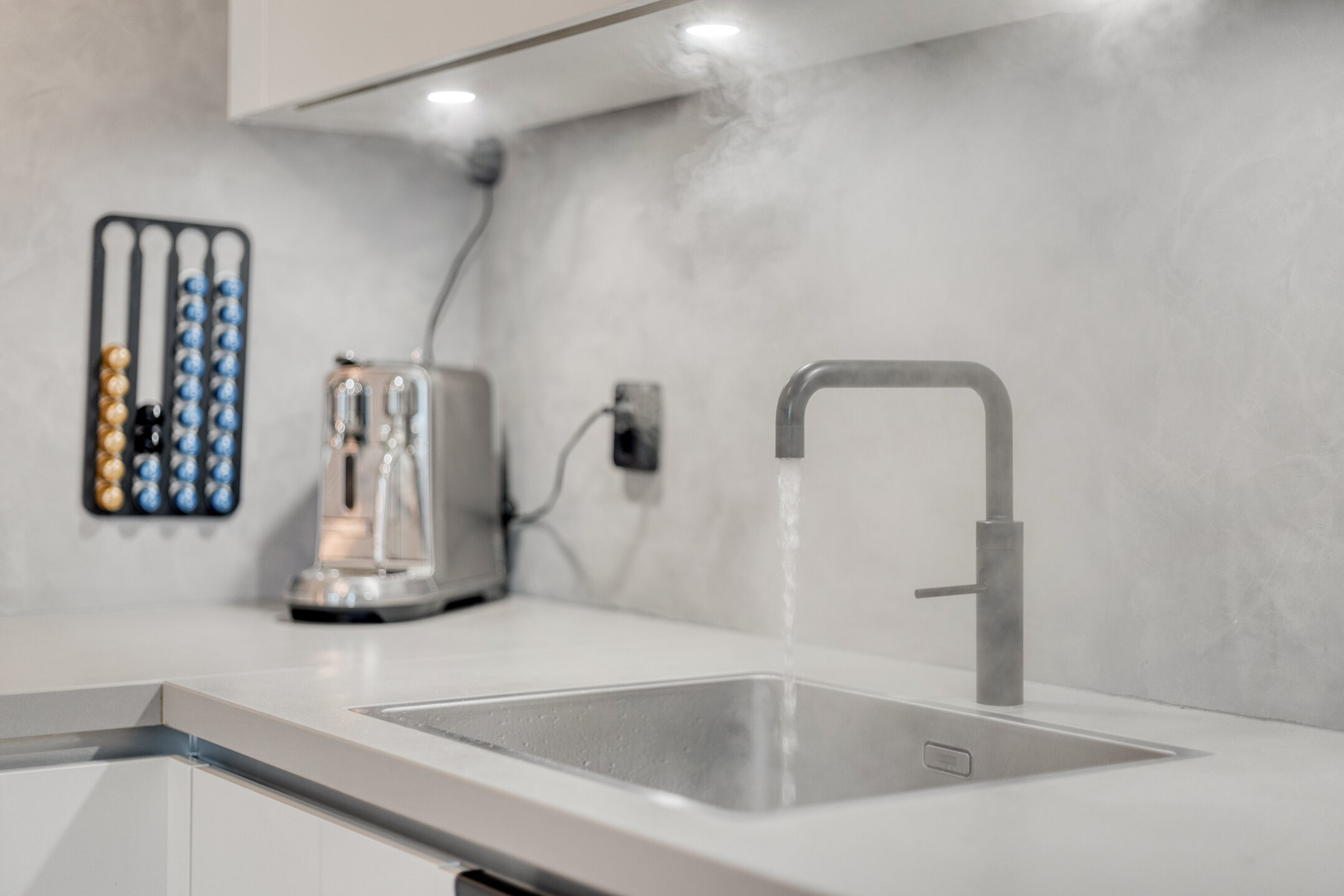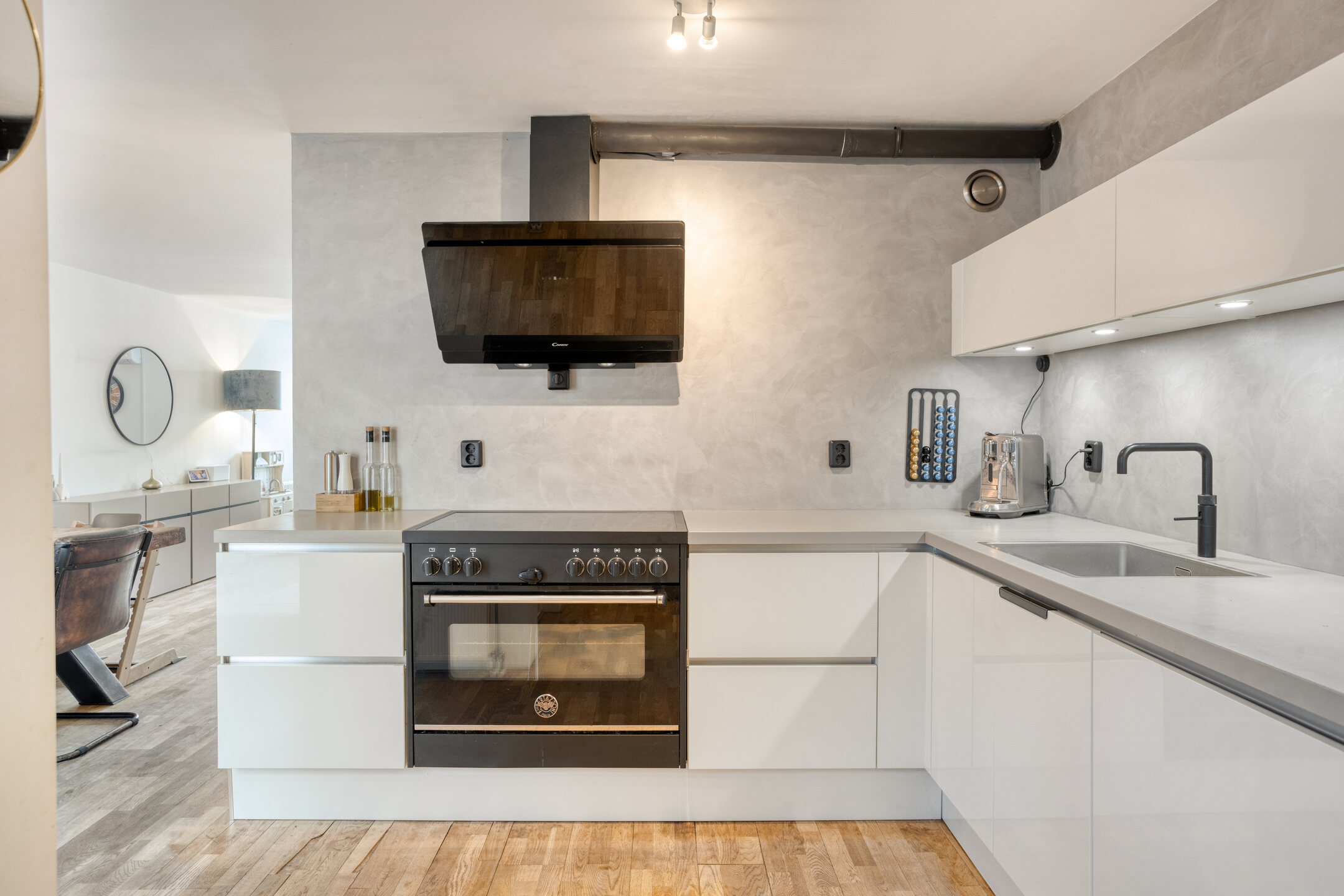 De keuken is in 2020 vernieuwd en strak uitgevoerd, voorzien van 5-pits inductiekookplaat, oven, combi-oven/magnetron, vaatwasser, Quooker, koelkast en vriezer.