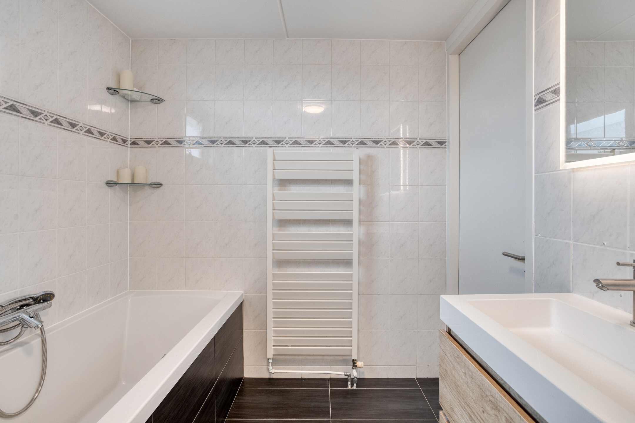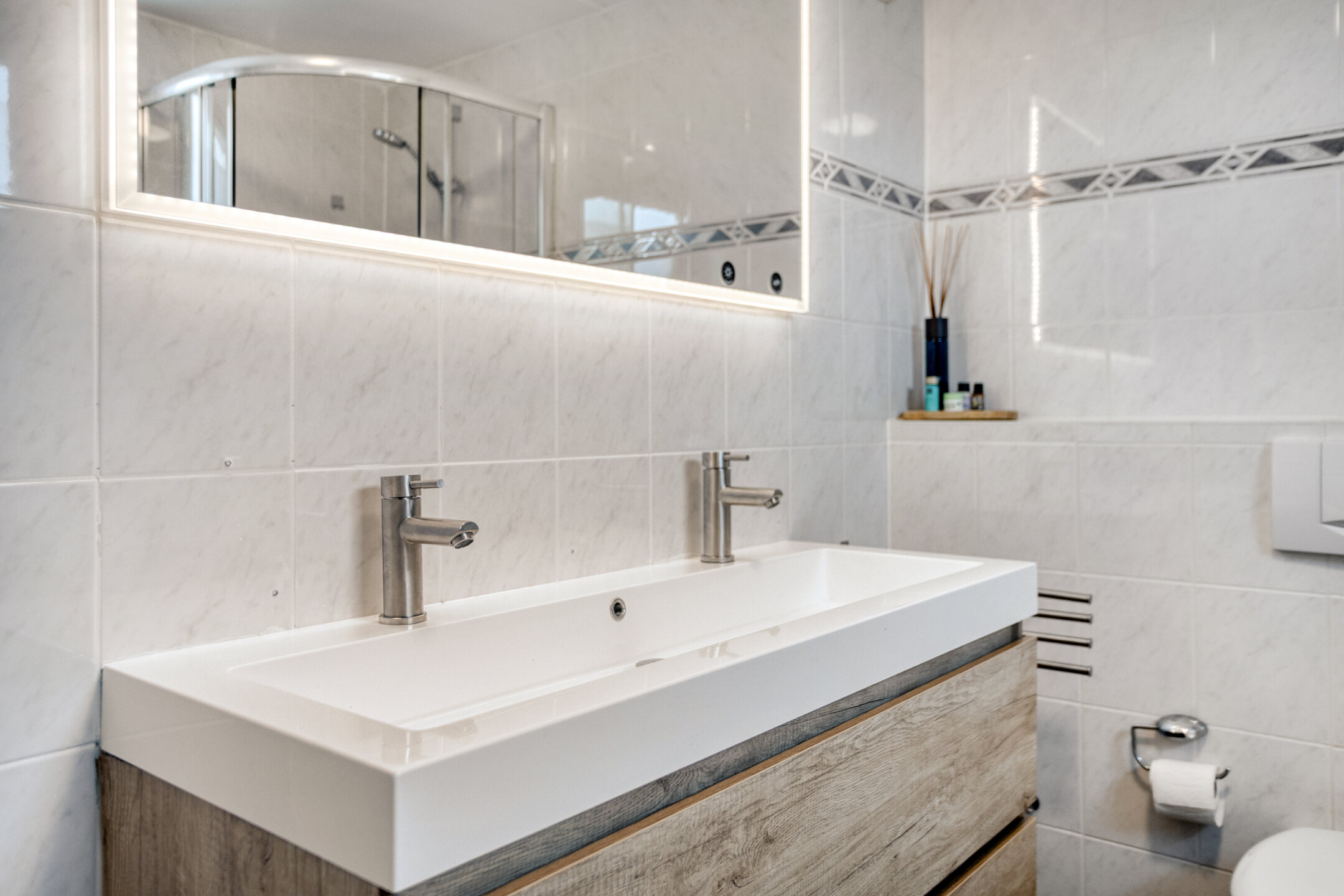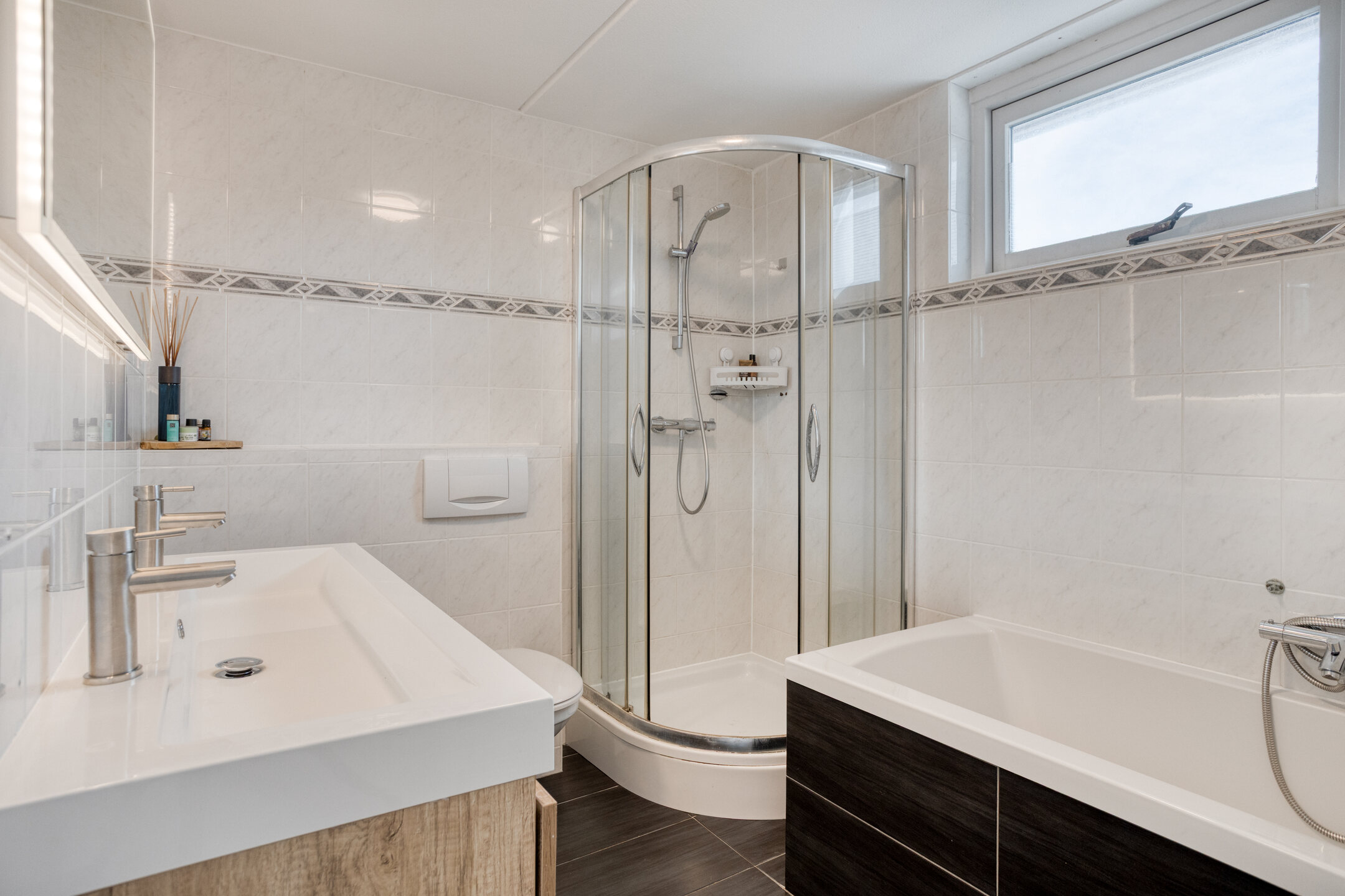 – Badkamer met ligbad, douche en dubbele wastafel;