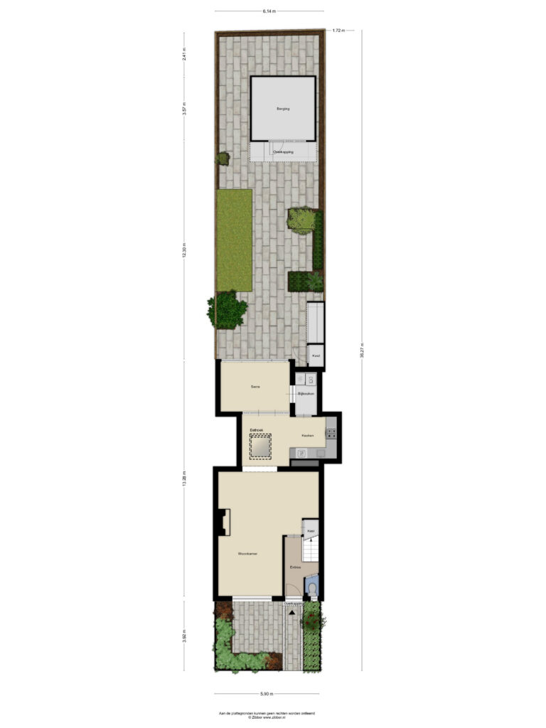 – Diepe achtertuin van circa 17 meter met veel privacy;