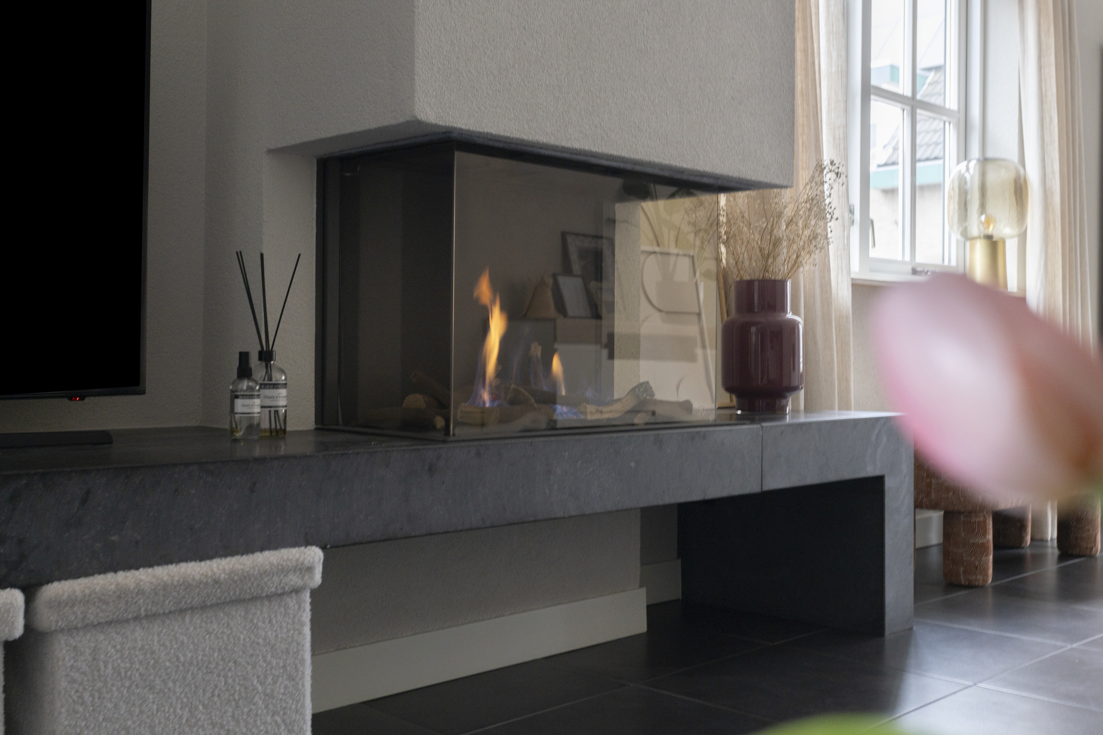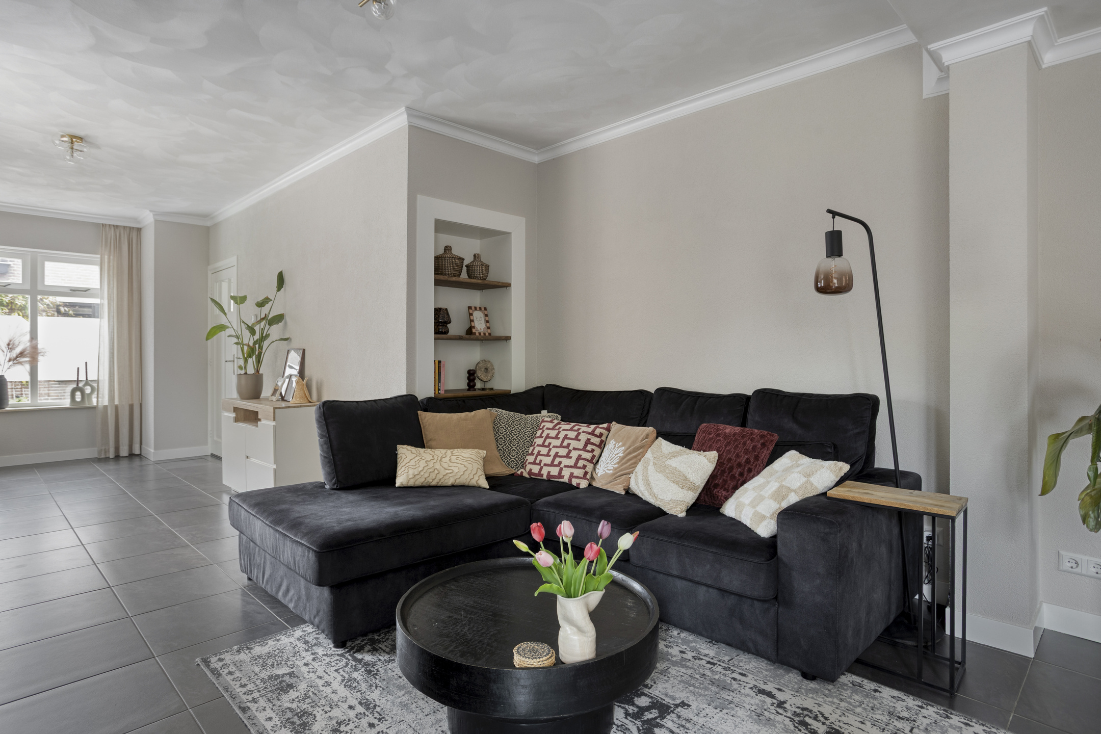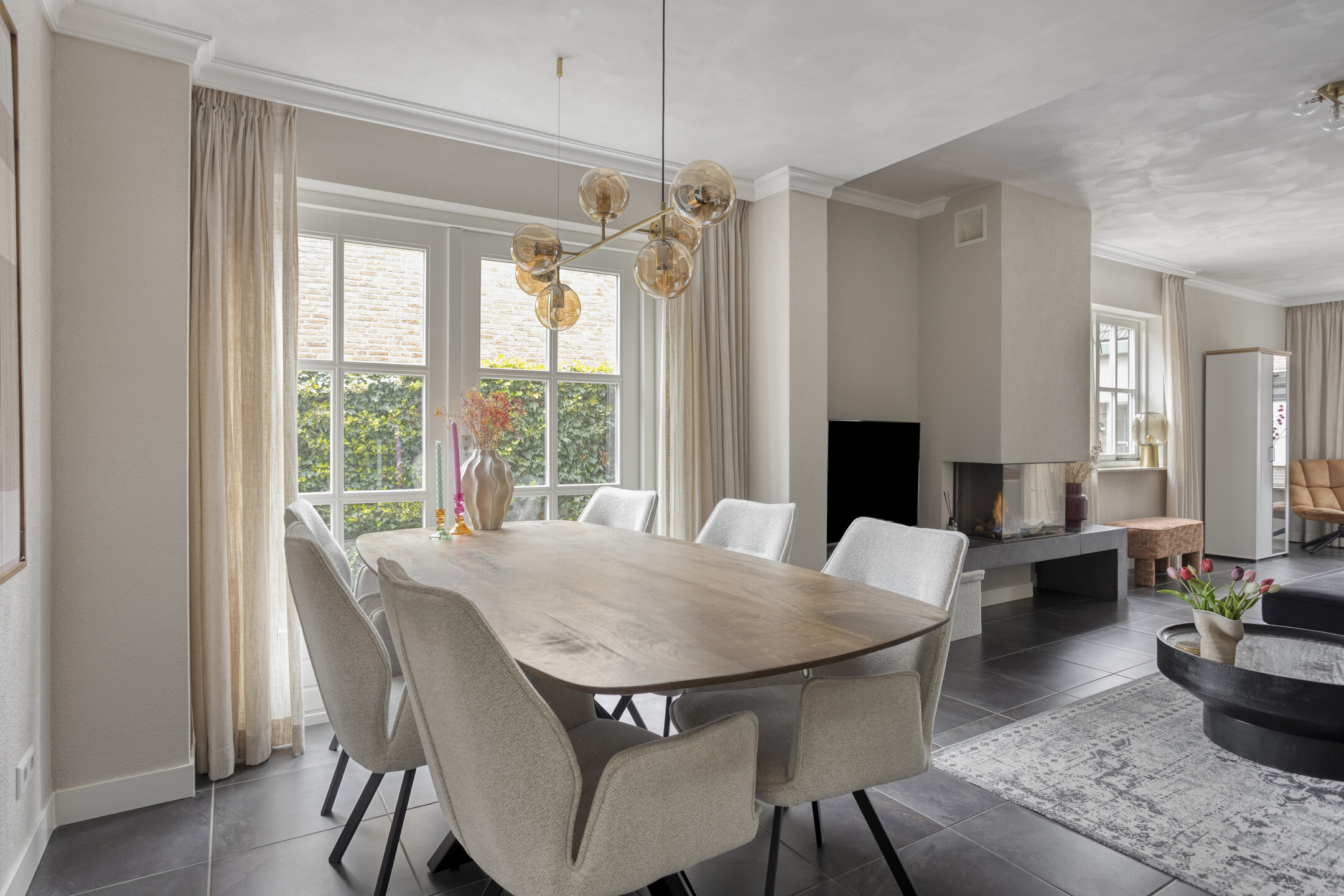 Via de entree komt u in de hal met meterkast en toegang tot de woonkamer. De woonkamer is sfeervol ingericht en beschikt over een gashaard die zorgt voor een warm en gezellig middelpunt. De begane grond is voorzien van vloerverwarming, wat zorgt voor extra comfort.
