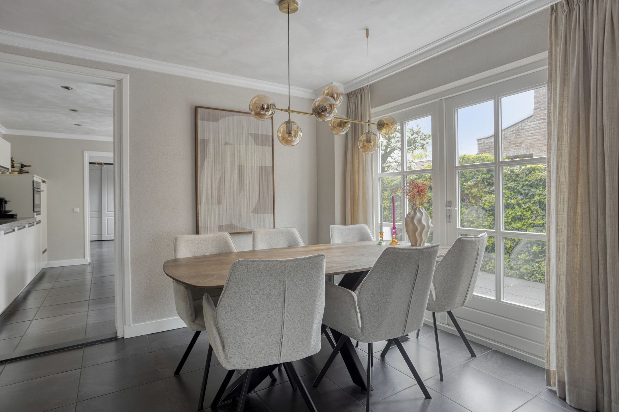 – Keuken met openslaande deuren naar de tuin;