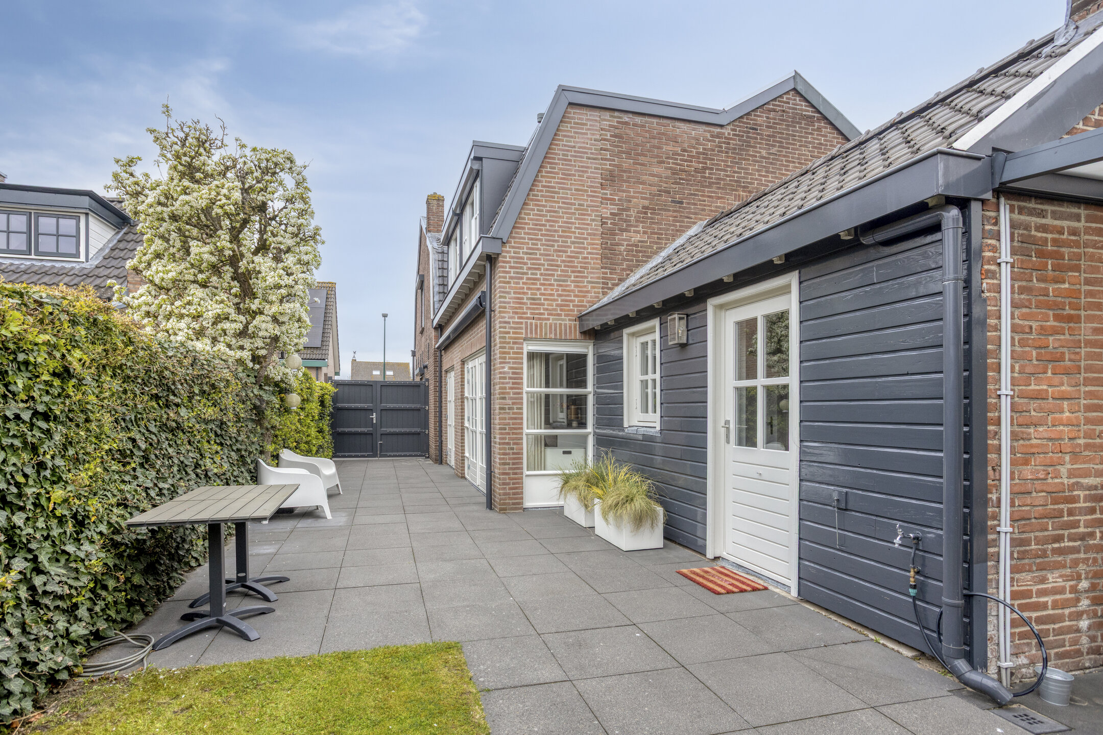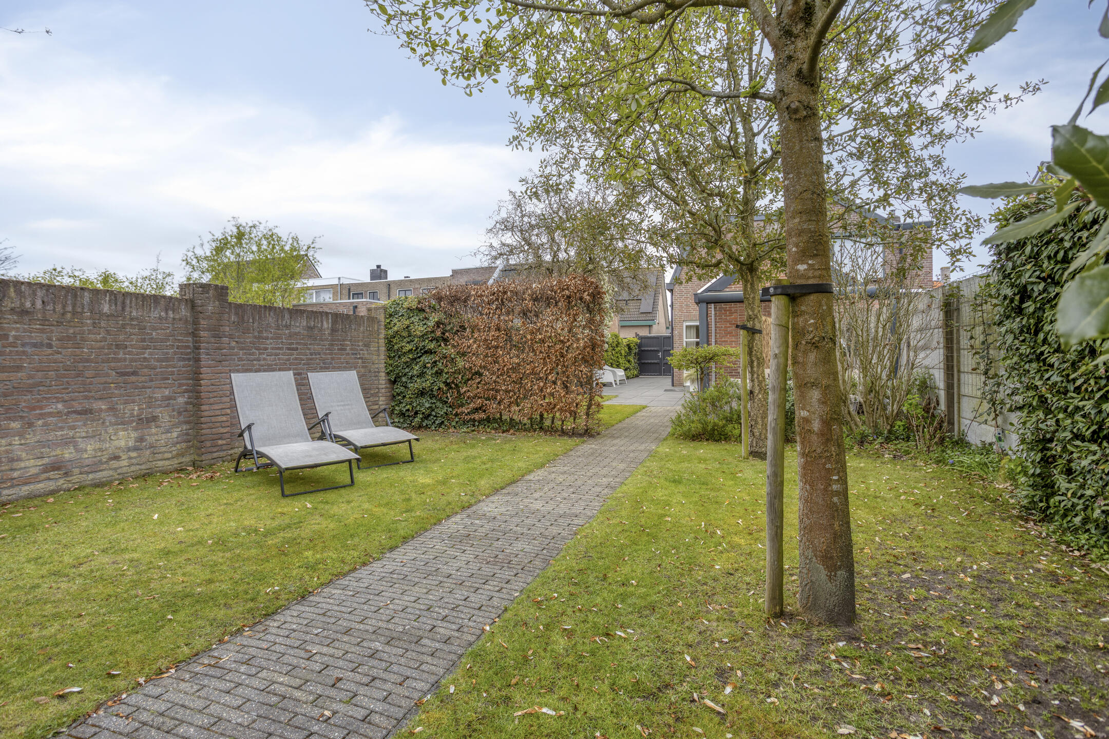 De tuin is bereikbaar via een achterom en beschikt over een eigen oprit met voorbereiding voor een laadpaal.