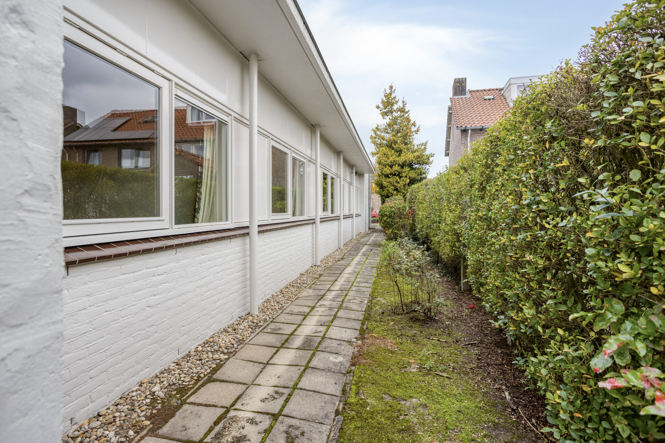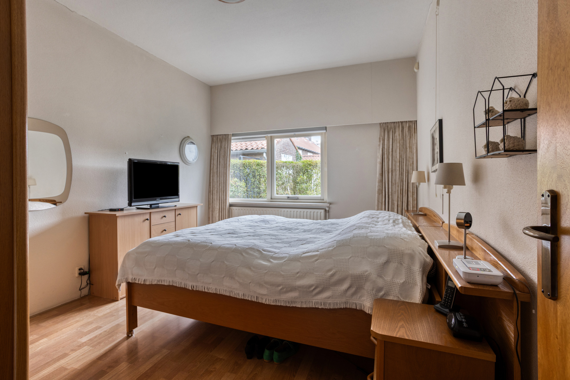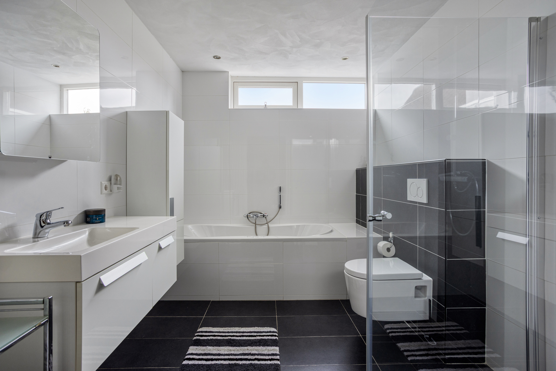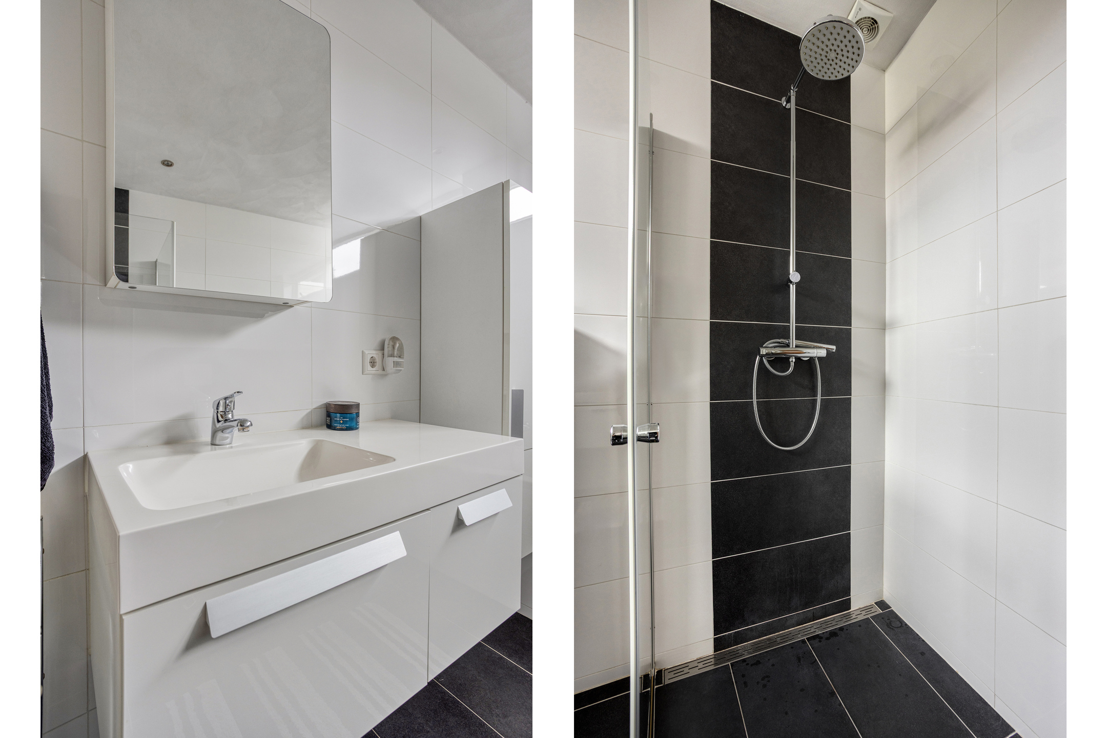 De hal geeft toegang tot de maar liefst 4 royale lichte slaapkamers, de moderne badkamer, de praktische bijkeuken met was voorzieningen en een berging. De moderne badkamer is uitgerust met een inloopdouche, ligbad, wastafel en tweede toilet. Alles is gelijkvloers, wat het wooncomfort aanzienlijk vergroot. Aan het einde van de hal geeft een deur toegang tot het terras achter de woning. Vanuit de berging heeft u toegang tot de inpandige garage, ideaal voor het stallen van de auto, fietsen of als hobbyruimte. In de berging bevindt zich de toegang naar de ruimte waar de CV-ketel is geplaatst.