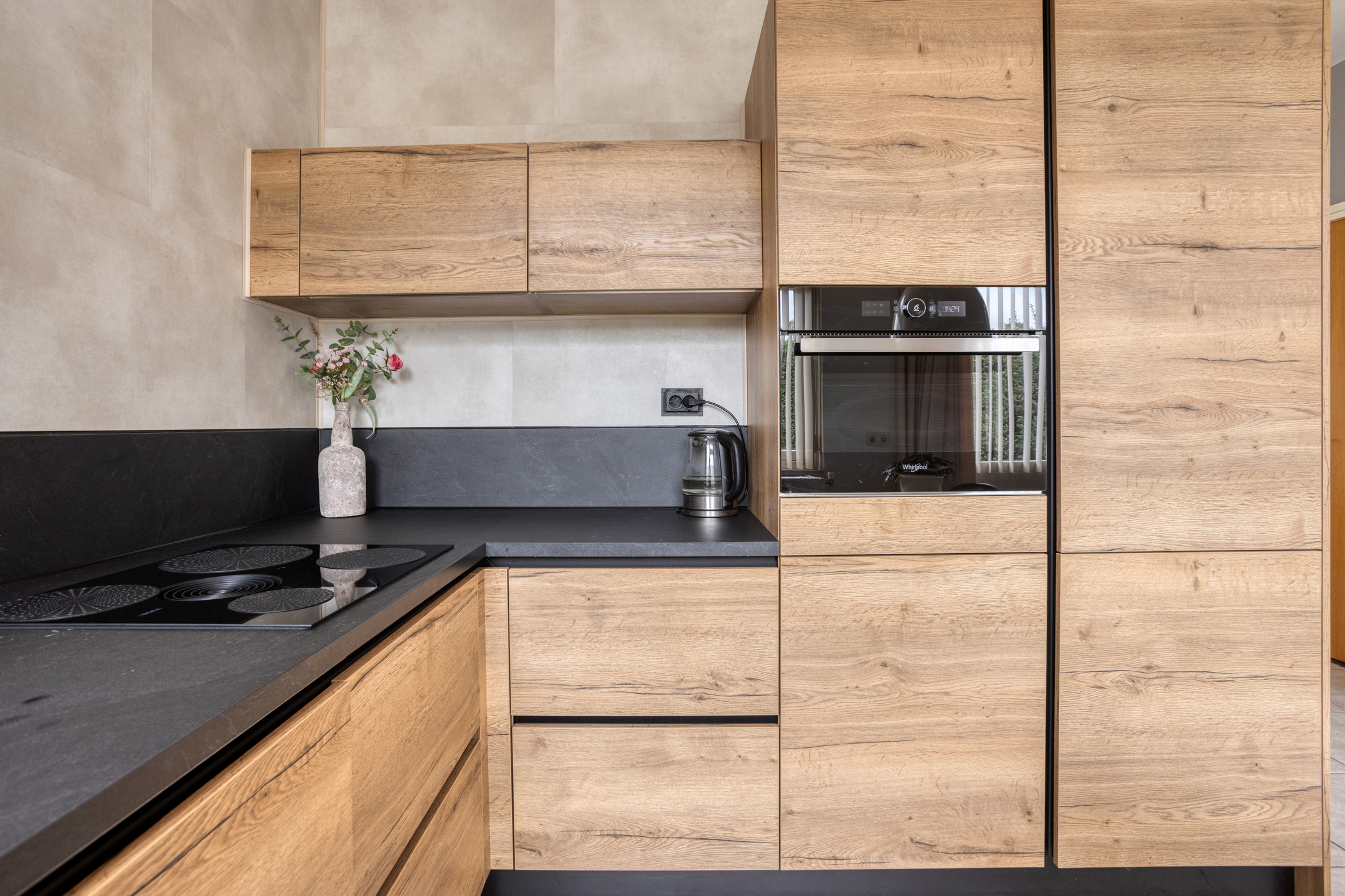 De entree met garderobe en toilet geeft toegang tot de woonkamer. Een ruime en lichte woonkamer, waar grote raampartijen zorgen voor veel daglicht en een mooi uitzicht op de tuin. De woonkamer staat in verbinding met de keuken, die is voorzien van een moderne keukeninrichting en diverse inbouwapparaten (keuken volledig vernieuwd in 2024).
