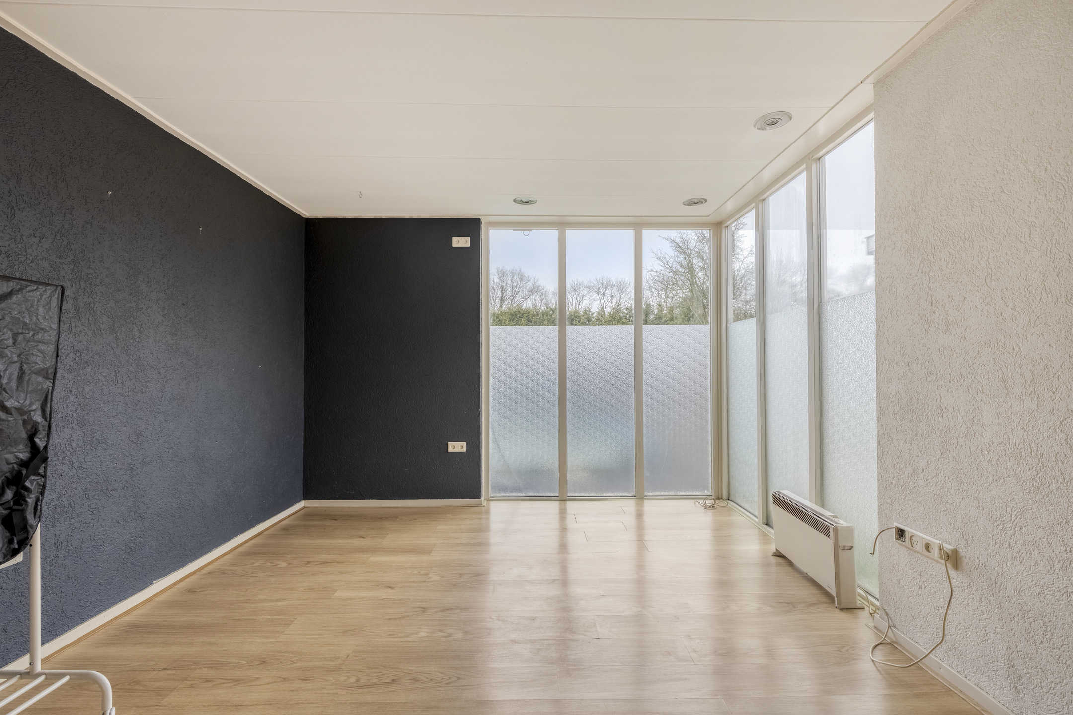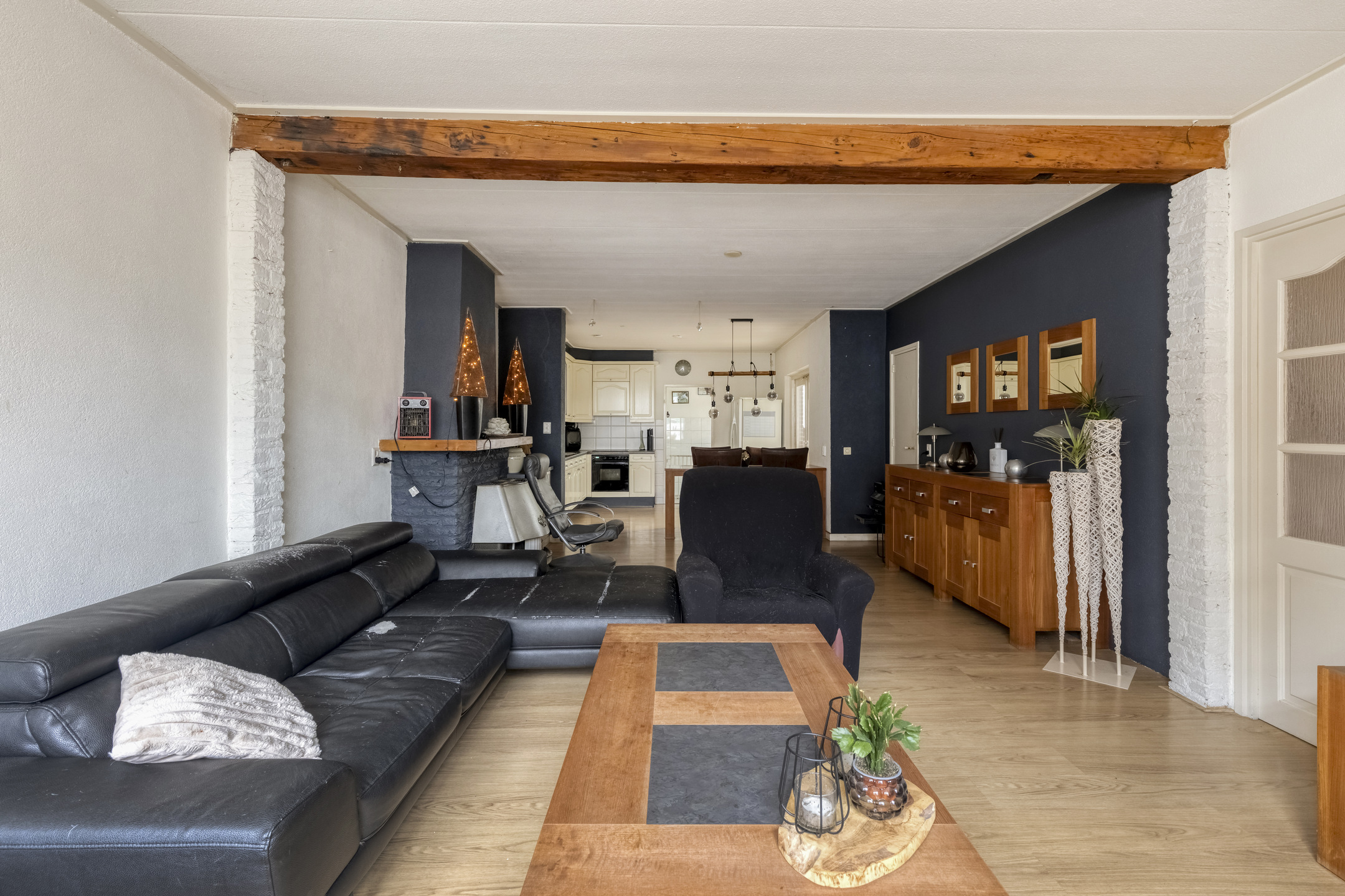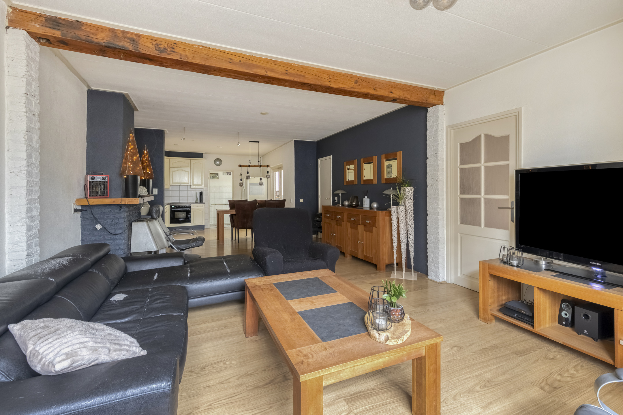 Via de entree bereikt u de woonkamer, waar de gashaard zorgt voor een sfeervol middelpunt. Daarnaast is er een praktische trapkast aanwezig voor extra opbergruimte.