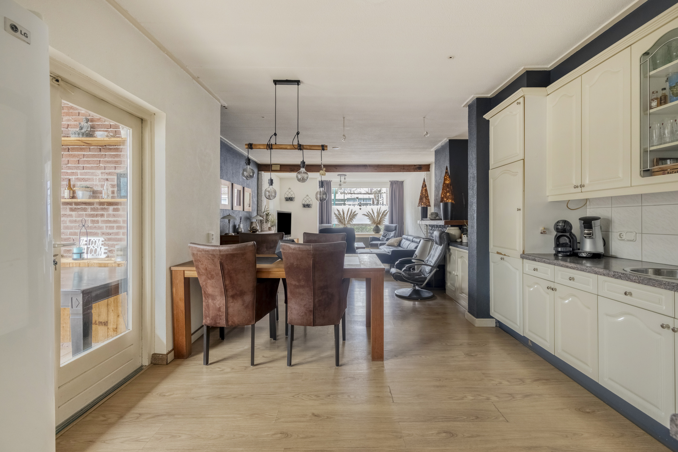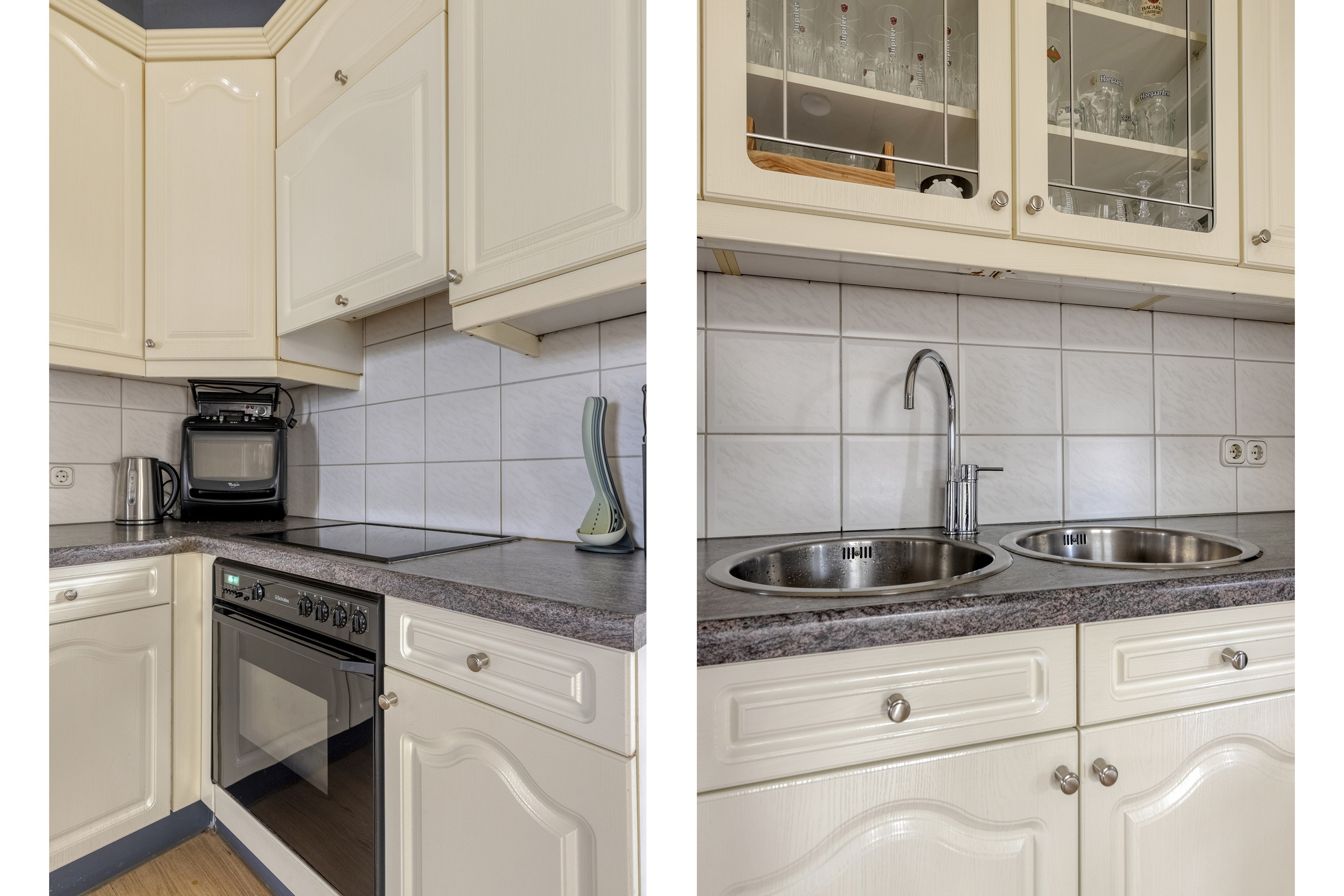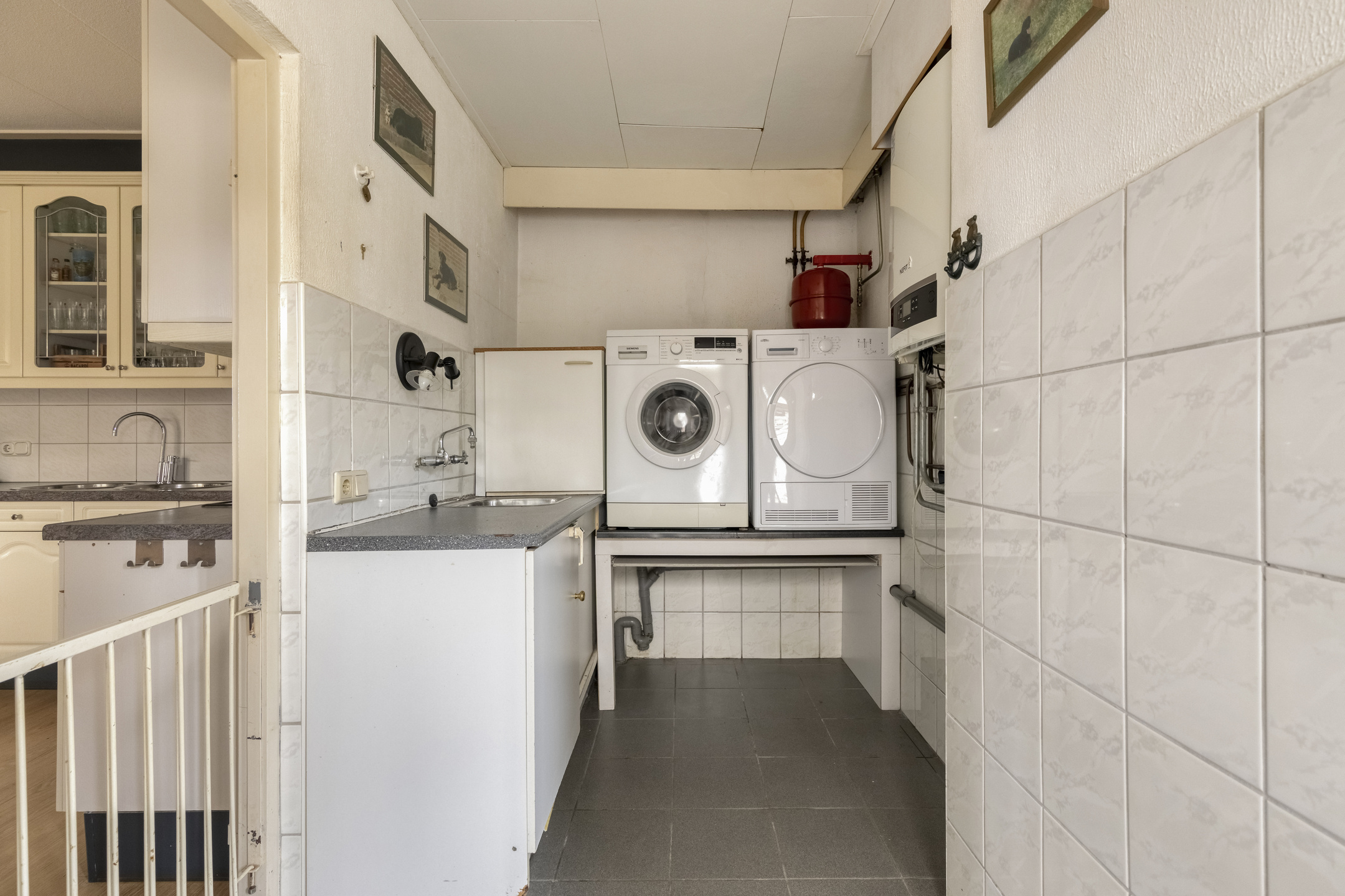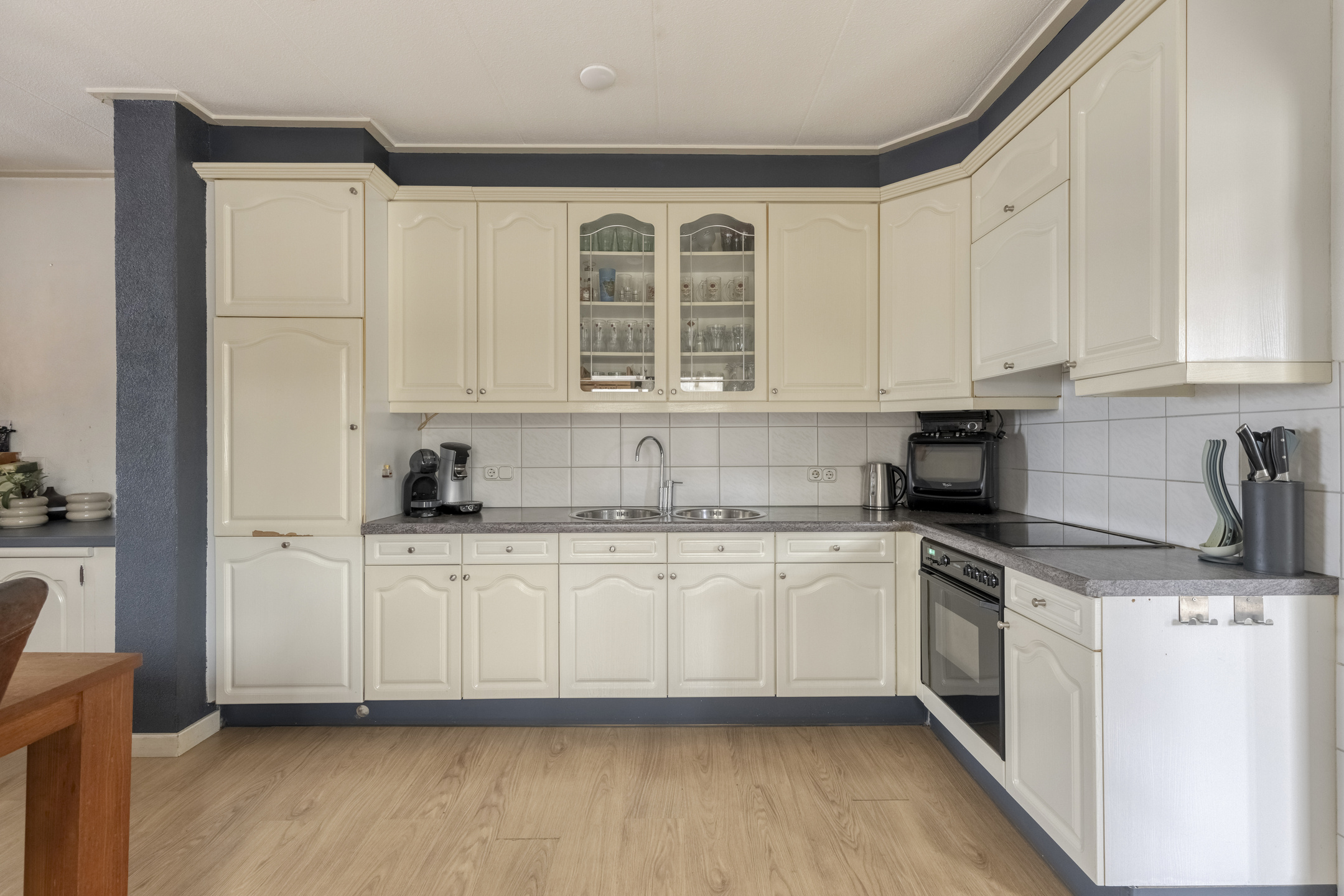De keuken is voorzien van een koel-vriescombinatie, inductieplaat en oven en biedt directe toegang tot de bijkeuken. In de bijkeuken bevinden zich de aansluitingen voor wasmachine en droger, evenals de Nefit cv-ketel uit 2014 en een toiletruimte.