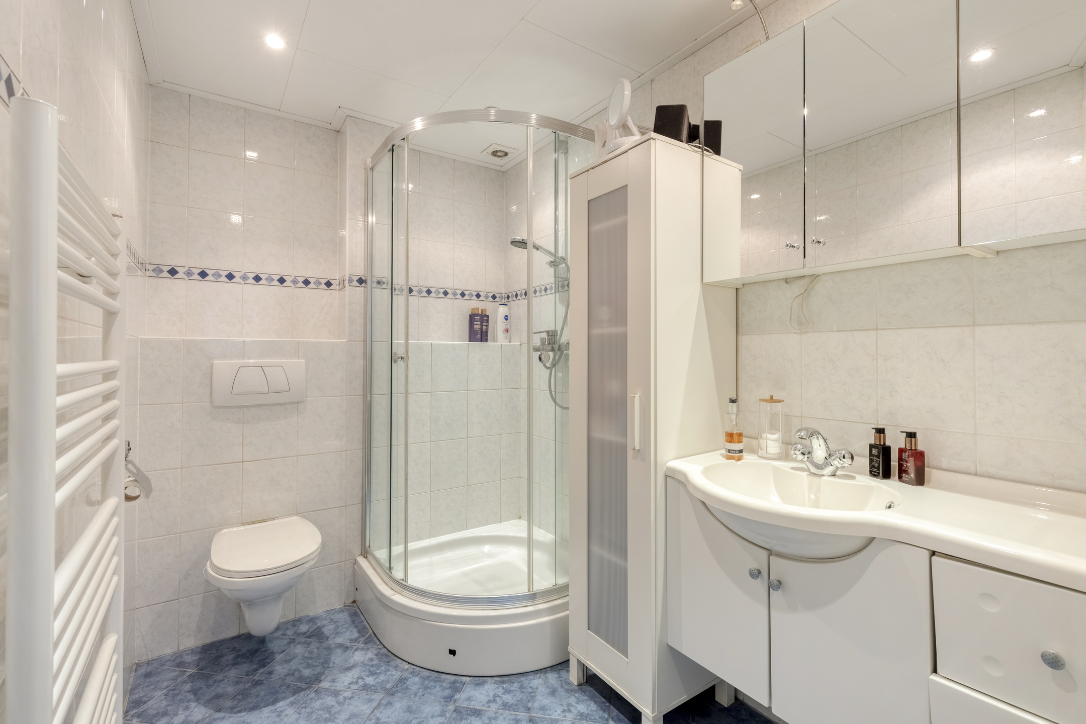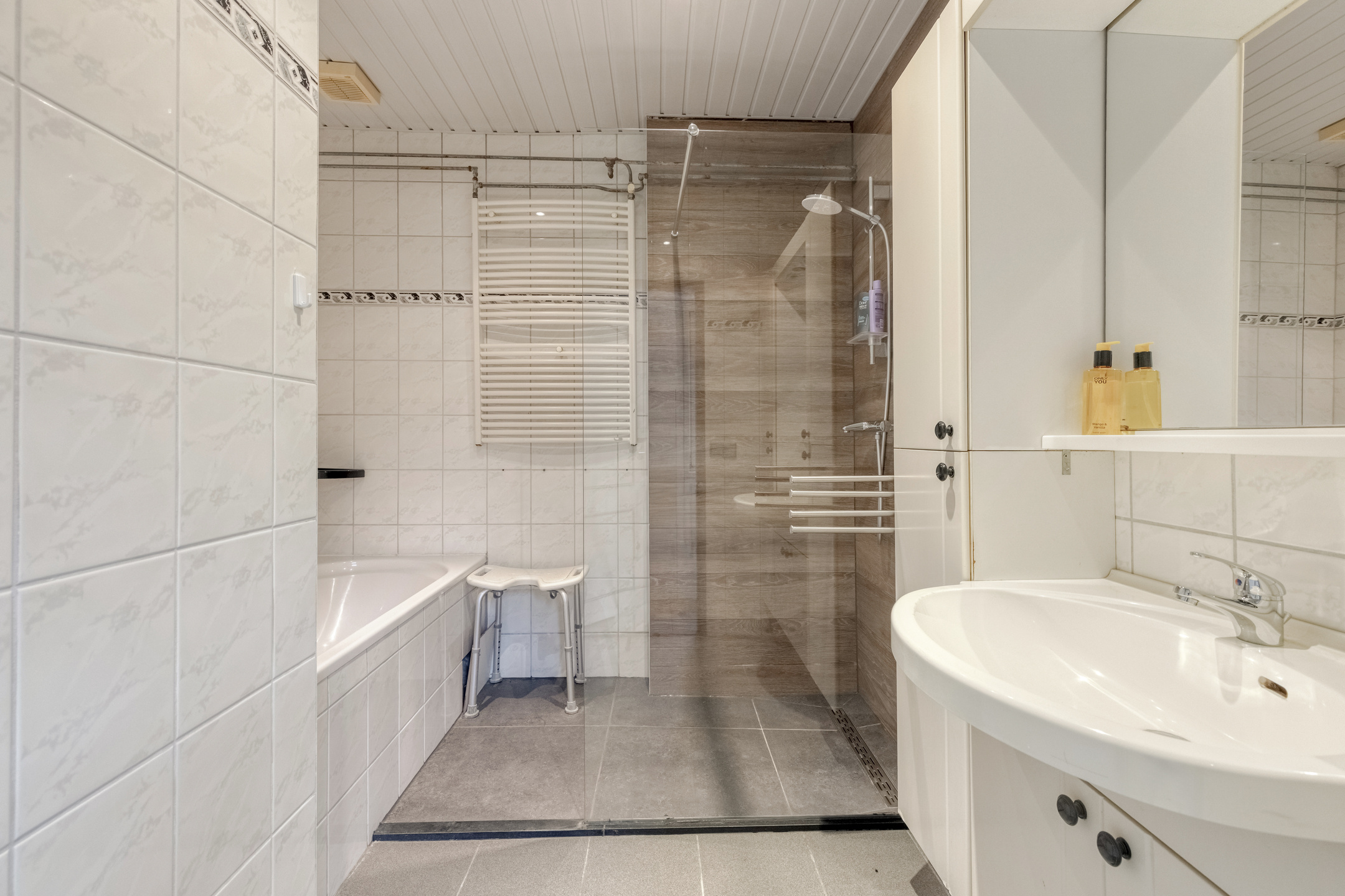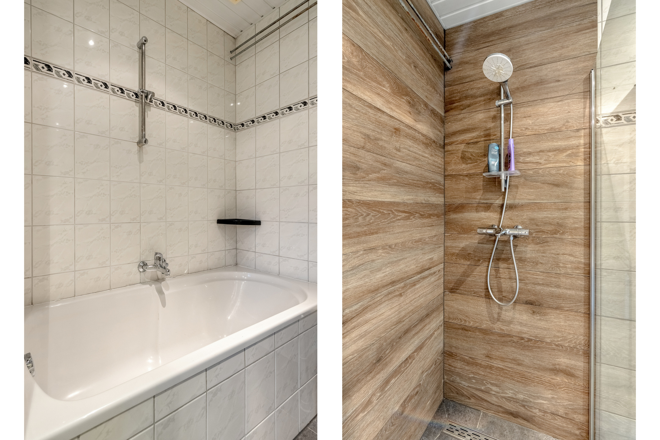 De badkamer op deze verdieping is uitgerust met een douche, toilet en wastafel. Ook zijn er knieschotten aanwezig voor praktische bergruimte. Via twee vlizotrappen zijn de bergzolders bereikbaar, ideaal voor het opslaan van seizoensspullen.