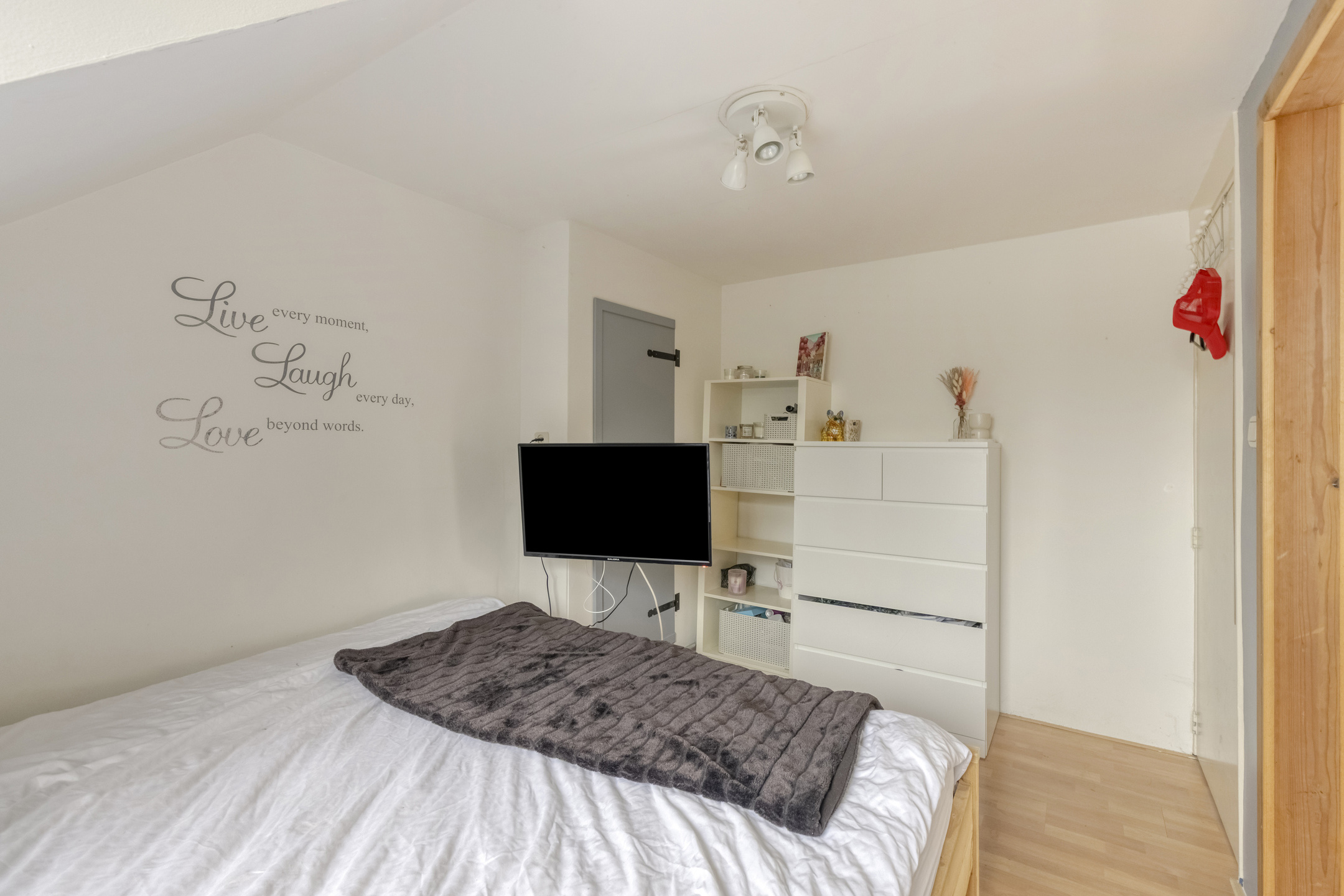 Op de eerste verdieping bevinden zich meerdere slaapkamers. De slaapkamer aan de achterzijde biedt uitzicht op de tuin. Daarnaast zijn er nog twee slaapkamers aanwezig, met de mogelijkheid om een vierde slaapkamer te realiseren.