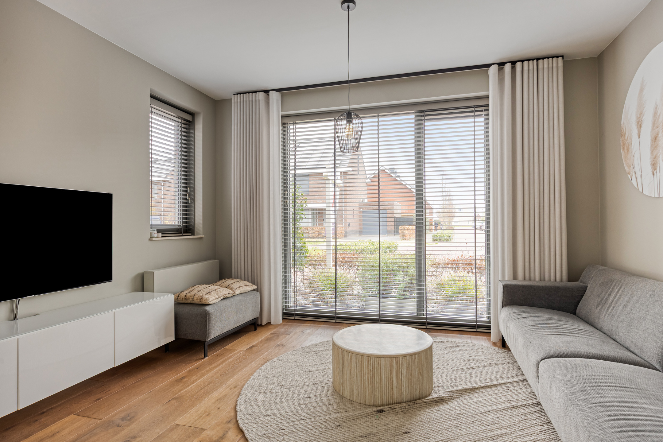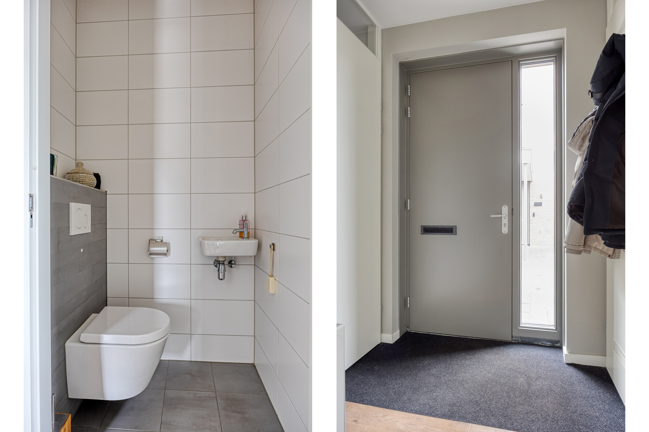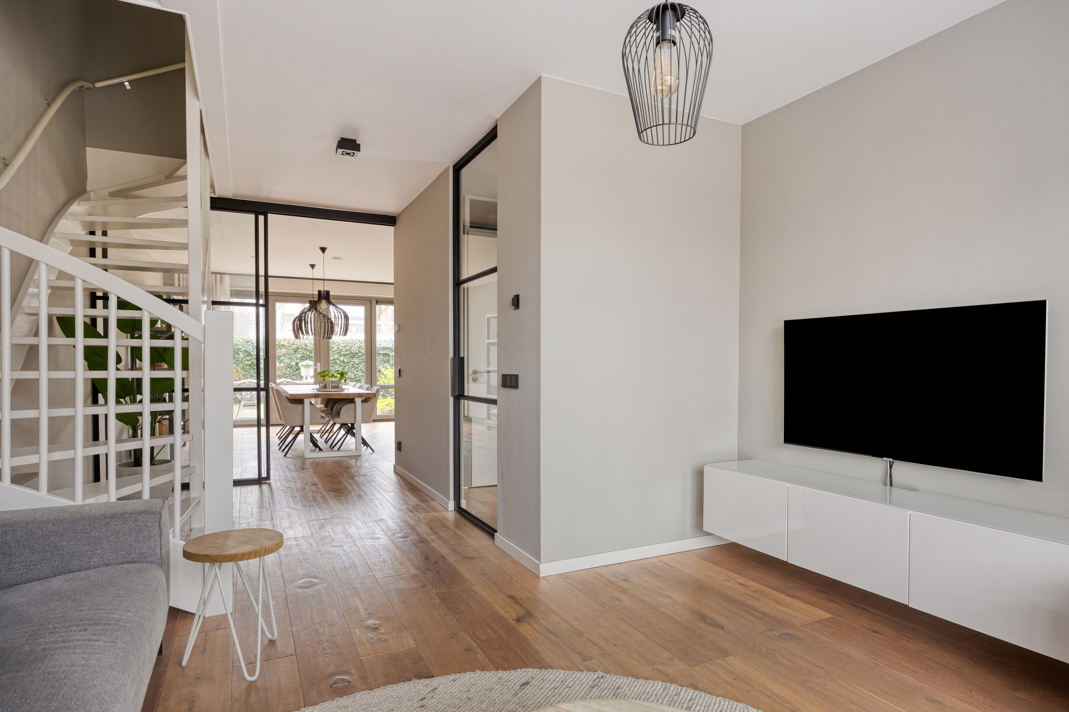 Via de entree komt u in de hal met meterkast en een nette toiletruimte. Vanuit hier betreedt u de woonkamer aan de voorzijde van de woning. De grote raampartijen zorgen voor een prachtige lichtinval en geven de ruimte een open en uitnodigend karakter.