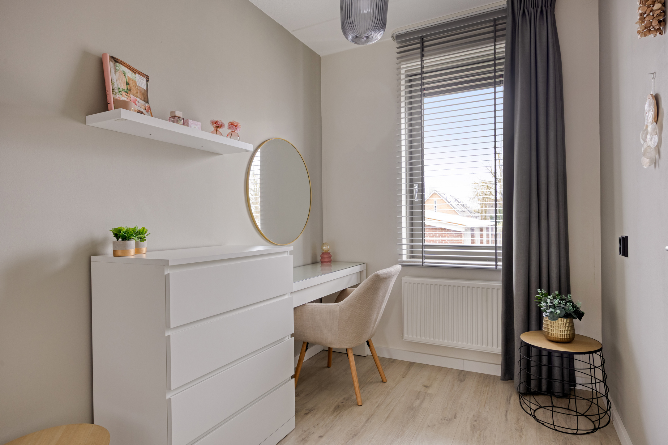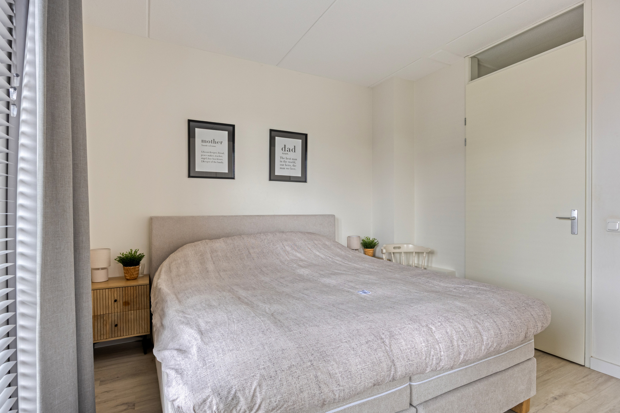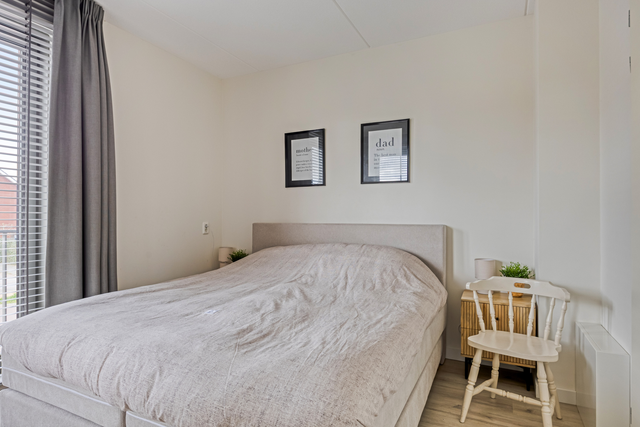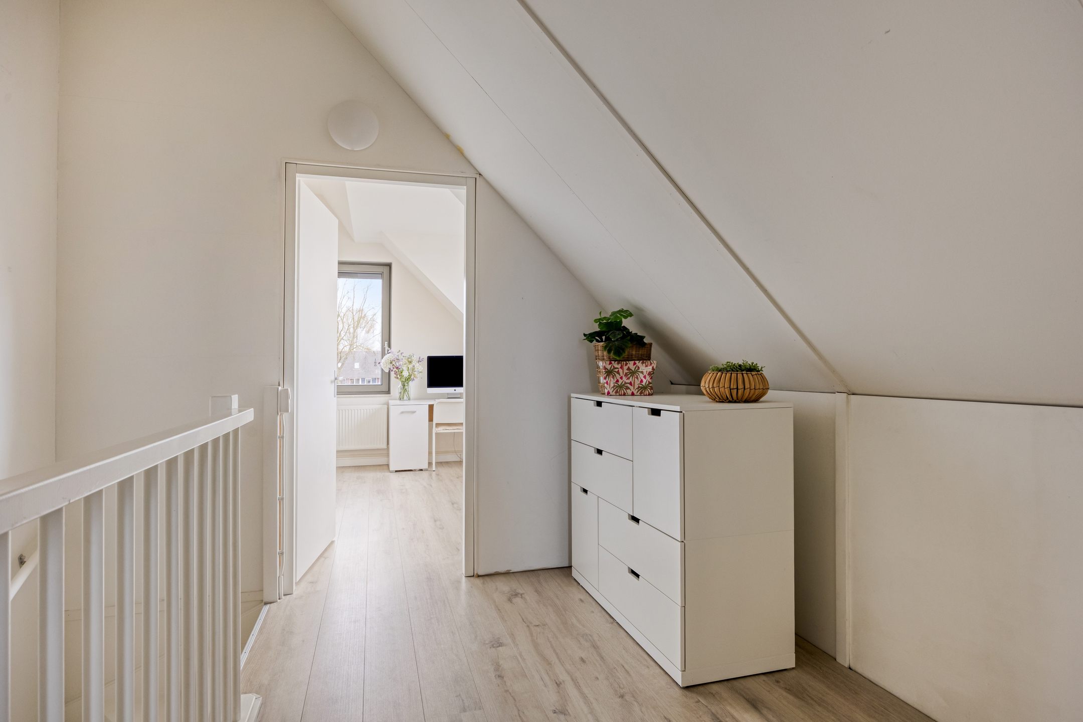 De tweede verdieping biedt een ruime slaapkamer aan de achterzijde, voorzien van een dakkapel die zorgt voor veel natuurlijk licht. Daarnaast is er een aparte wasruimte aan de voorzijde met aansluitingen voor de wasmachine en droger en de opstelplaats van de cv-ketel.
