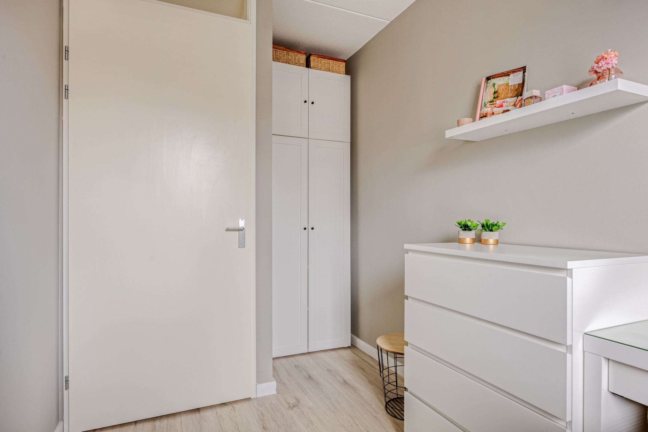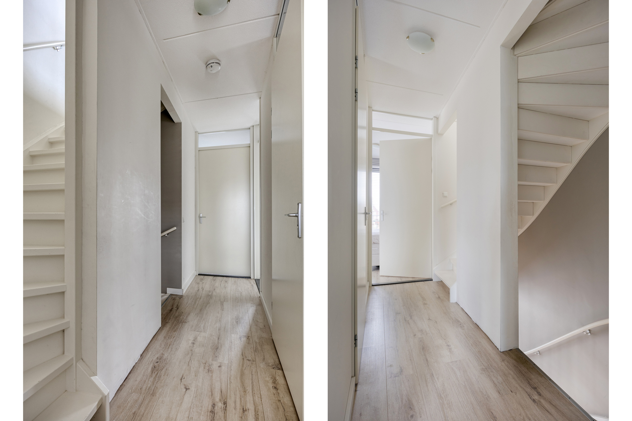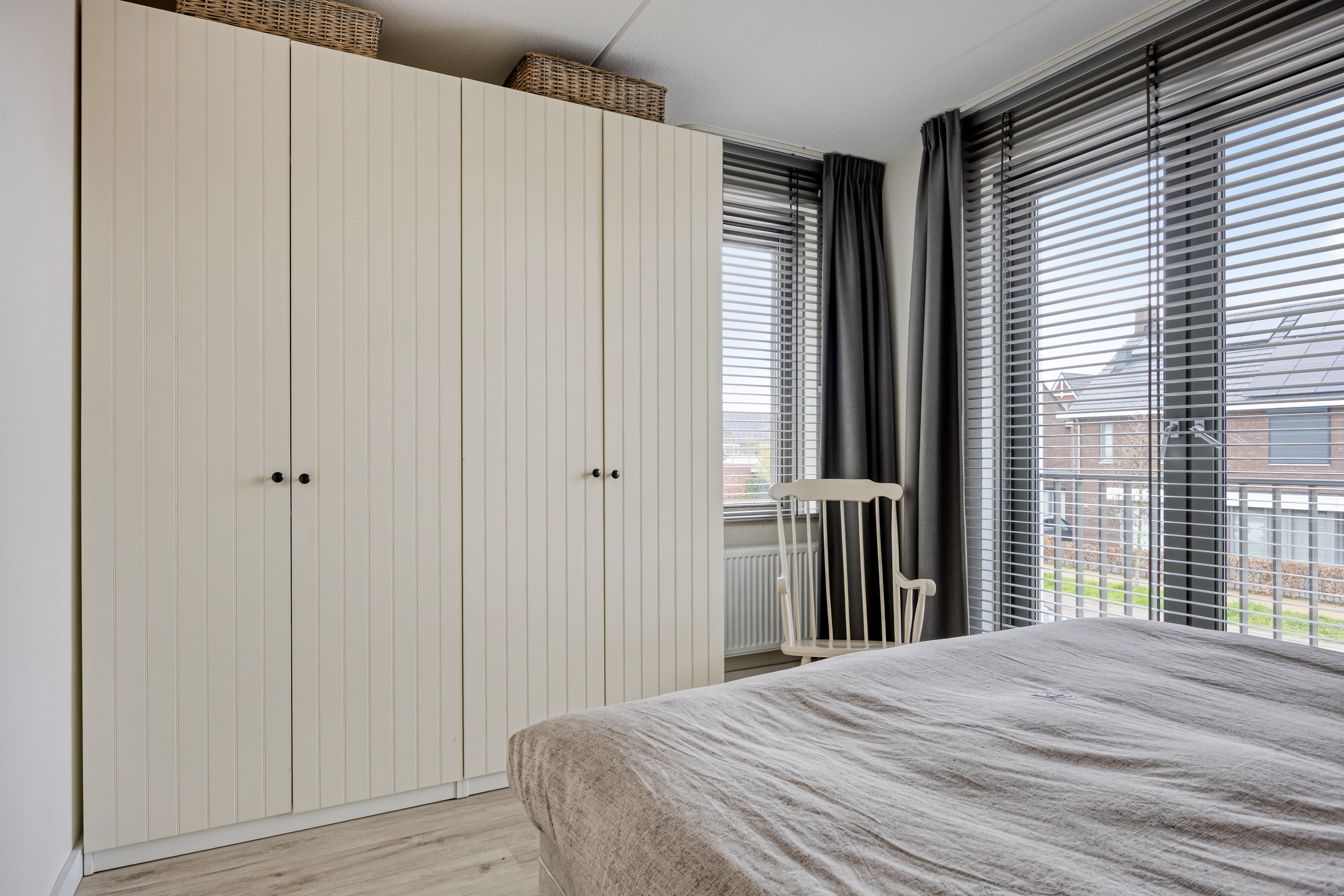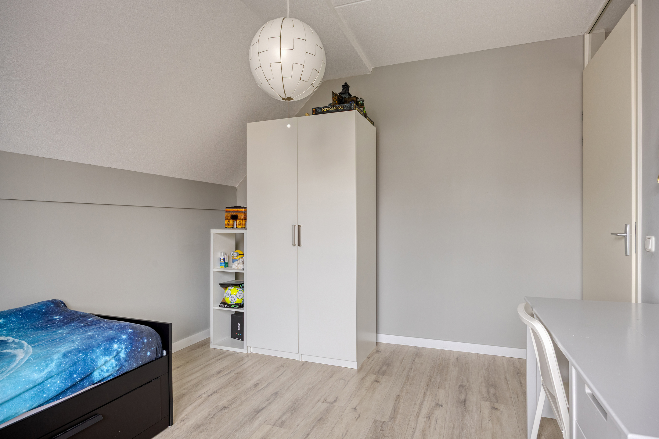 De tweede verdieping biedt een ruime slaapkamer aan de achterzijde, voorzien van een dakkapel die zorgt voor veel natuurlijk licht. Daarnaast is er een aparte wasruimte aan de voorzijde met aansluitingen voor de wasmachine en droger en de opstelplaats van de cv-ketel.