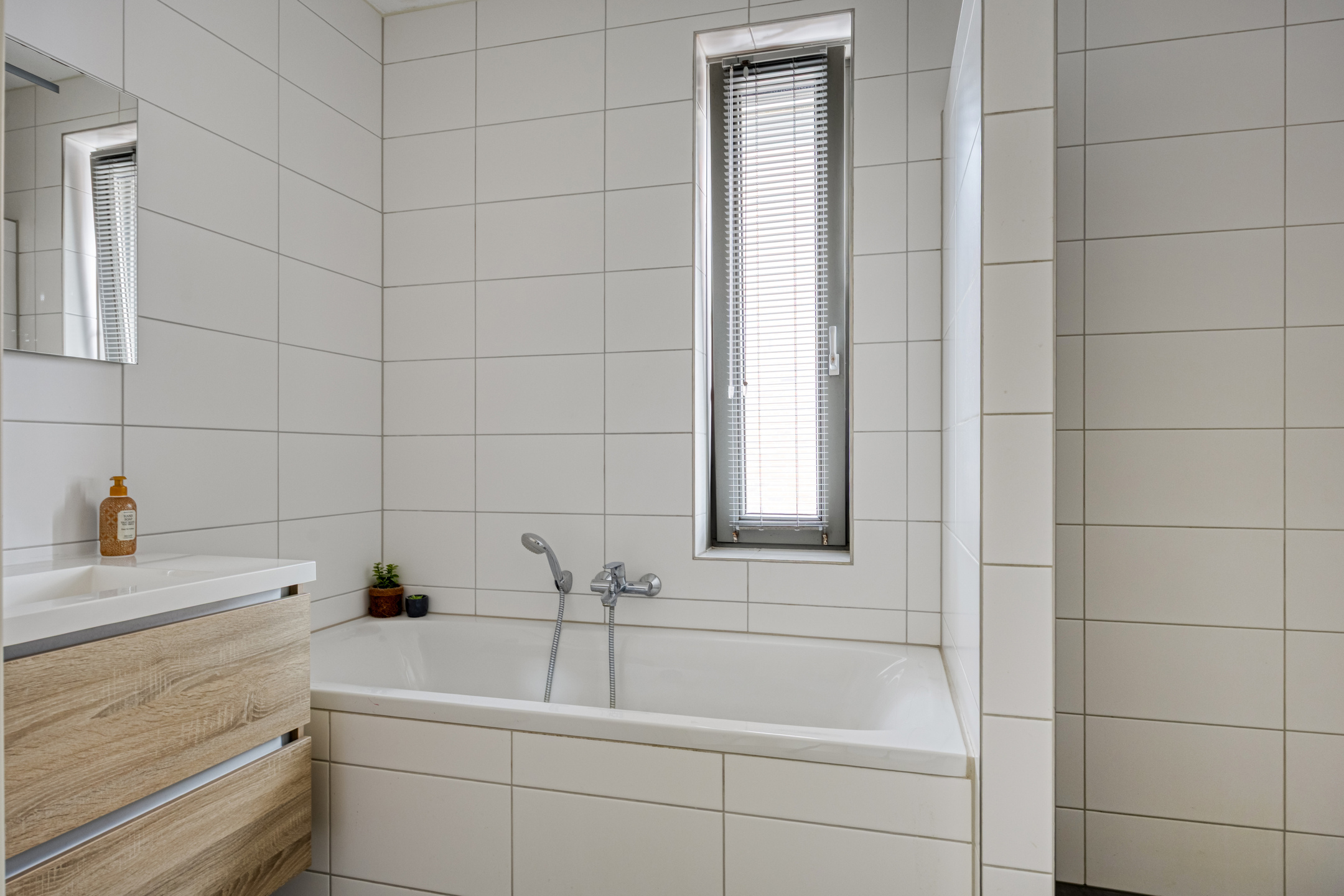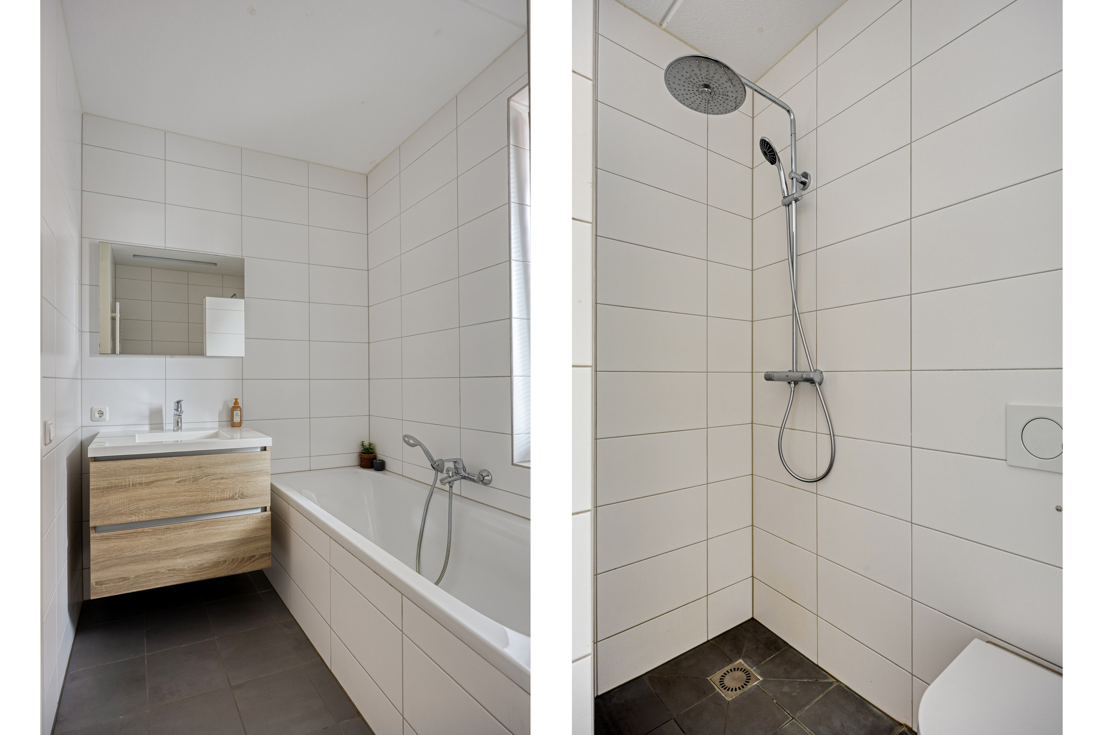 De badkamer is modern en compleet uitgevoerd met een ligbad, inloopdouche, wastafelmeubel en toilet. Daarnaast is er mechanische ventilatie aanwezig.