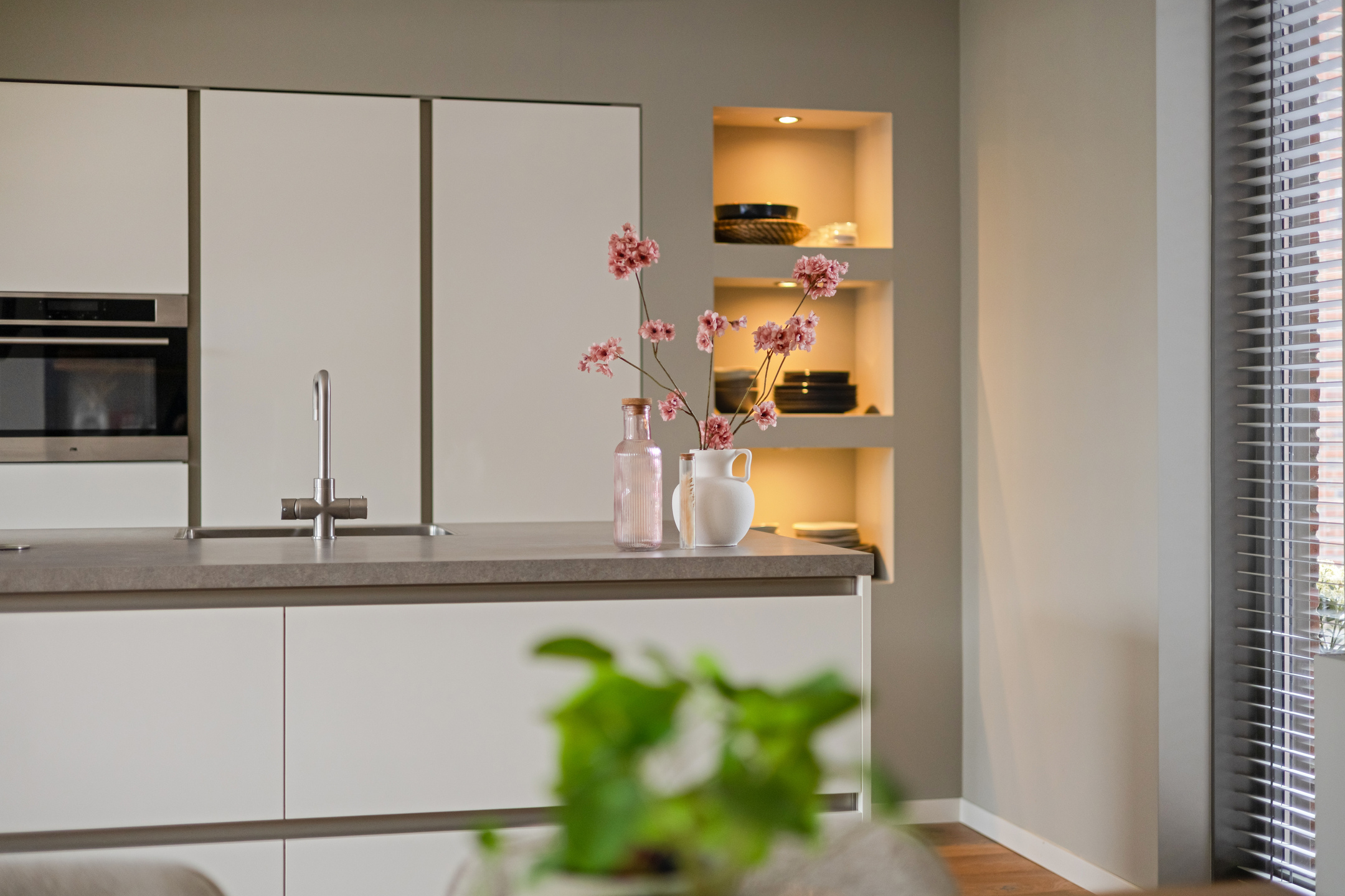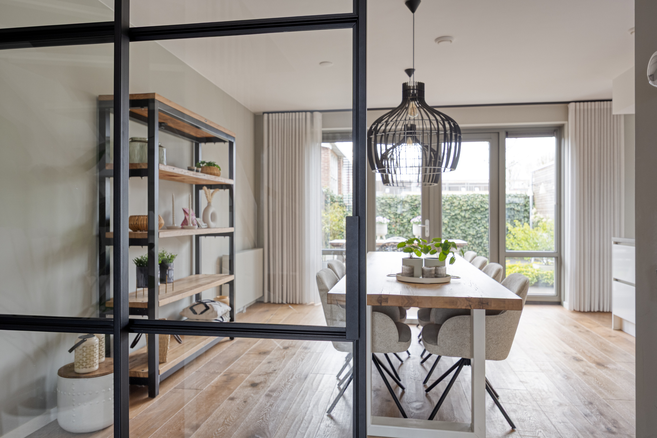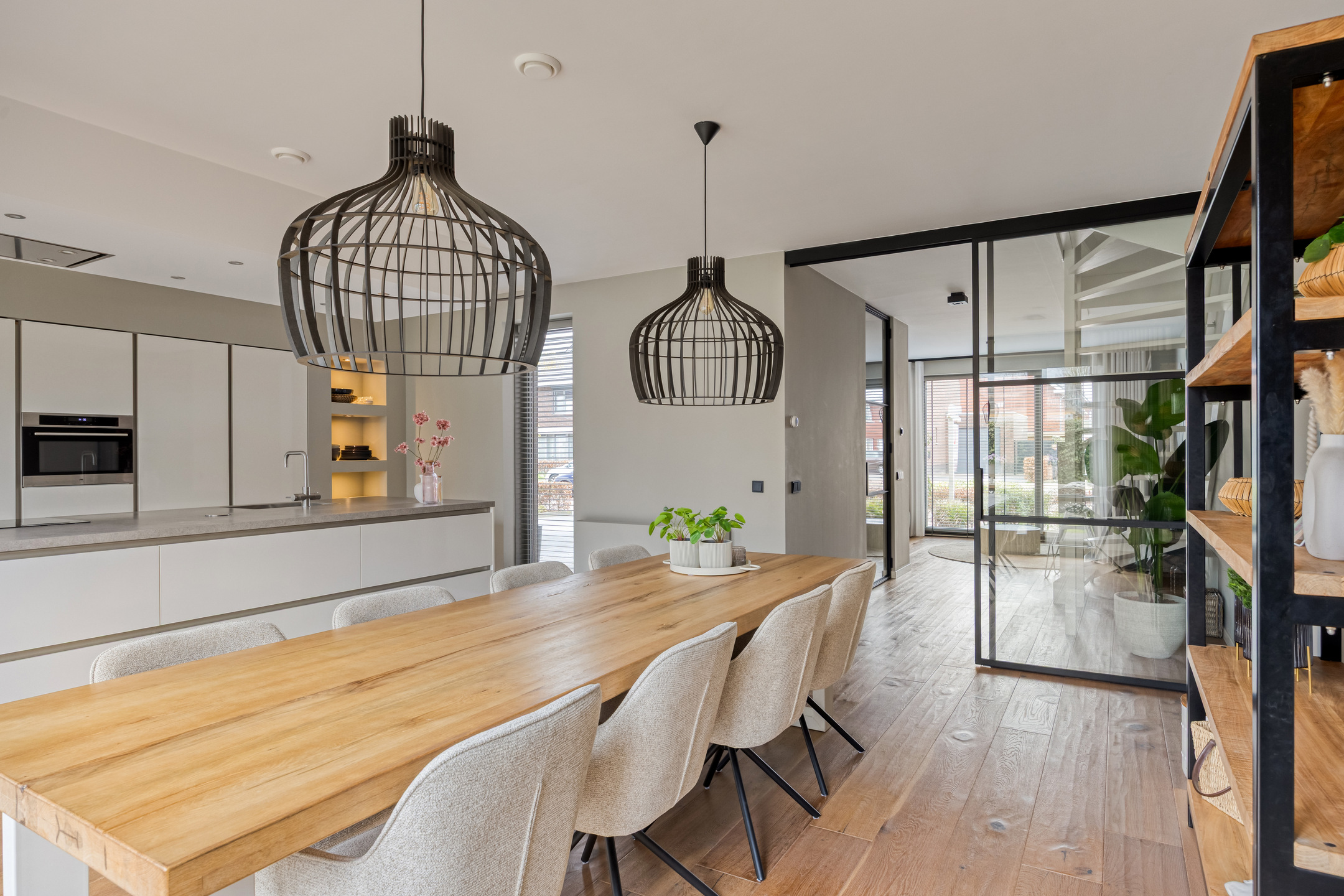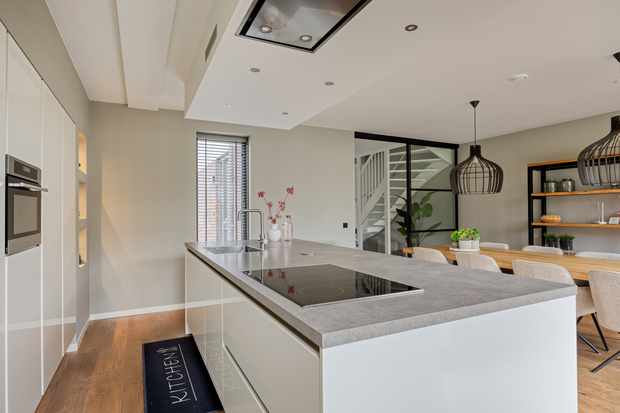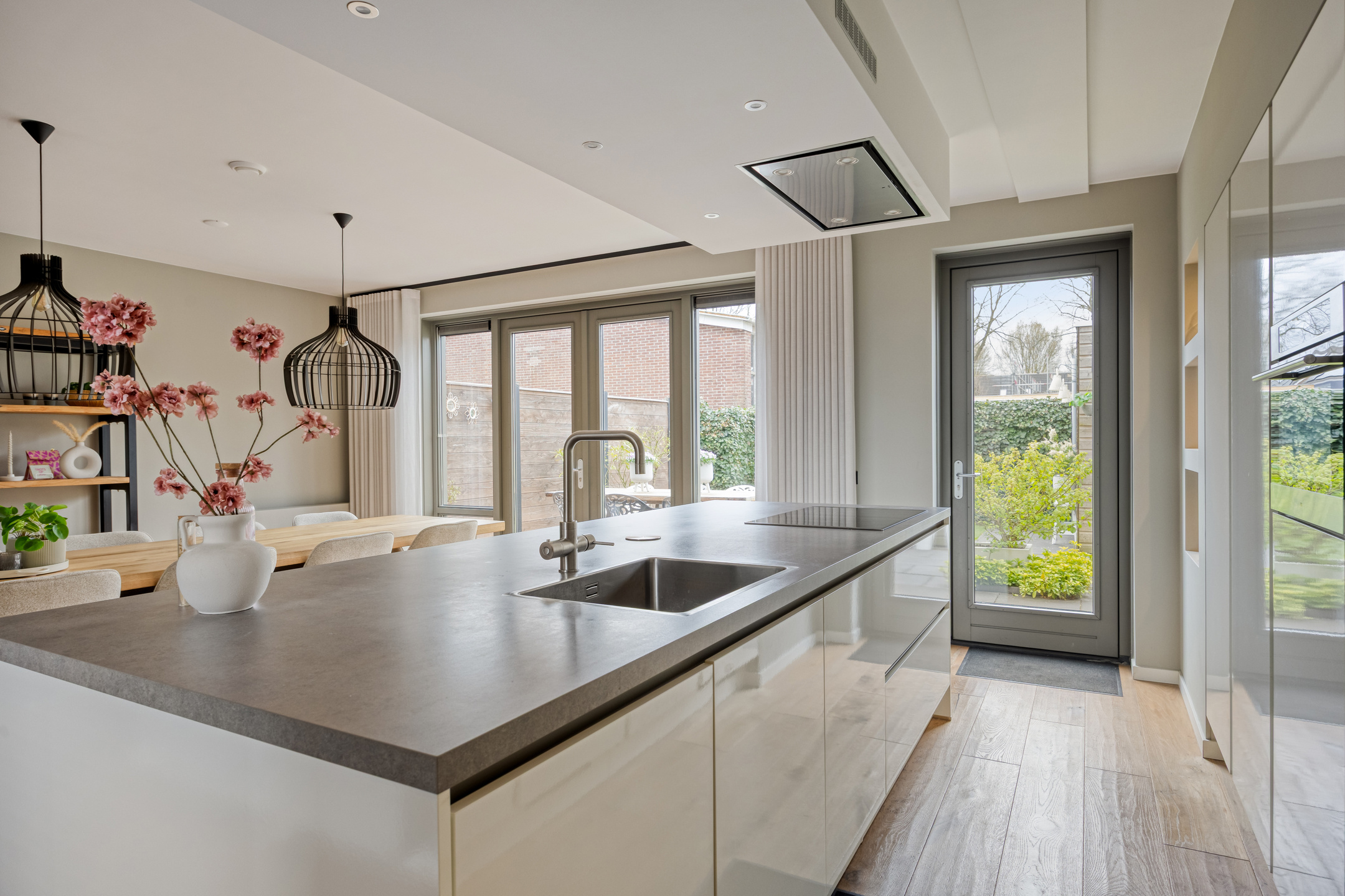 Via stijlvolle stalen deuren loopt u door naar de woonkeuken aan de achterzijde, dé absolute eyecatcher van deze woning. Deze royale en moderne leefkeuken is een heerlijke plek om te koken, eten en samen te zijn. De keuken is voorzien van een inductiekookplaat, vaatwasser, combi-oven, koelkast en vriezer en biedt volop werk- en opbergruimte. De openslaande deuren naar de tuin zorgen voor een naadloze verbinding tussen binnen en buiten.