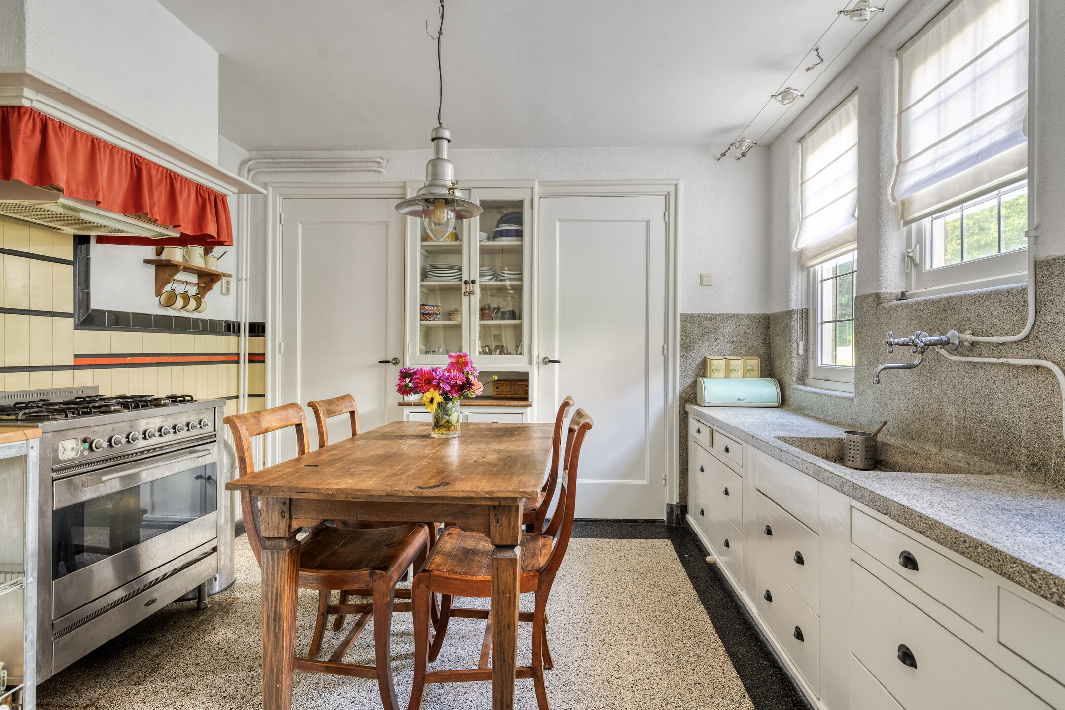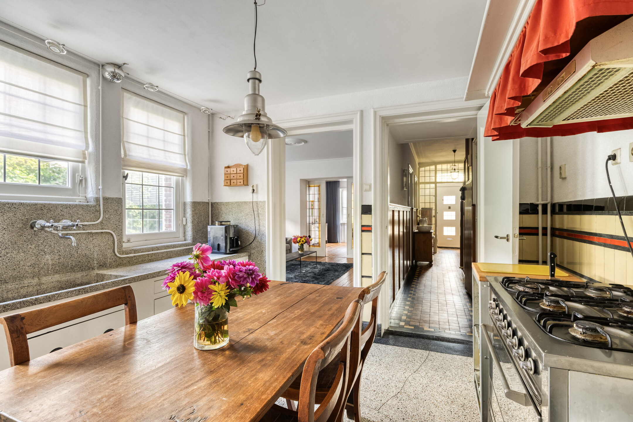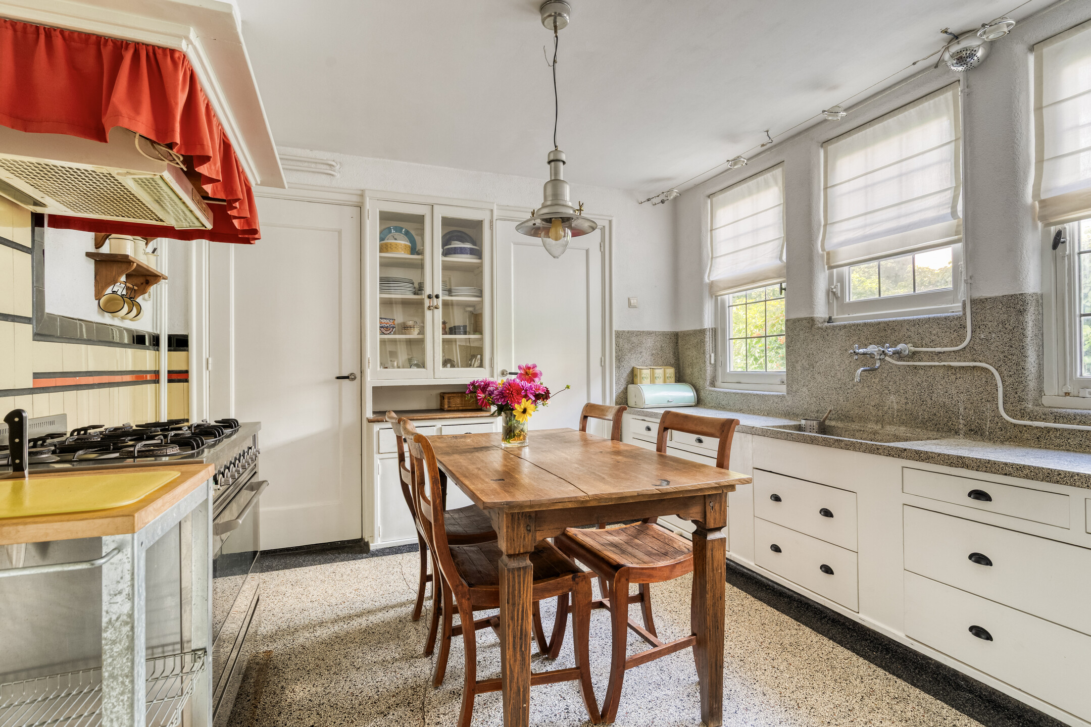 De keuken is een waar pareltje met een granito vloer en originele keukenopstelling, compleet met granito werkblad en achterwand. Vanuit de keuken bereikt u de ruime kelder (3,28 x 2,00 m), die dankzij de koekoek prettig licht en goed geventileerd is.