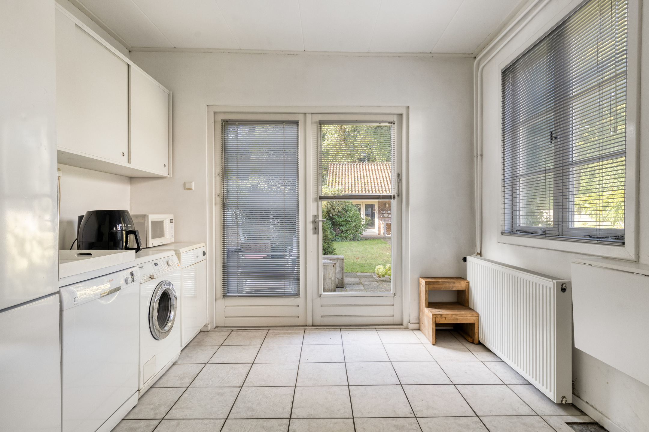 In de bijkeuken/het achterportaal vindt u aansluitingen voor apparatuur, de cv-ketel (Remeha Avanta CW5, 2014) en directe toegang tot de tuin via openslaande deuren.