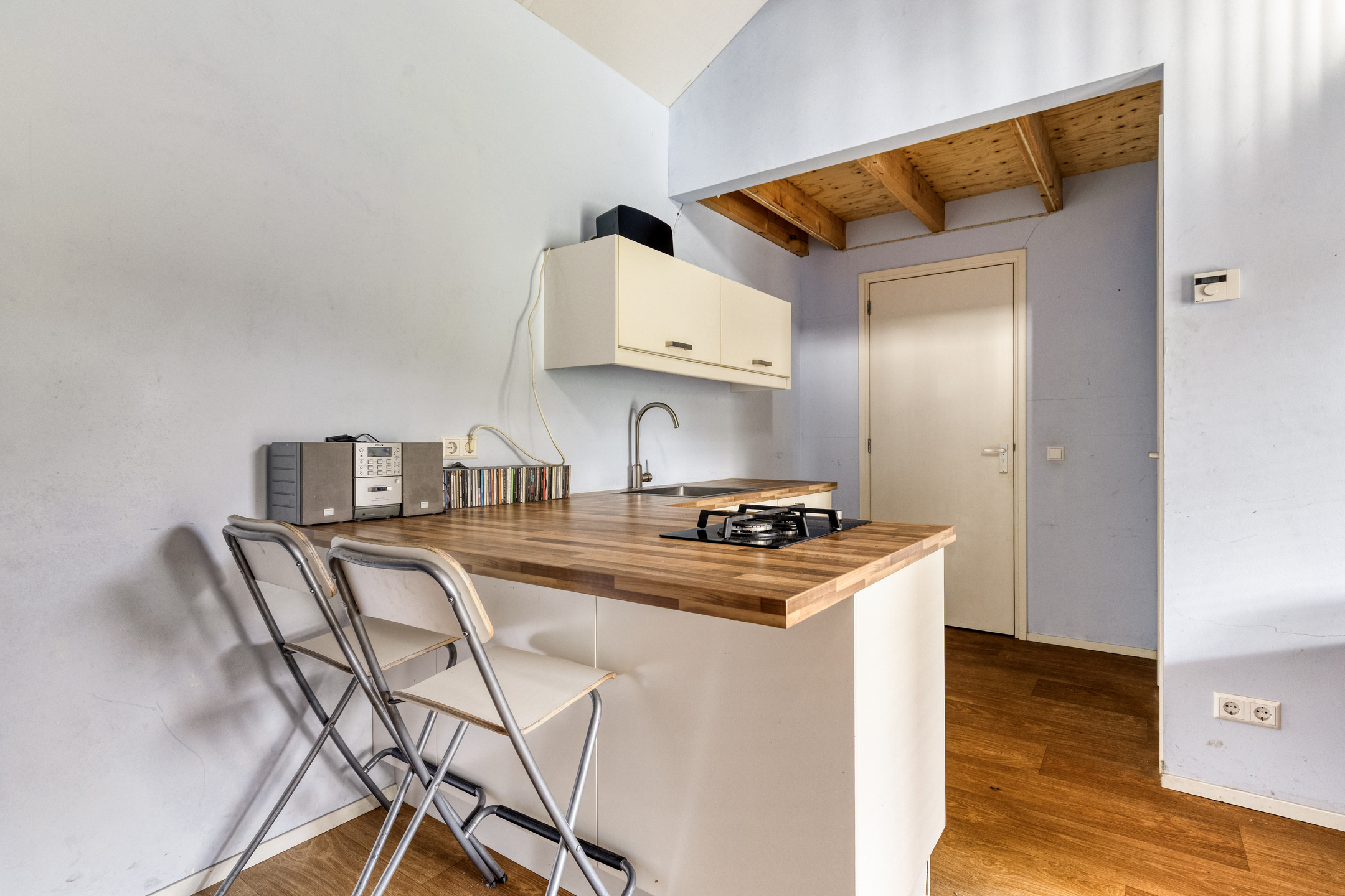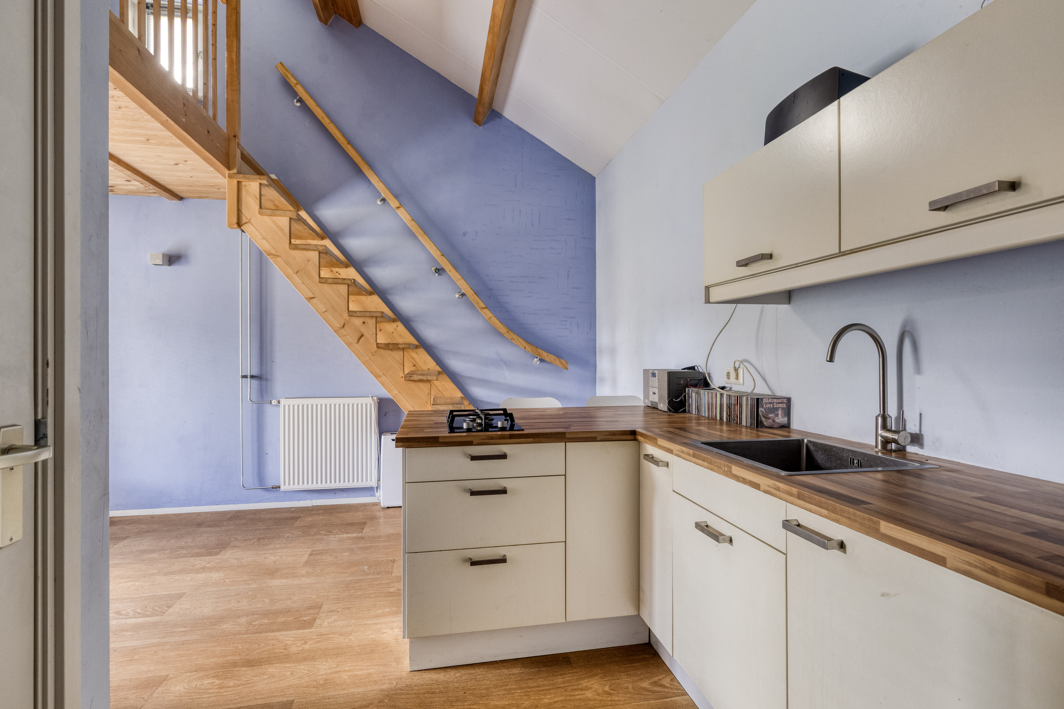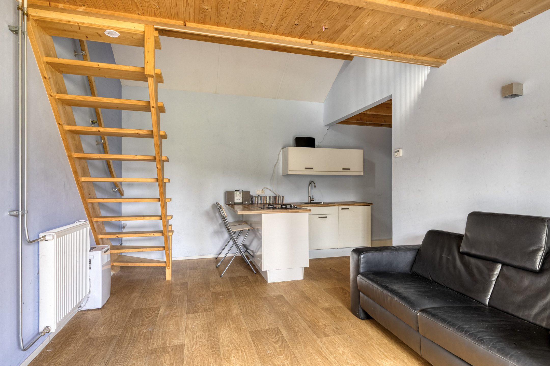Achter in de tuin staat een volledig uitgerust tuinhuis (2011), voorzien van woonkamer met open keuken, badkamer met douche en toilet, en een slaapgedeelte op de verdieping. Dankzij de eigen cv-installatie (Nefit Proline HRC24/cw3, 2013) en elektra is dit een volwaardige woonruimte, ideaal als gastenverblijf, kantoor of atelier.