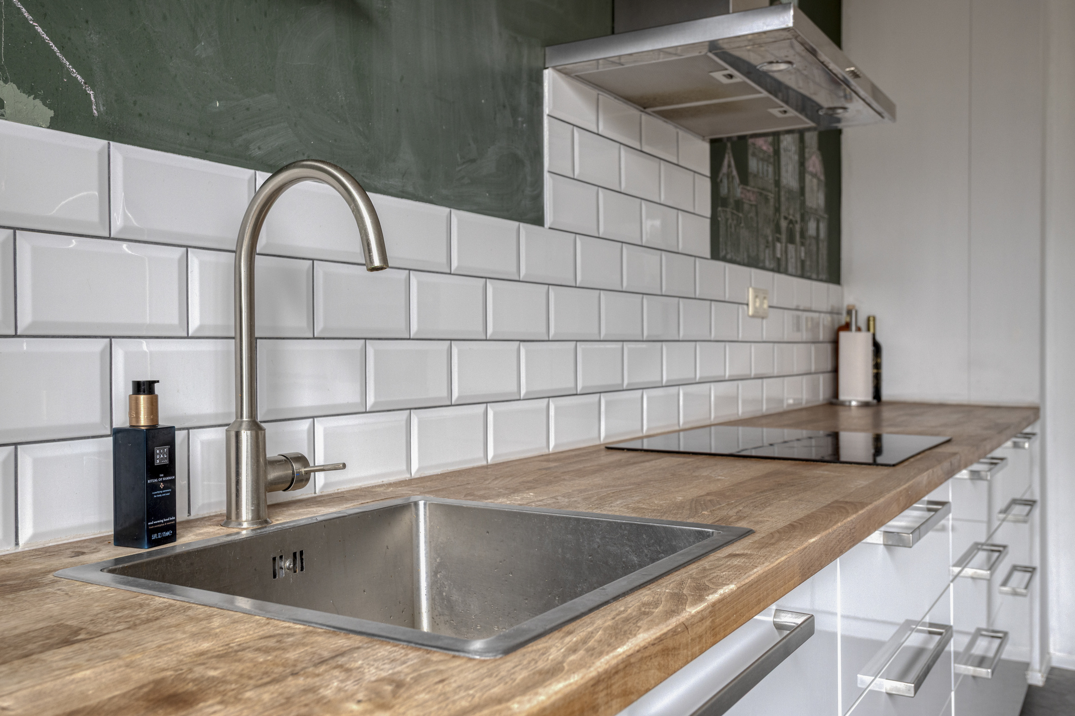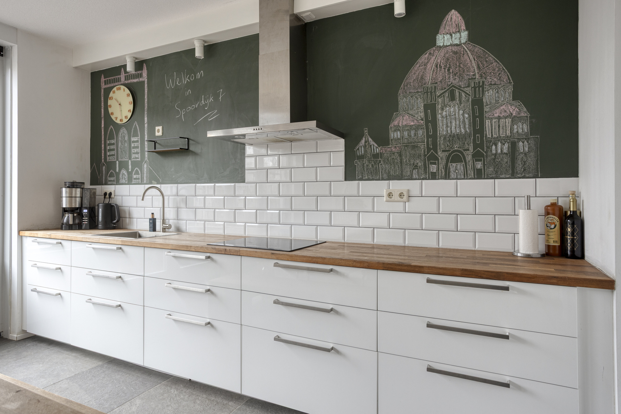 De keuken is uitgerust met een oven, koel-vriescombinatie, inductiekookplaat met afzuigkap en een vaatwasser. Dankzij de praktische opstelling is er voldoende werk- en bergruimte.