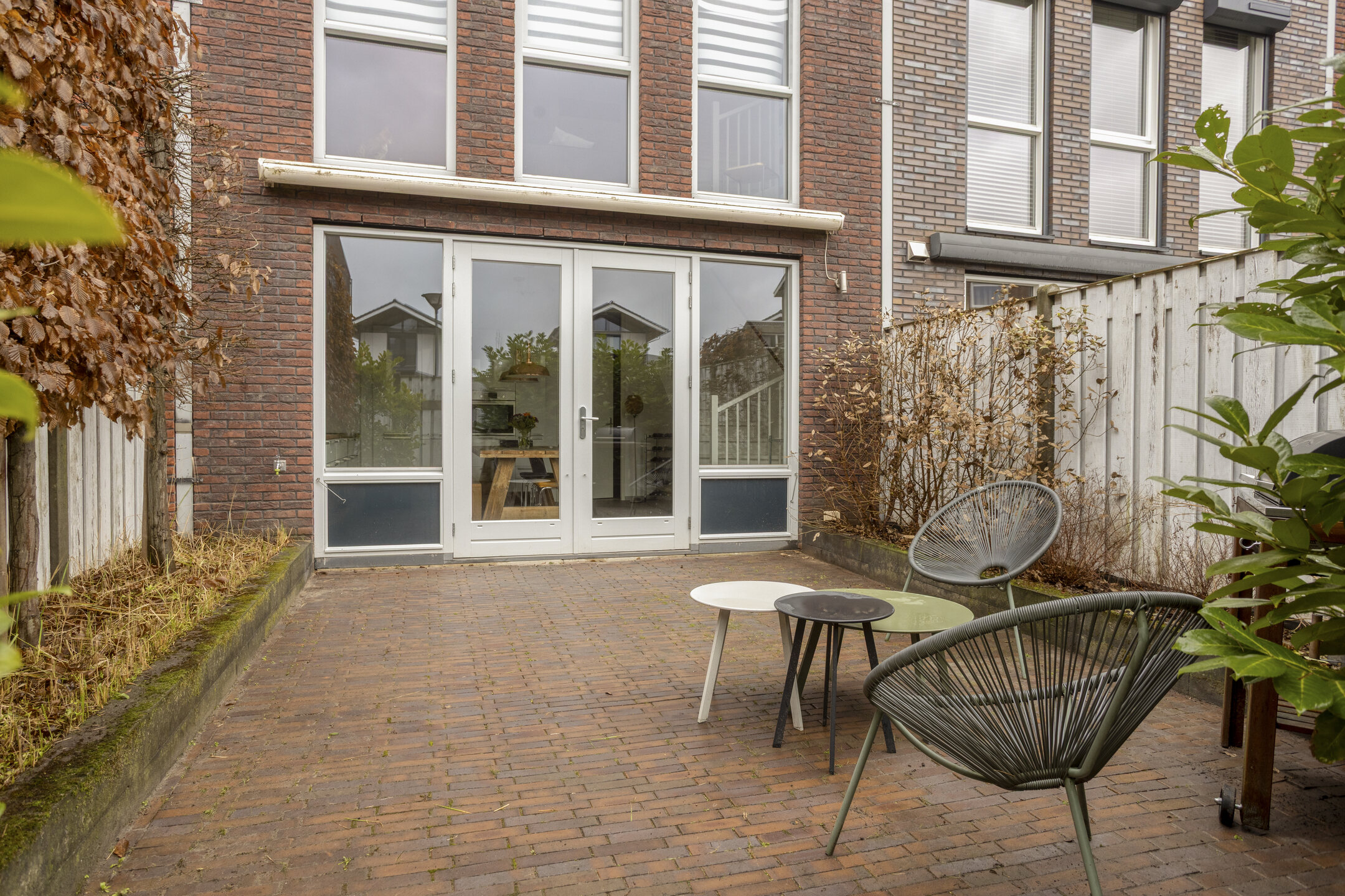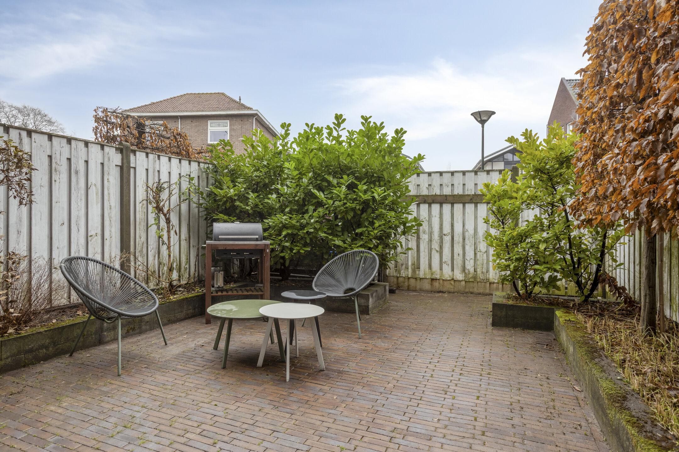 De achtertuin is bereikbaar vanuit de keuken en biedt een fijne buitenruimte met voldoende privacy. Het aanwezige zonnescherm zorgt voor schaduw op zonnige dagen. Via de achterom is de tuin gemakkelijk bereikbaar.