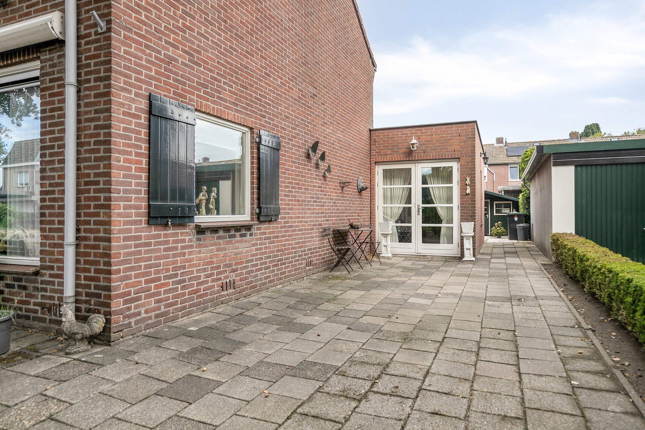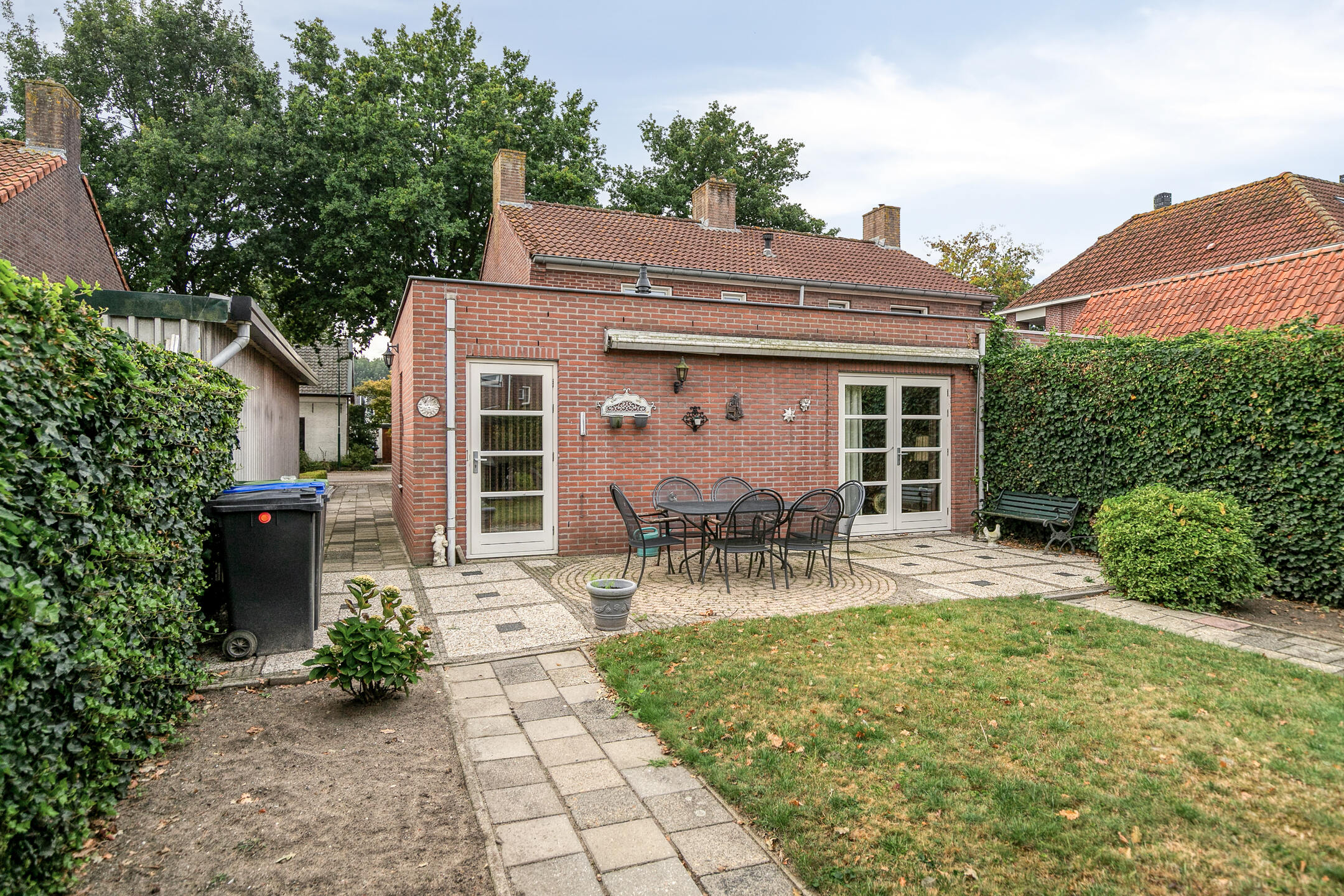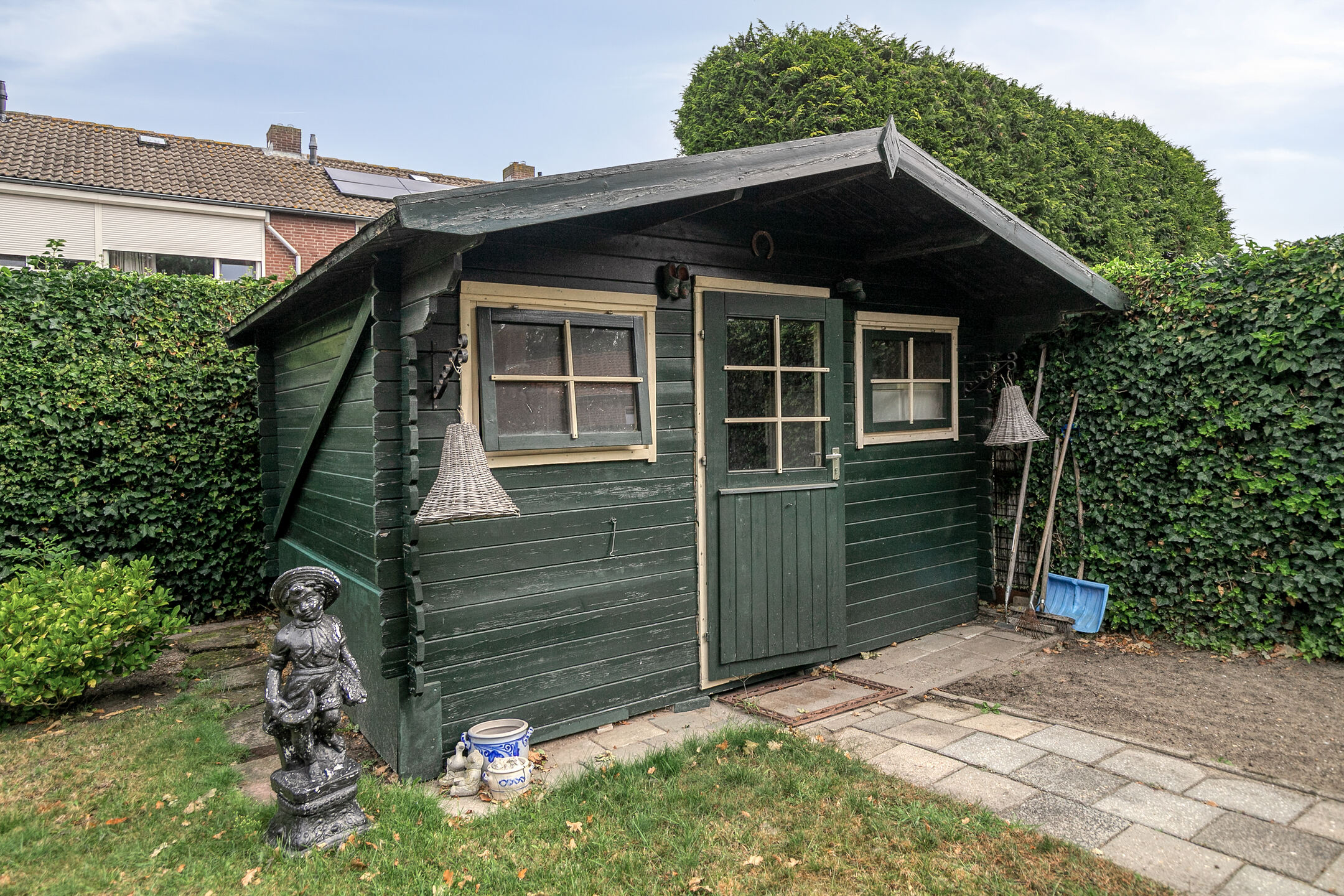 De verzorgde achtertuin is bereikbaar via zowel de eetkamer als de bijkeuken. De tuin beschikt over een houten berging, is onderhoudsvriendelijk aangelegd en voorzien van een achterom.