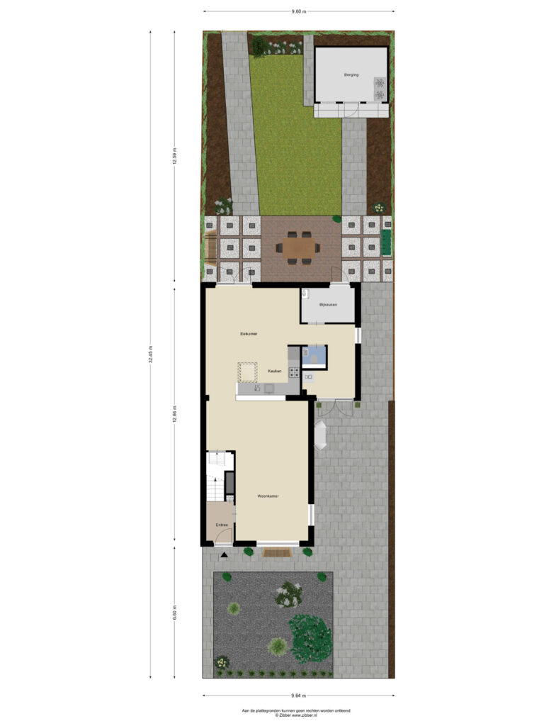 – Onderhoudsvriendelijke tuin met berging en achterom;