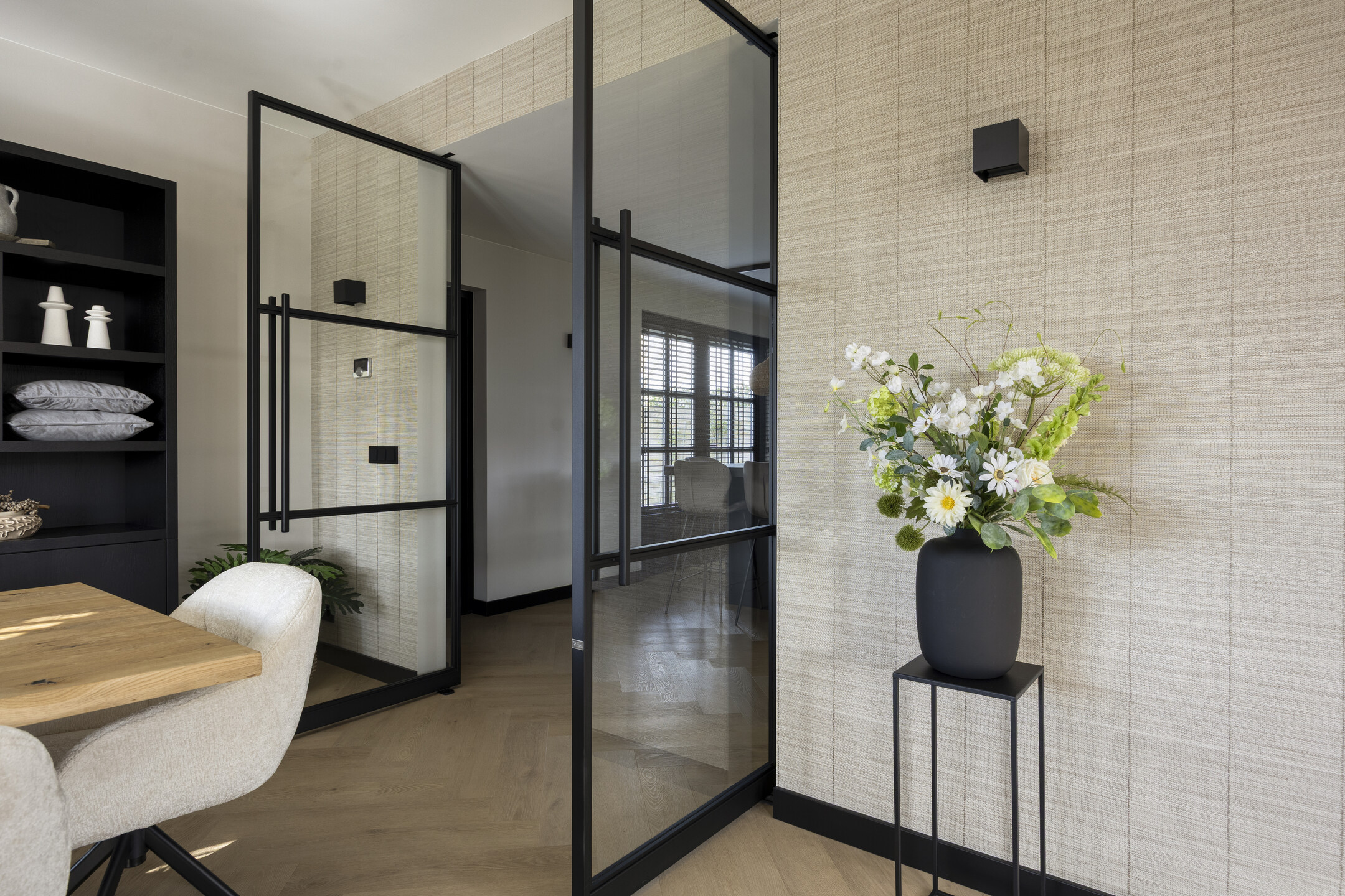Via de entree komt u in de hal met meterkast, alarminstallatie en glasvezelaansluiting. De gehele begane grond is voorzien van vloerverwarming, wat zorgt voor een aangenaam wooncomfort.