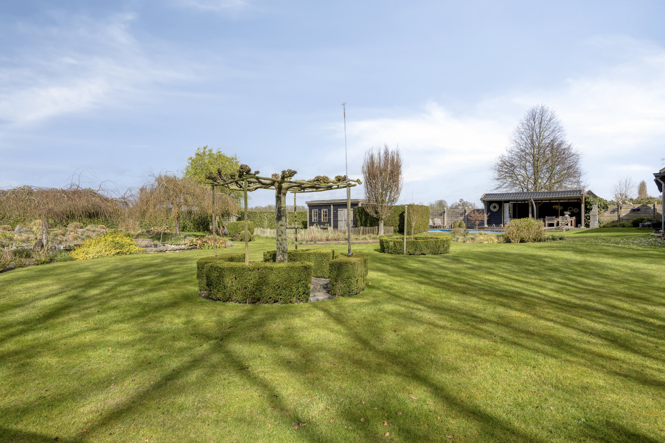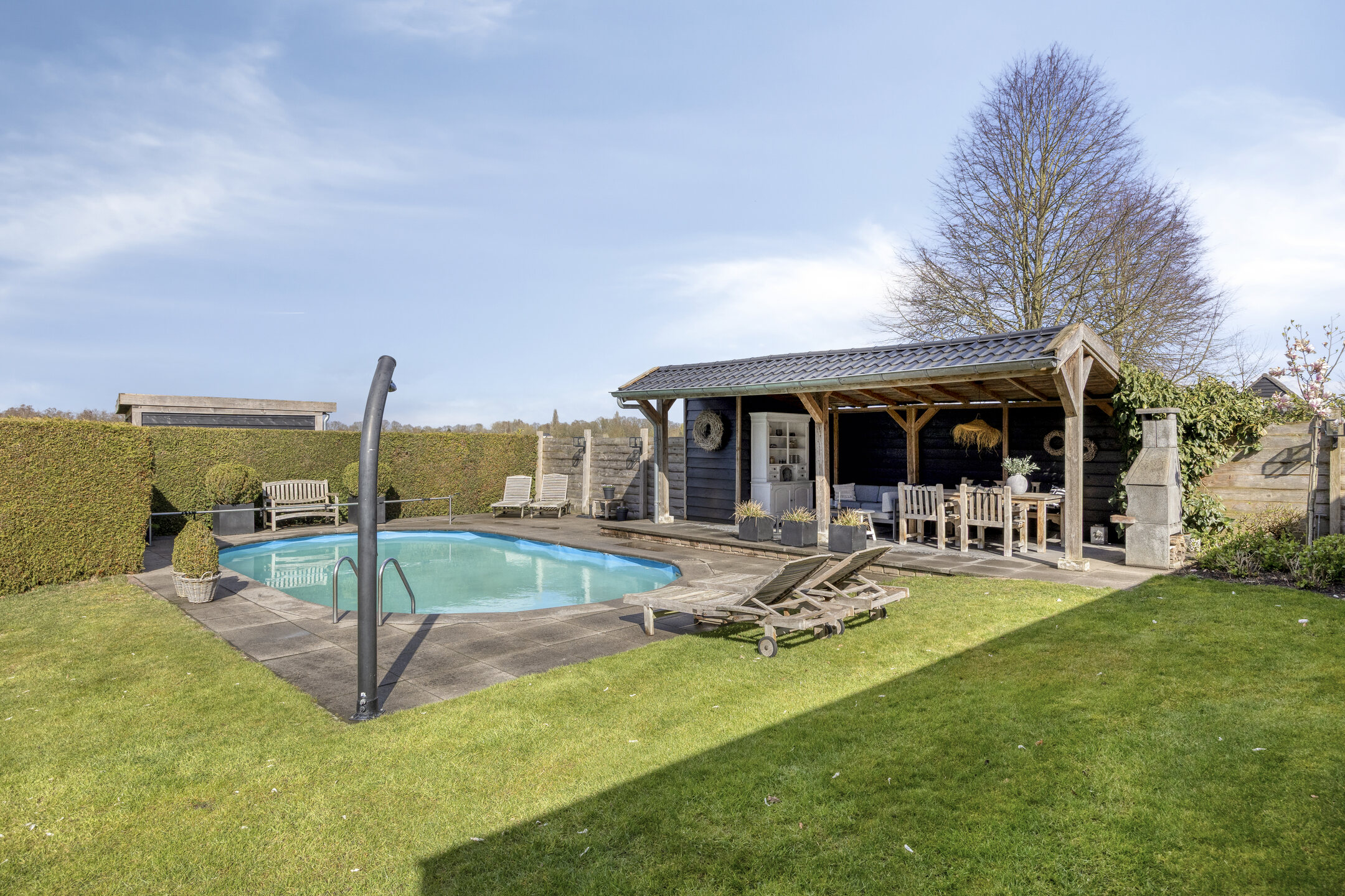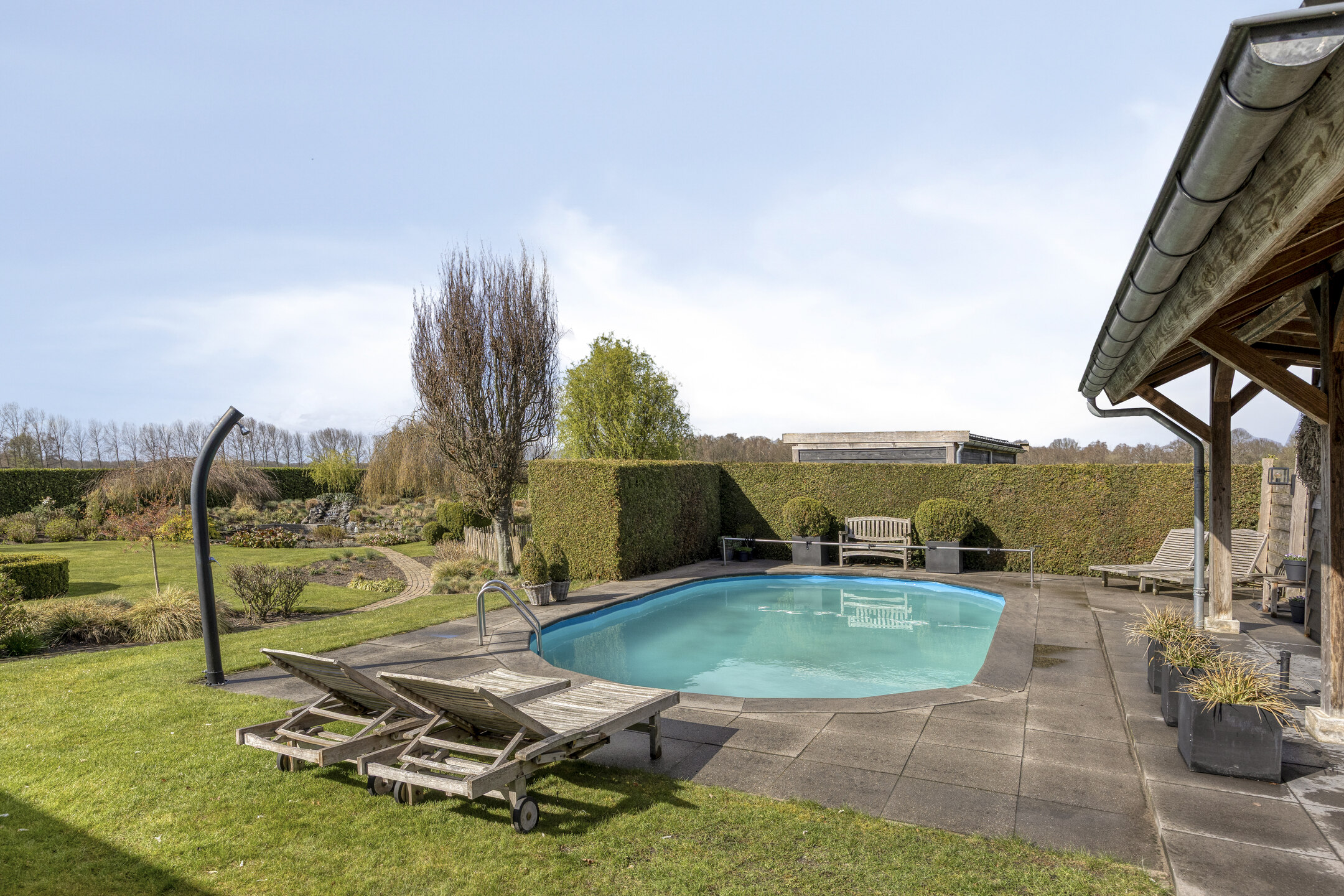 Daarnaast vindt u hier een zwembad, een vijver en een tuinhuis. De beregeningsinstallatie zorgt ervoor dat de tuin eenvoudig te onderhouden is. Ook is er een aparte schuur aanwezig voor het opbergen van fietsen en tuingereedschap.