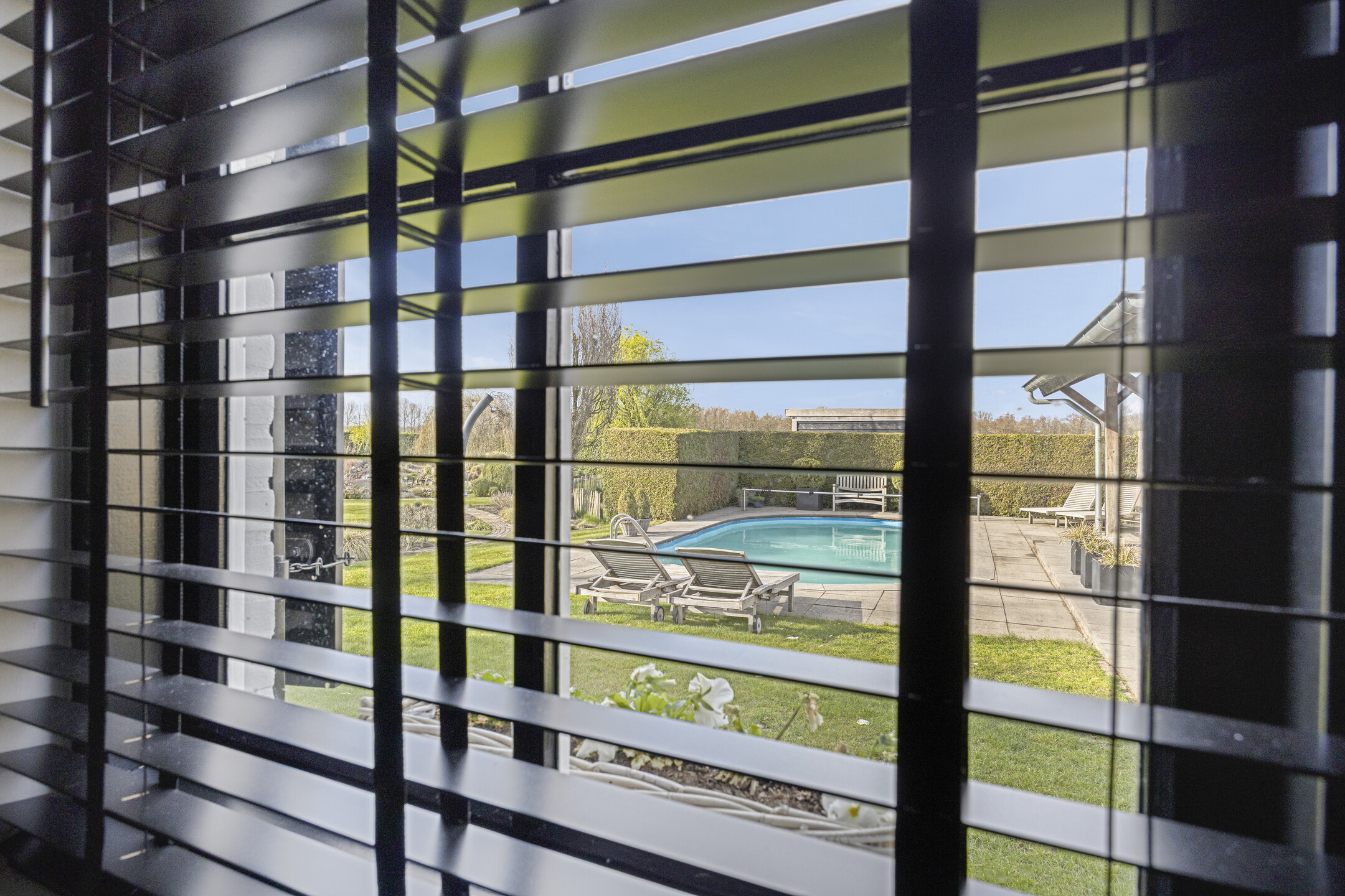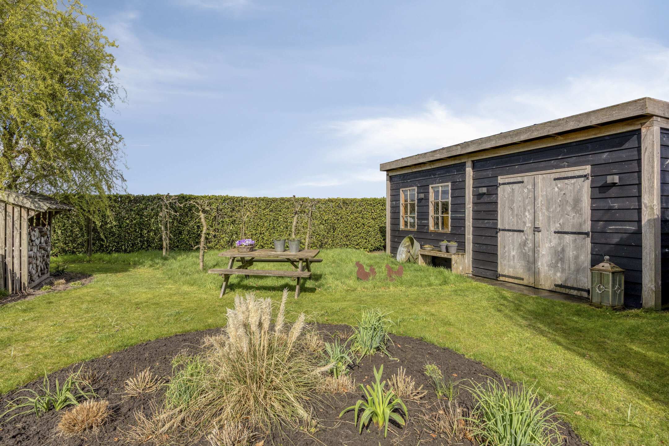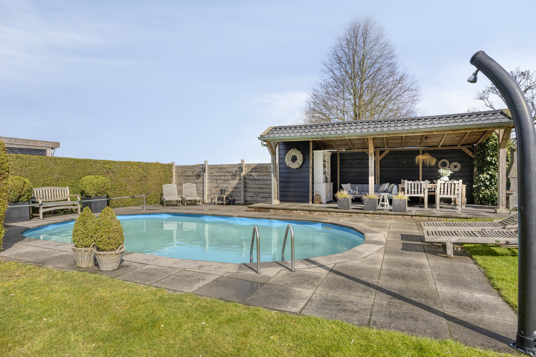 Daarnaast vindt u hier een zwembad, een vijver en een tuinhuis. De beregeningsinstallatie zorgt ervoor dat de tuin eenvoudig te onderhouden is. Ook is er een aparte schuur aanwezig voor het opbergen van fietsen en tuingereedschap.