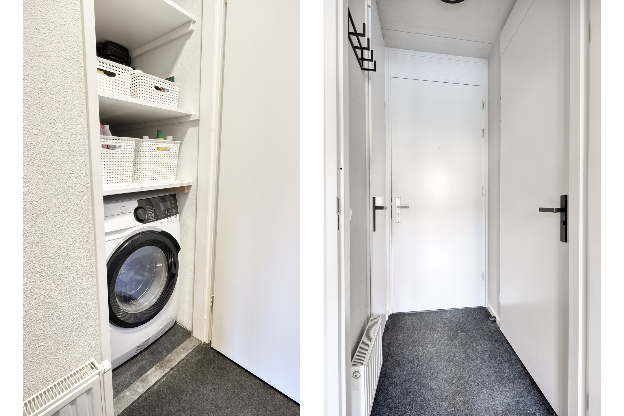 In de hal van het appartement bevindt zich de nette toiletruimte. Tevens bevindt zich hier een bergingskast voor het plaatsen van de was apparatuur.