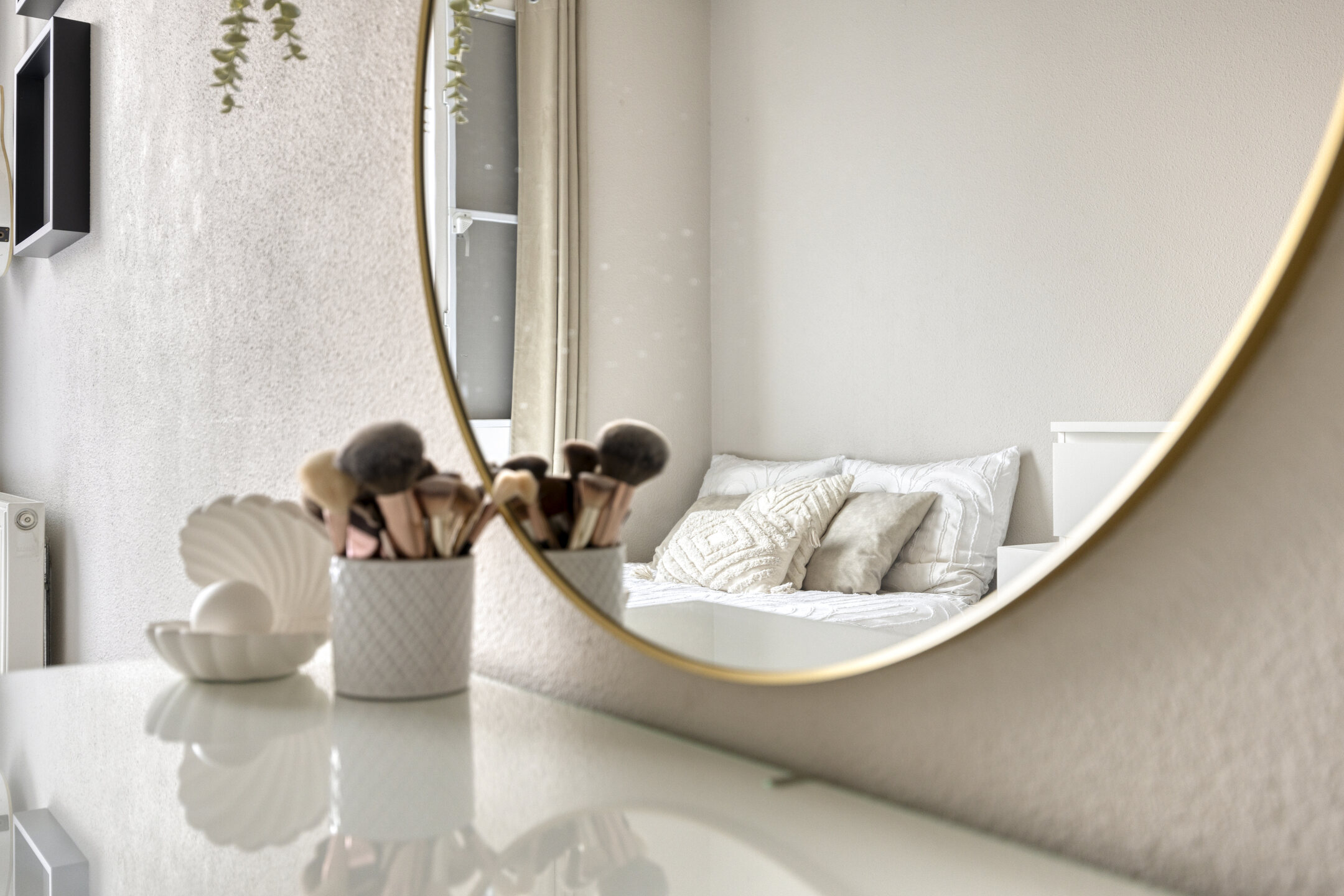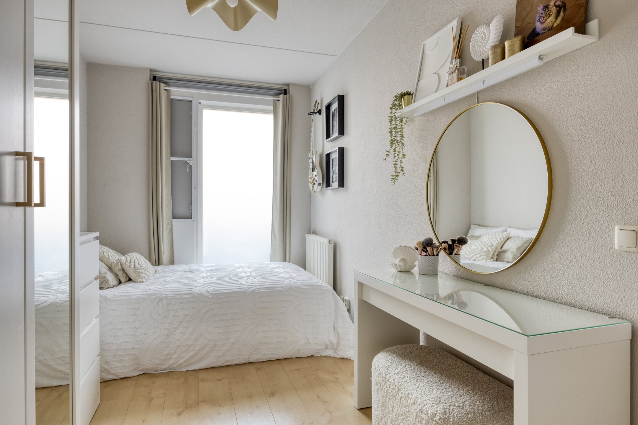 De slaapkamer is te bereiken via de woonkamer. Via de slaapkamer is de badkamer te bereiken.