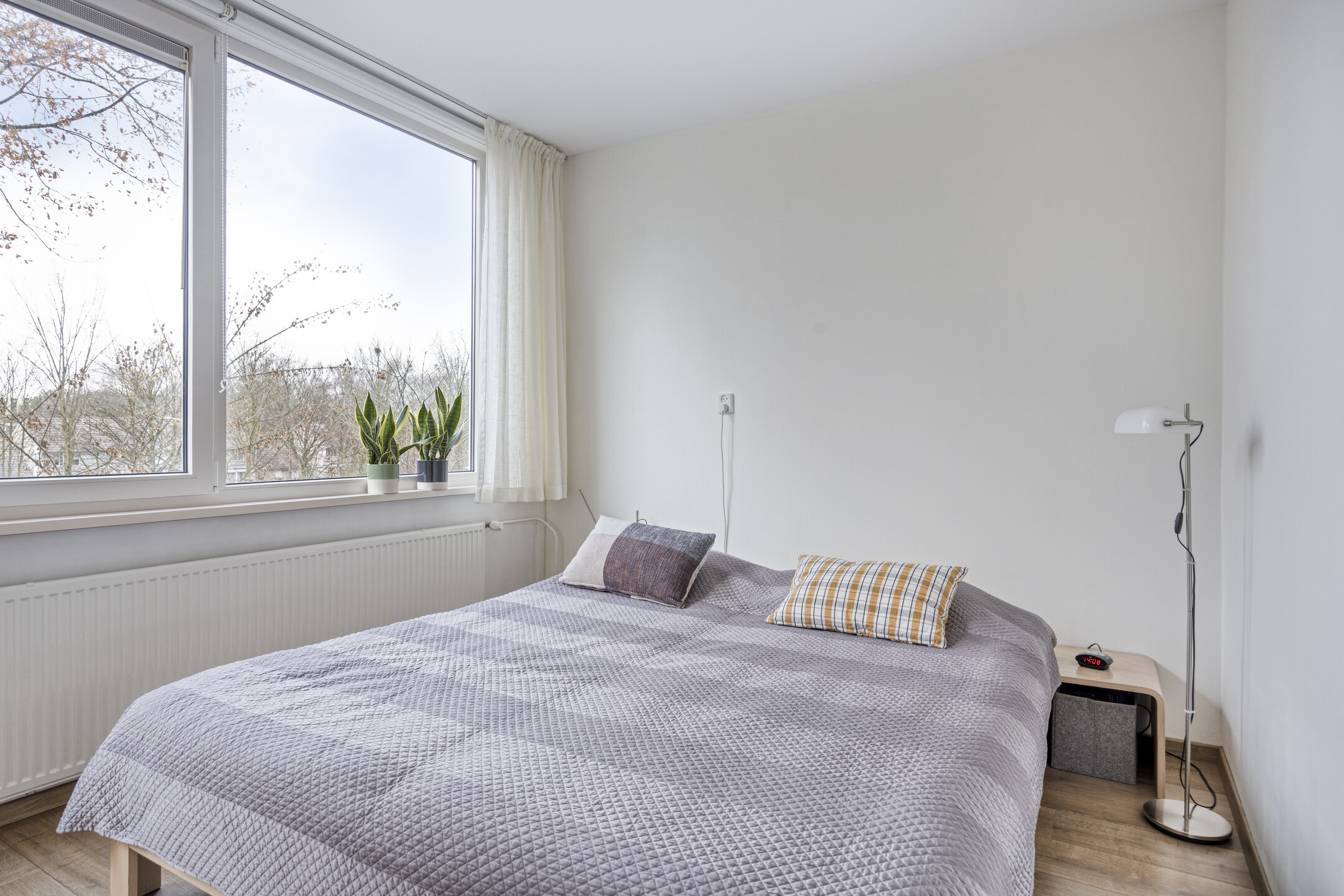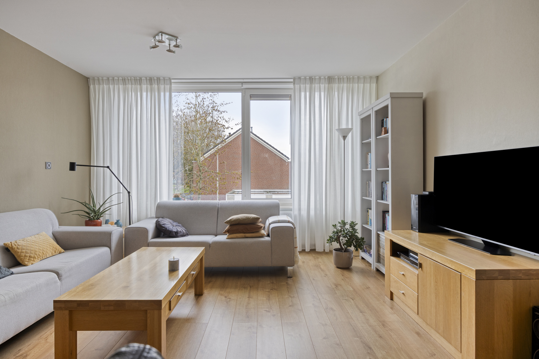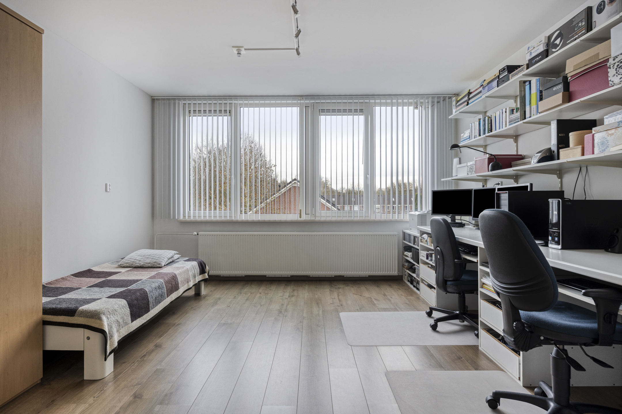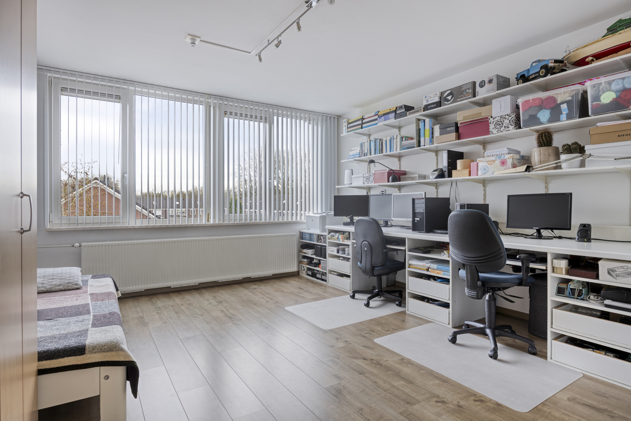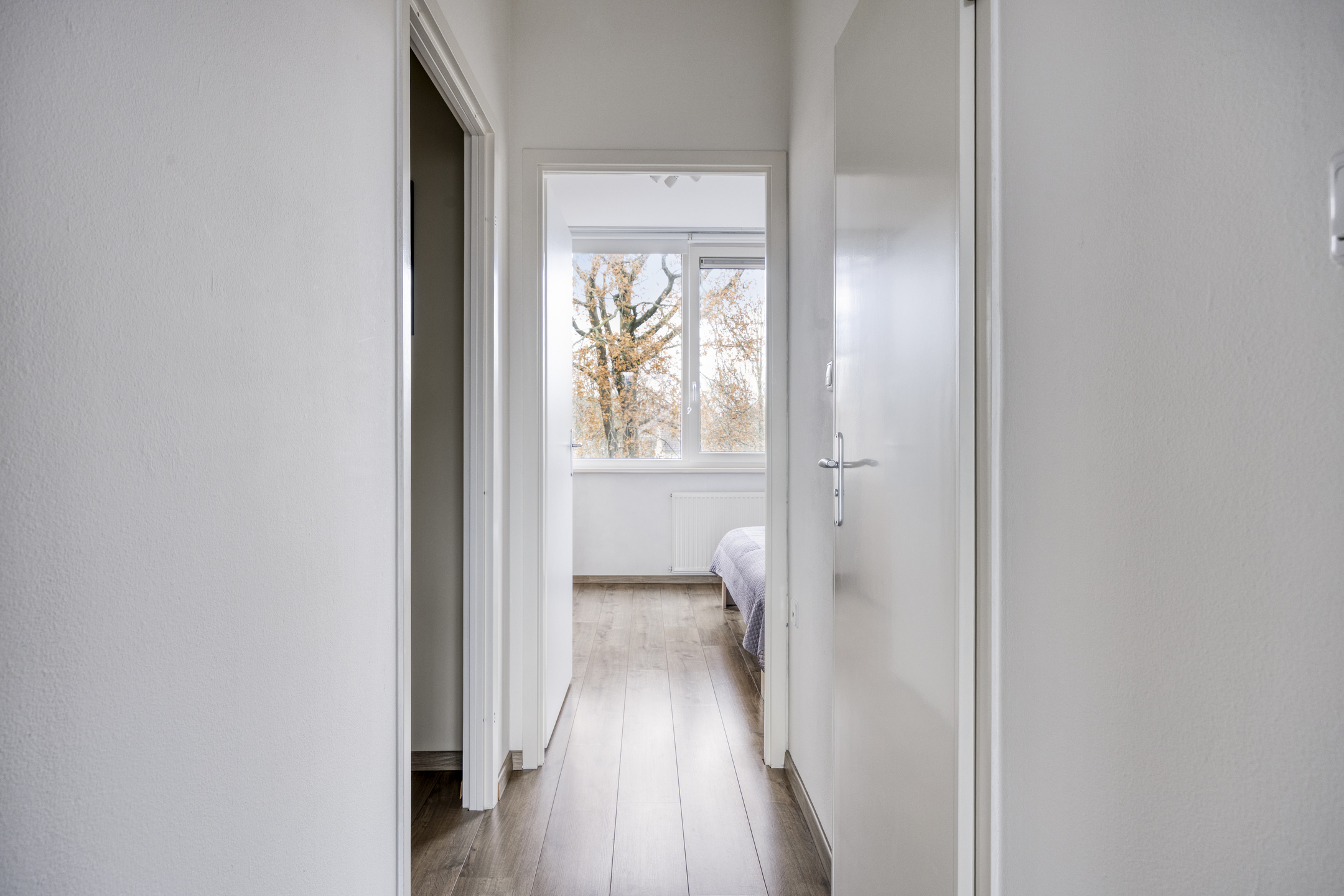 De overloop biedt toegang tot twee ruime slaapkamers en de badkamer. De slaapkamers zijn licht en voorzien van een lichte laminaatvloer, kunststof kozijnen en HR++ beglazing. De afwerking is in alle kamers gelijk, wat zorgt voor rust en eenheid.