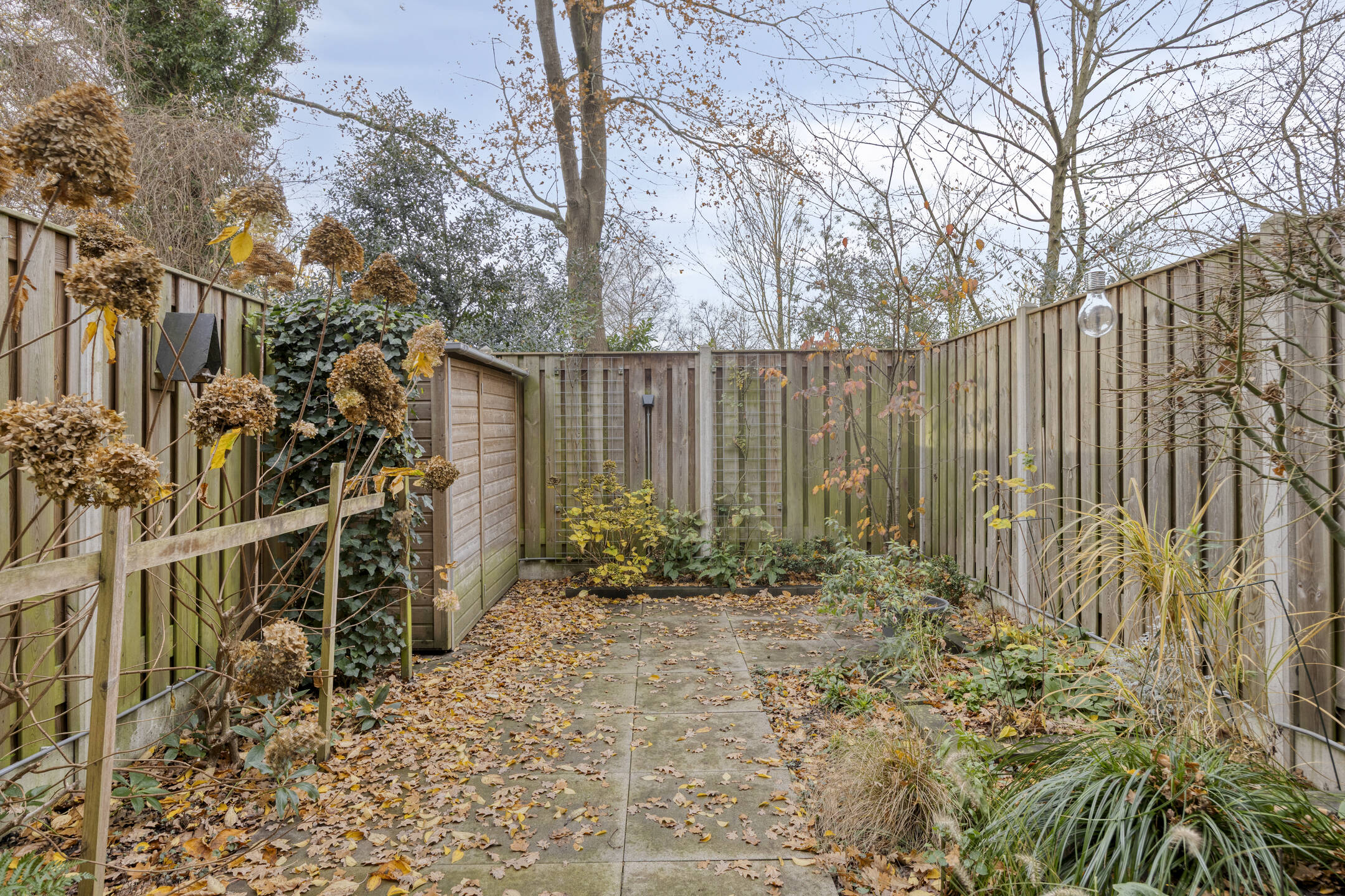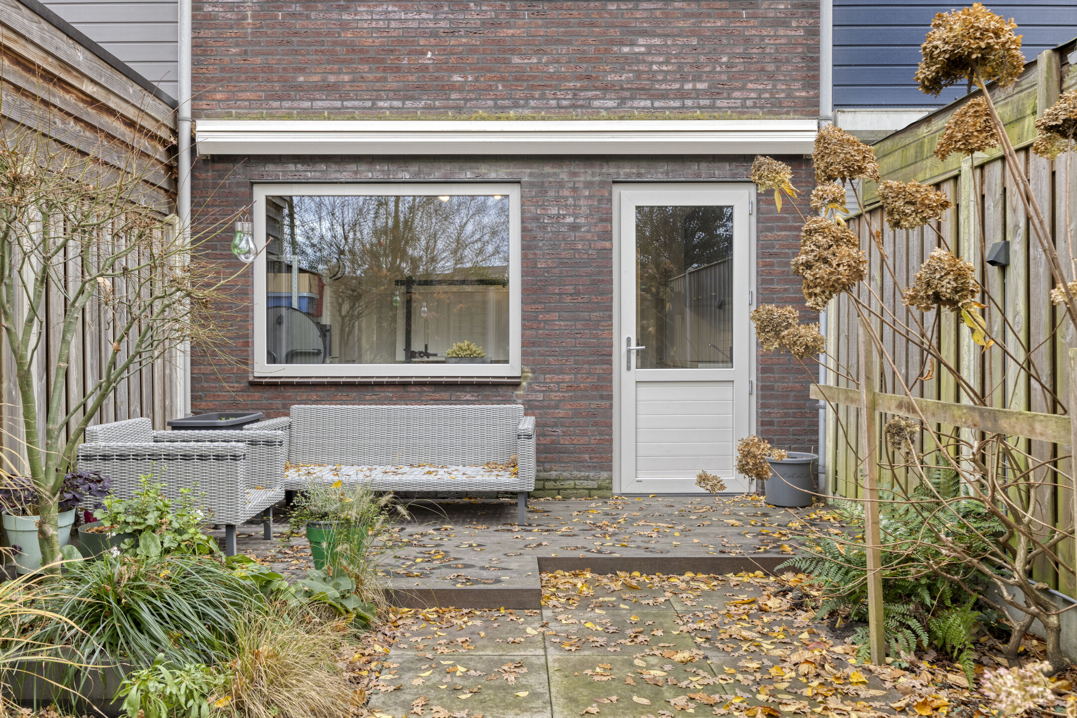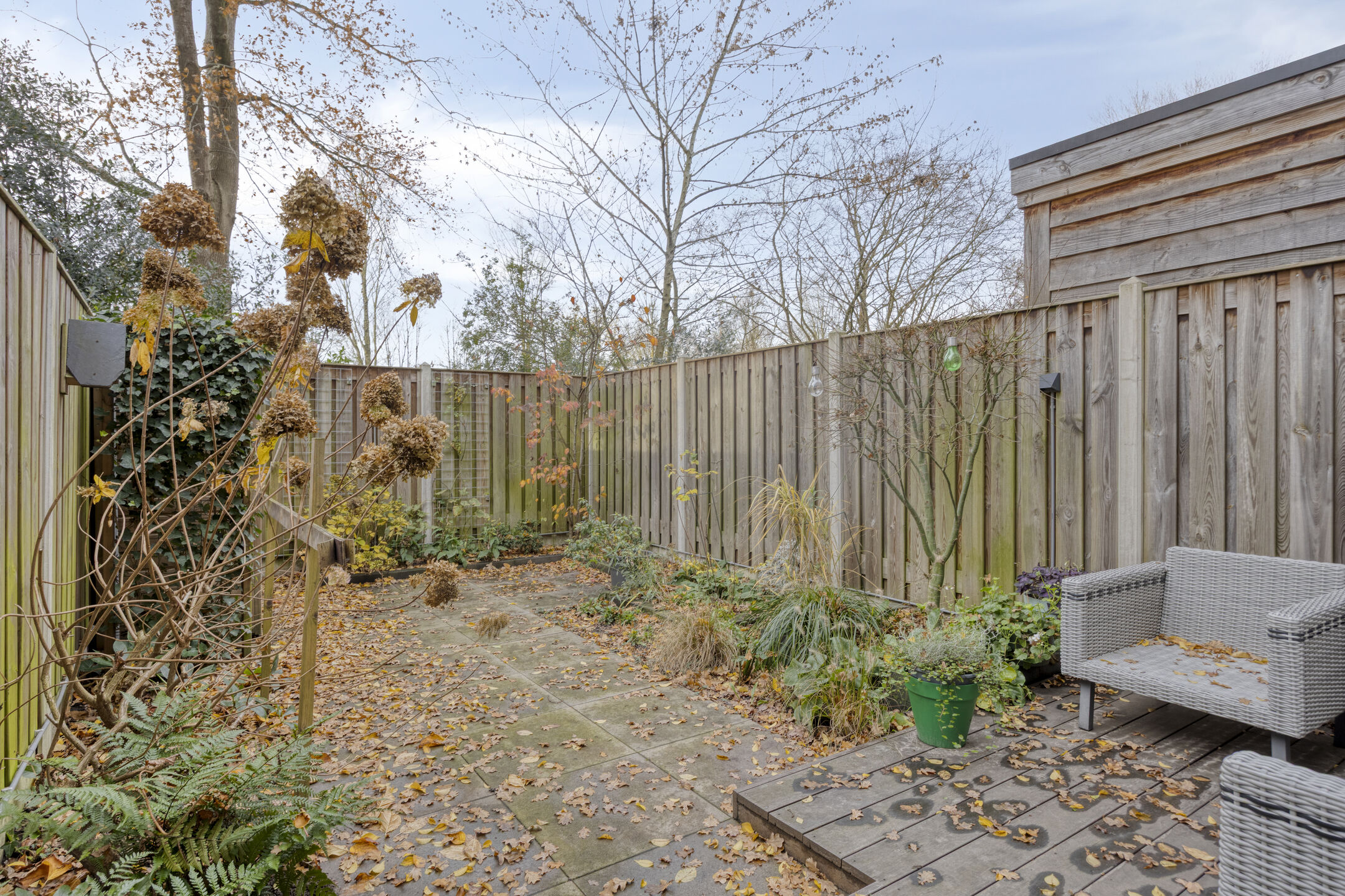 De achtertuin is verrassend privé en sfeervol aangelegd. Er is een groot terras uitgevoerd in vlonderplanken van Bankirai. Daarnaast is de tuin deels betegeld en zijn plantenborders aanwezig welke zorgen voor groen en sfeer. Achterin de tuin bevindt zich een berging voorzien van elektra tevens een ideale plek voor het opslaan van tuin benodigdheden.
